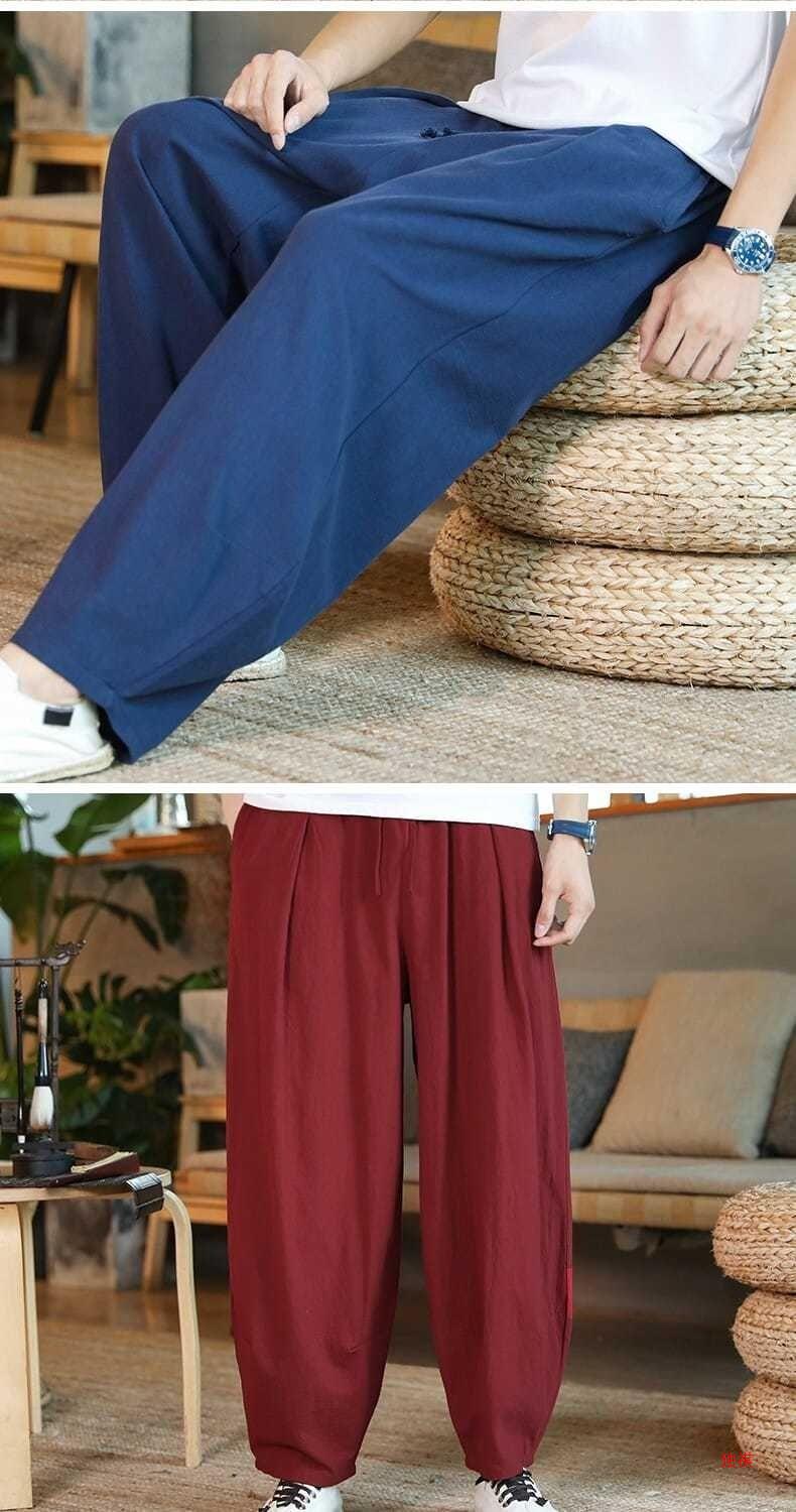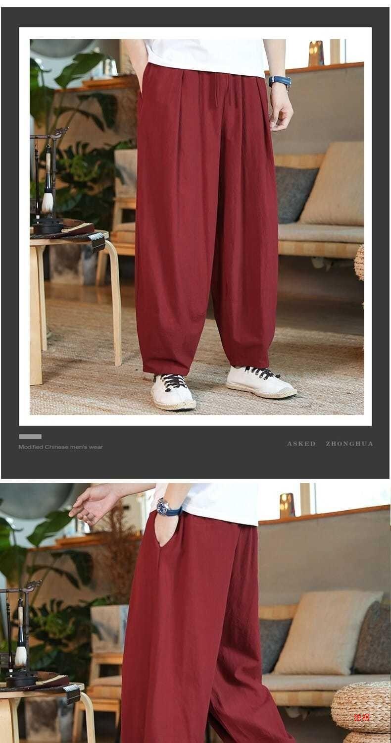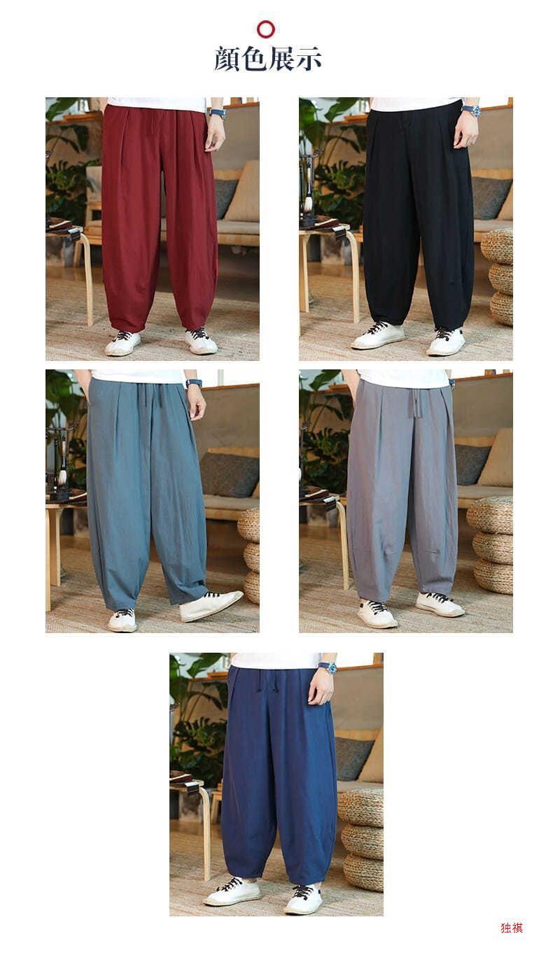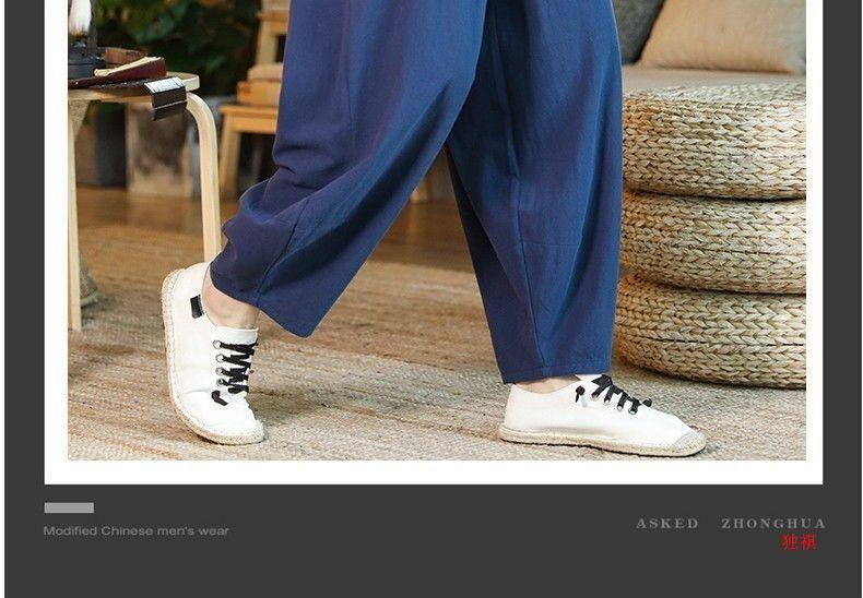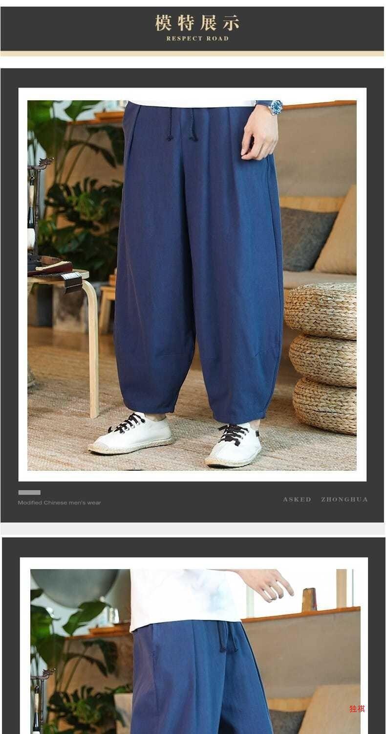 봄과 여름 리넨 바지 남자의 느슨한 중국 스타일 플러스 사이즈 뚱뚱한 남자 넓은 다리 바지 큰 크로트치 랜턴 하렘 바지 캐주얼 통기성 바지스토어 가기