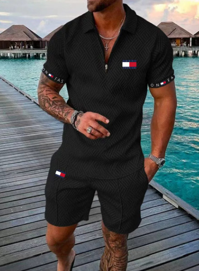여름 뉴 플러스 사이즈 남자 반팔 세트 3D 디지털 인쇄 지퍼 엘 폴로 셔츠 반바지 스포츠 세트스토어 가기