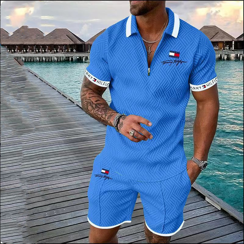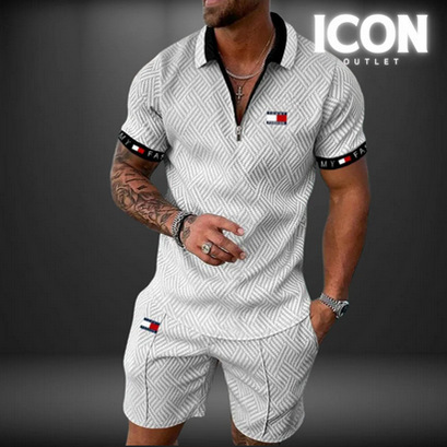 여름 뉴 플러스 사이즈 남자 반팔 세트 3D 디지털 인쇄 지퍼 엘 폴로 셔츠 반바지 스포츠 세트