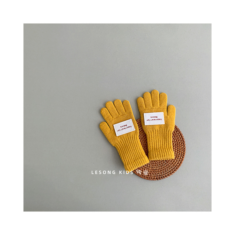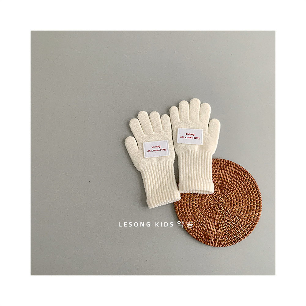 한국 인 어린이 장갑 일본 편지 천 라벨 니트 따뜻한 5 손가락 단색 외국 스타일 중대형 어린이 터치 스크린