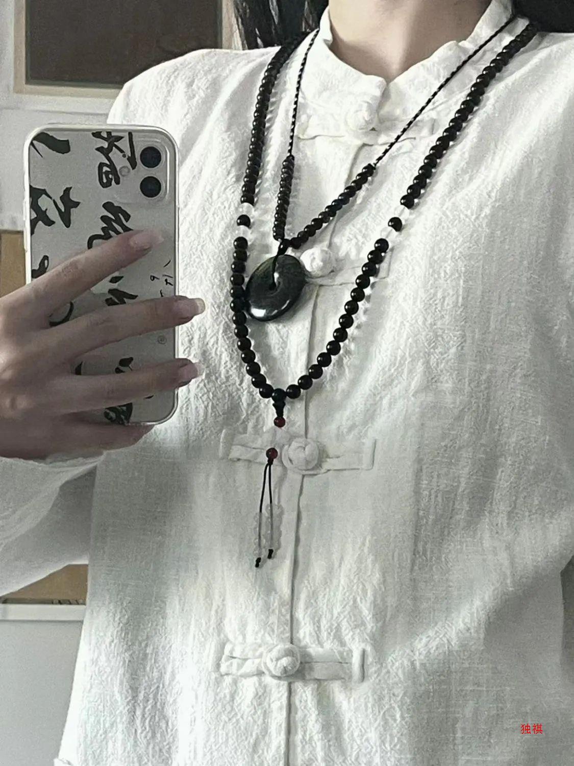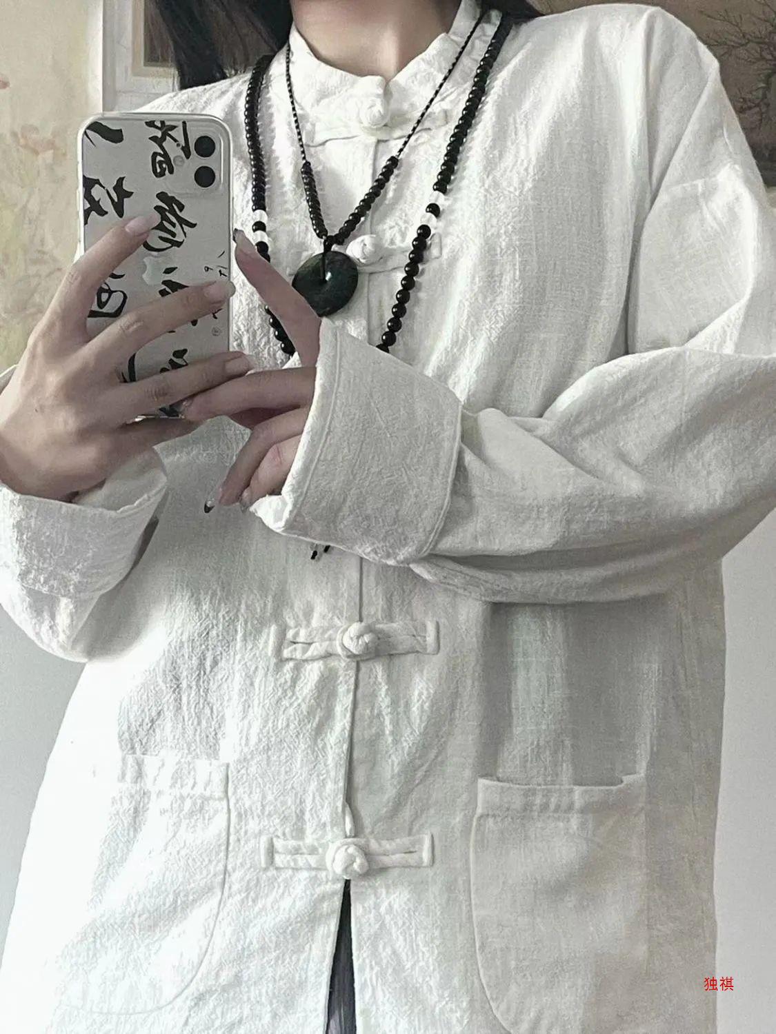 봄 2024 새로운 중국 스타일 국가 스타일 최고 선 차 옷 쿨 버클 느슨한 코트 코튼 리넨 셔츠 긴 소매
