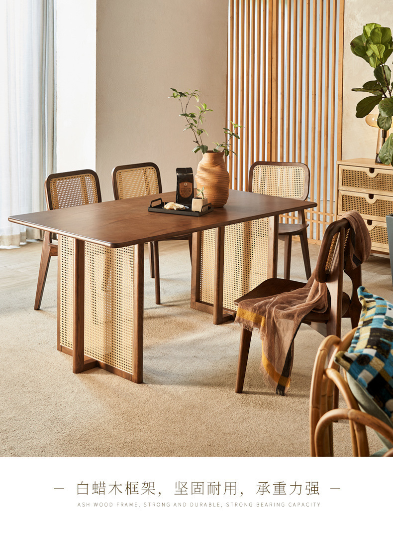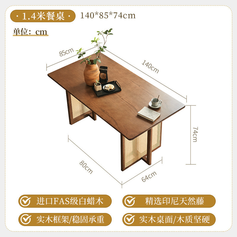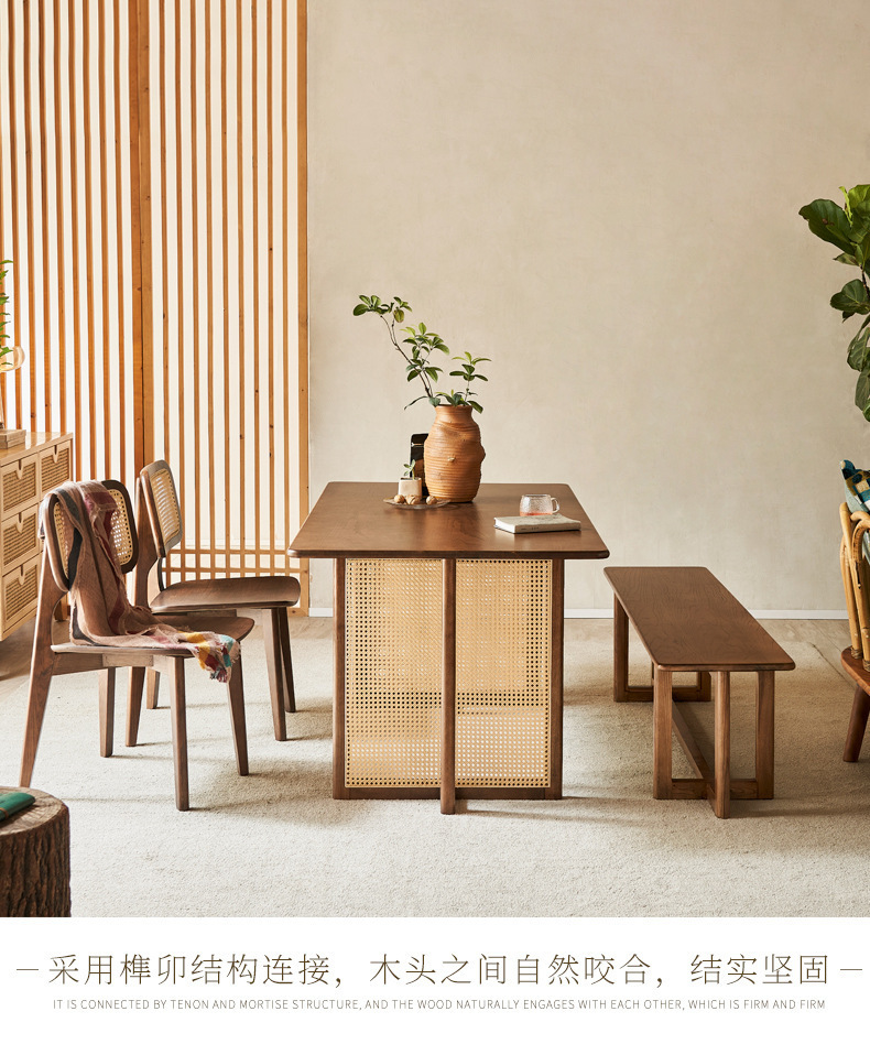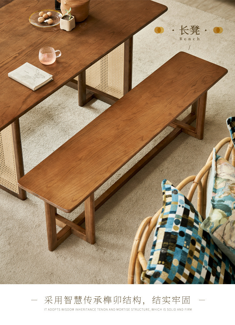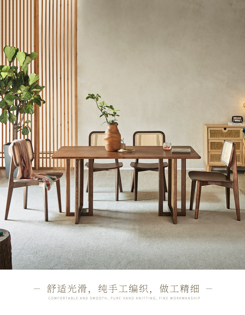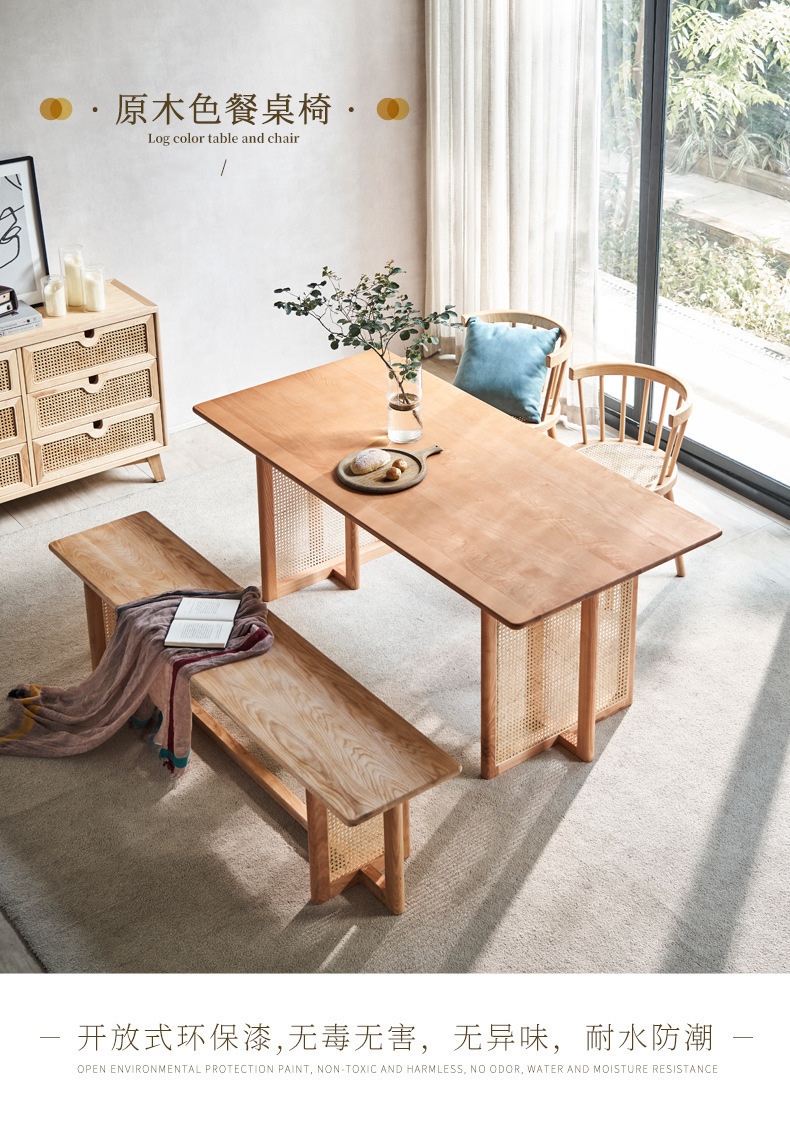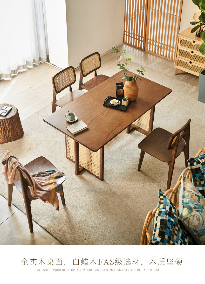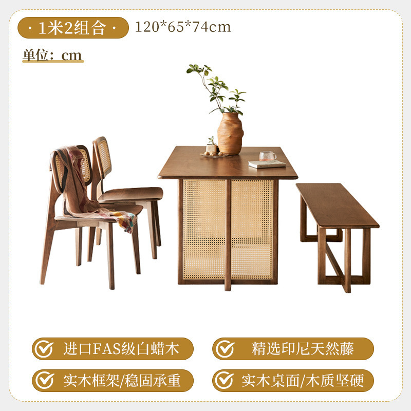 일본식 식탁 월넛 컬러 솔리드 우드 테이블 애쉬 우드 등나무 식탁 및 의자 조합 빈티지 간단한 벤치 의자