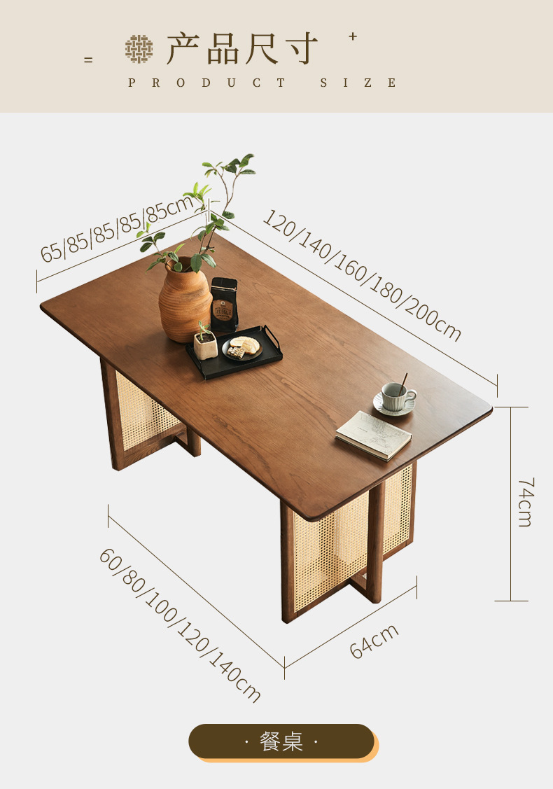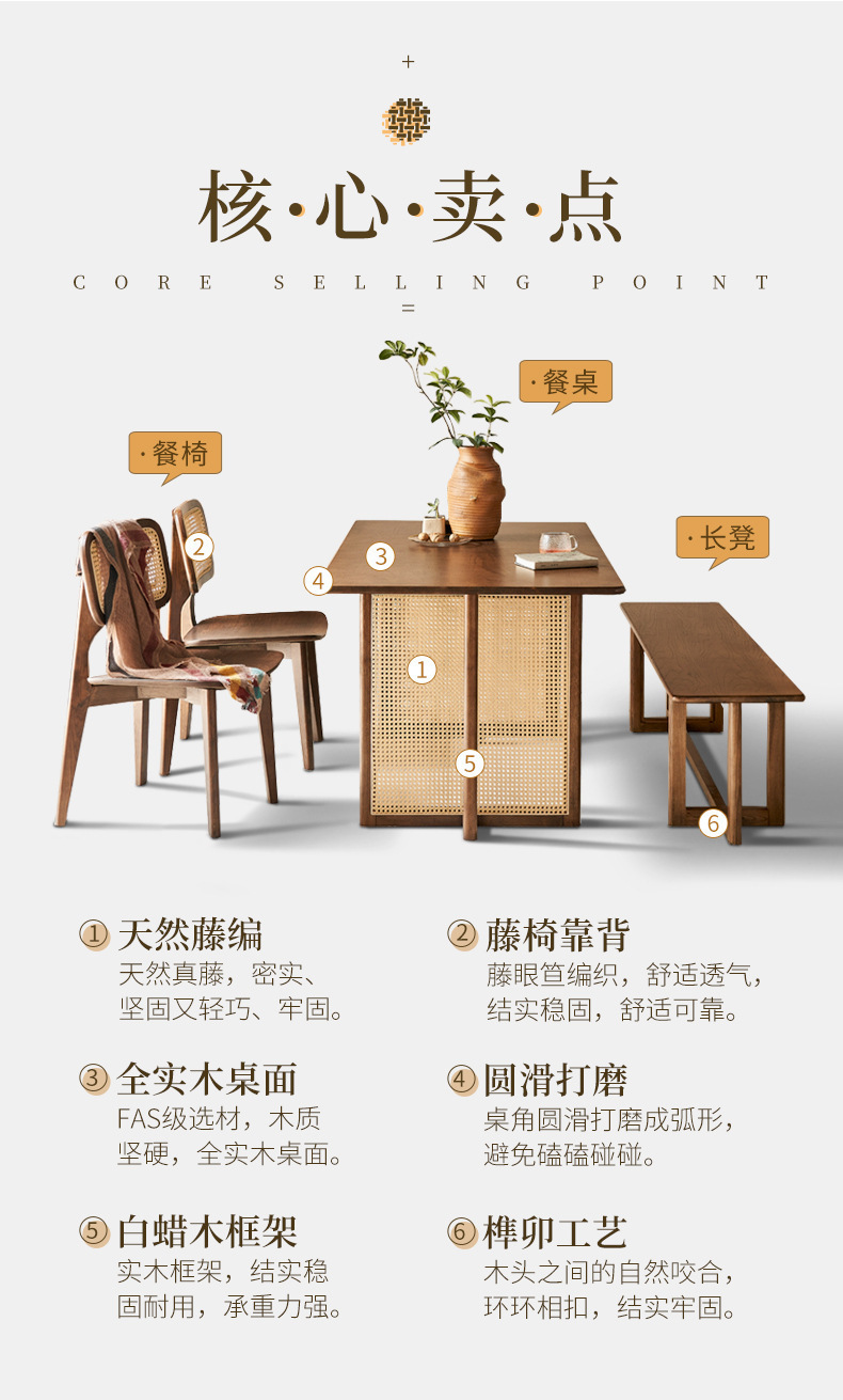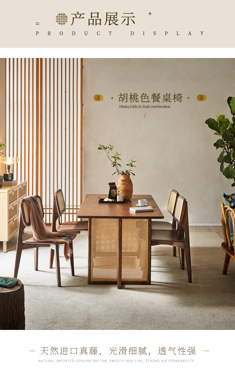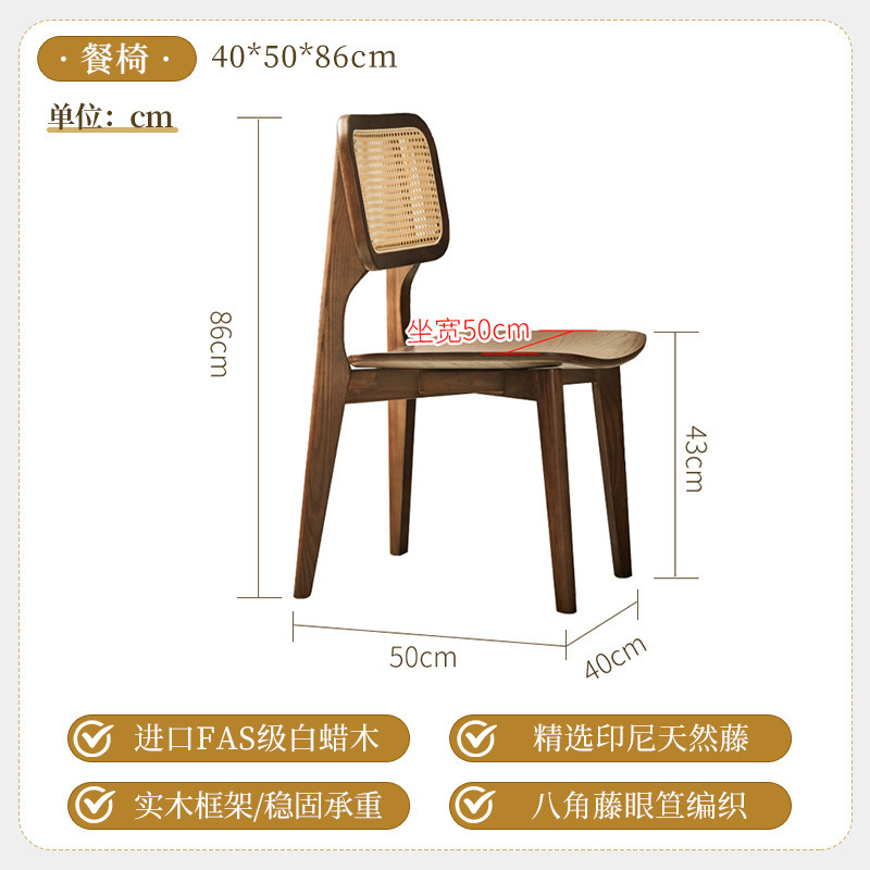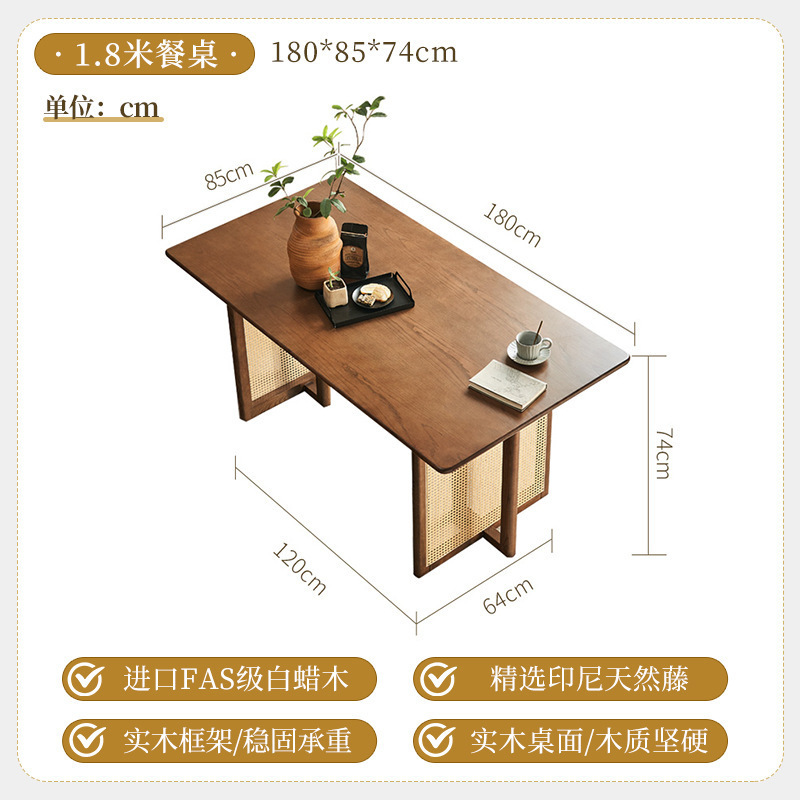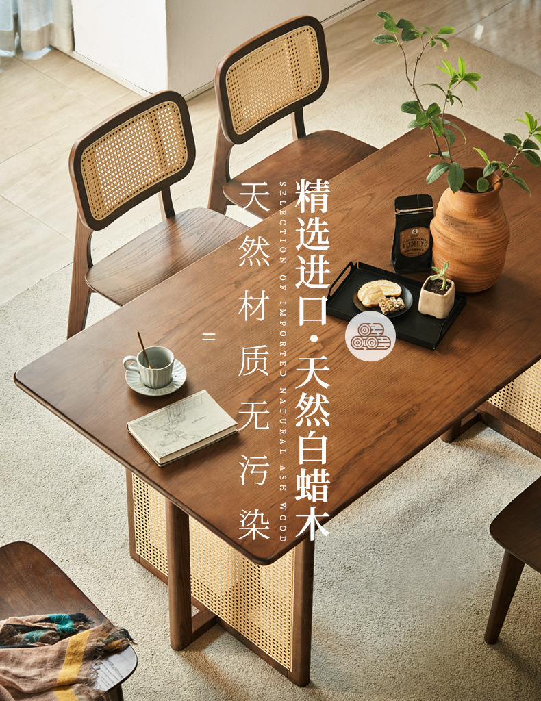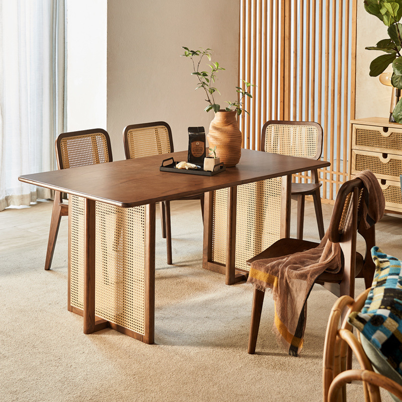 일본식 식탁 월넛 컬러 솔리드 우드 테이블 애쉬 우드 등나무 식탁 및 의자 조합 빈티지 간단한 벤치 의자