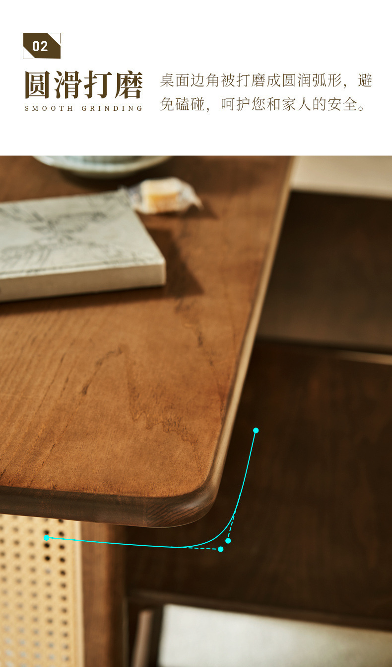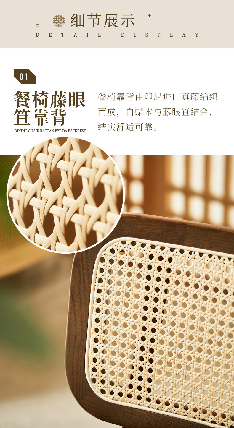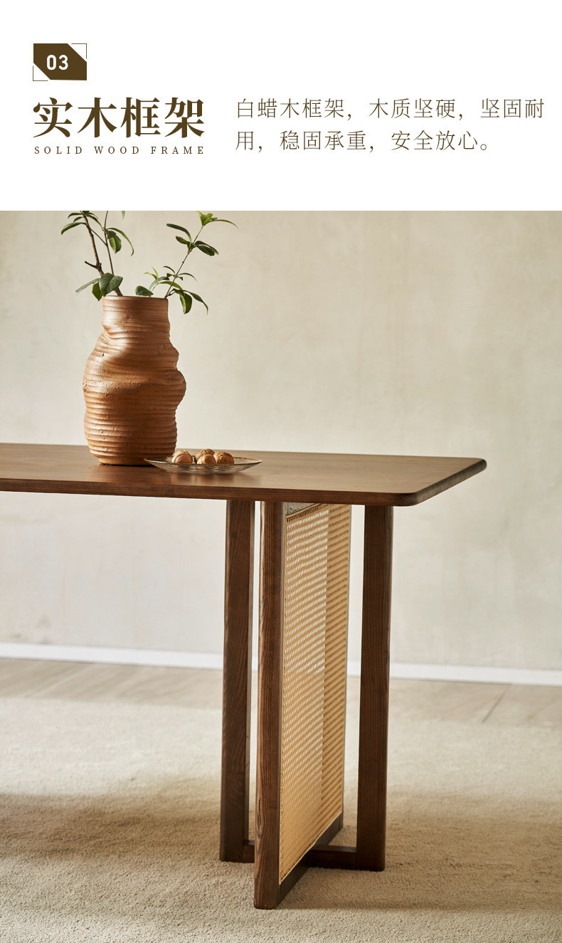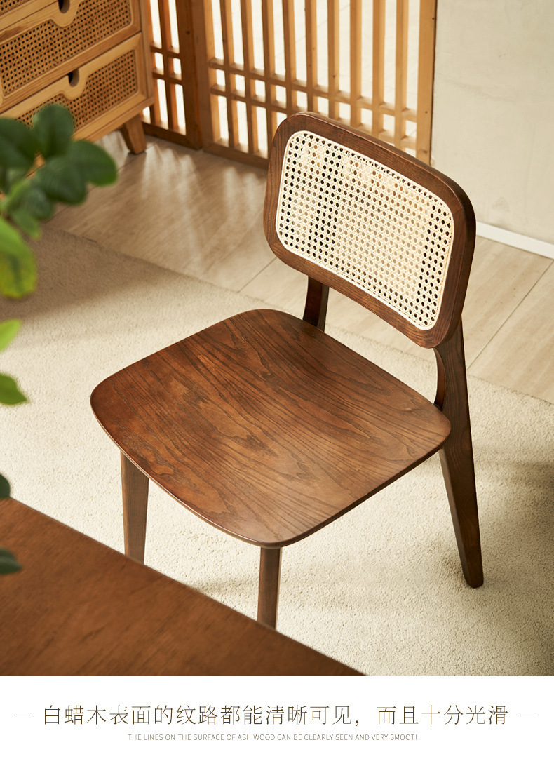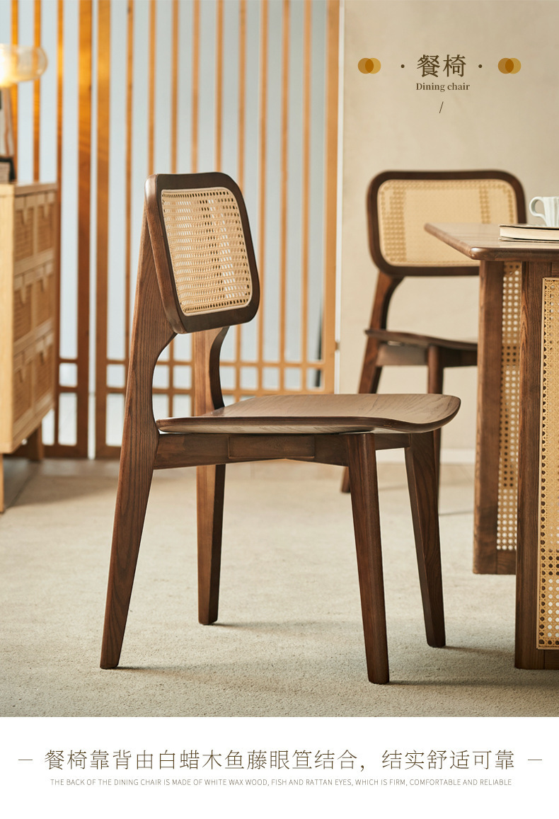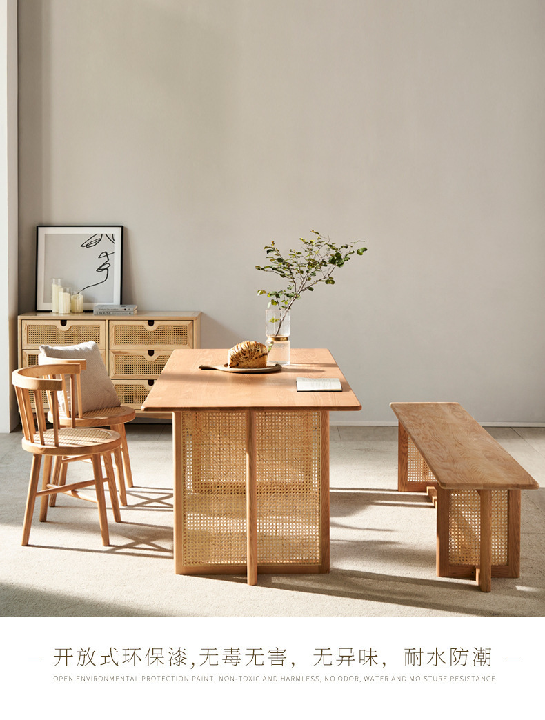일본식 식탁 월넛 컬러 솔리드 우드 테이블 애쉬 우드 등나무 식탁 및 의자 조합 빈티지 간단한 벤치 의자스토어 가기