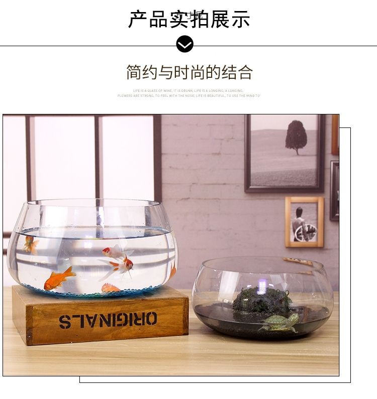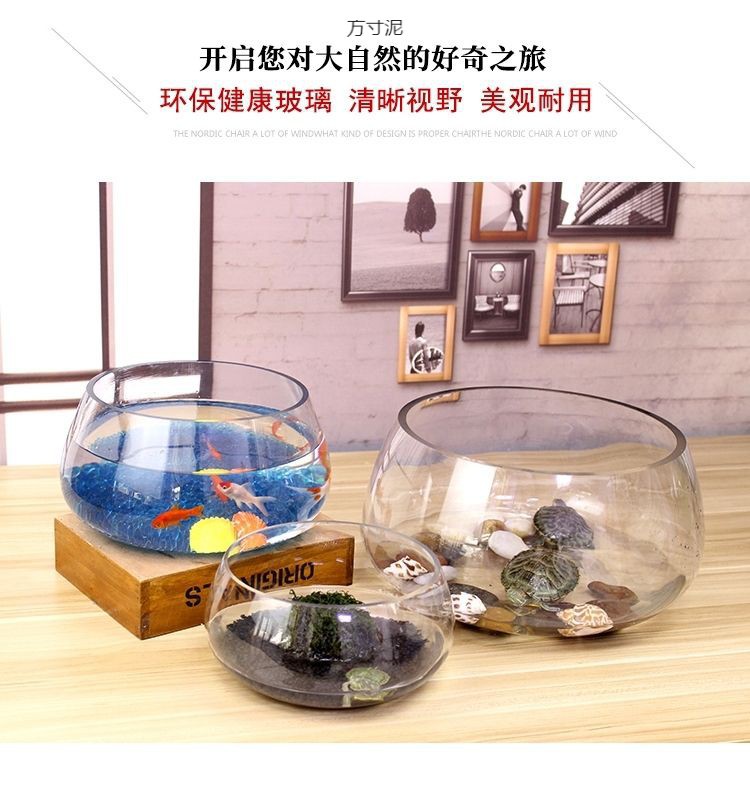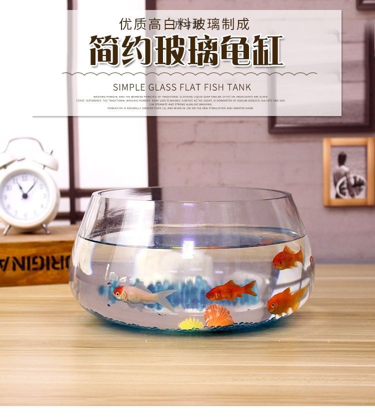 물고기 탱크 유리 둥근 책상 녹색 딜 수경 가정용 작은 물고기 투명 작은 미니 데스크탑 거북이 탱크 도매스토어 가기