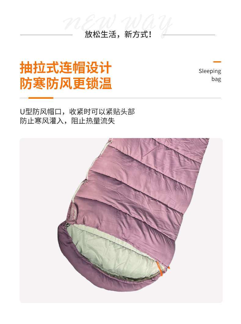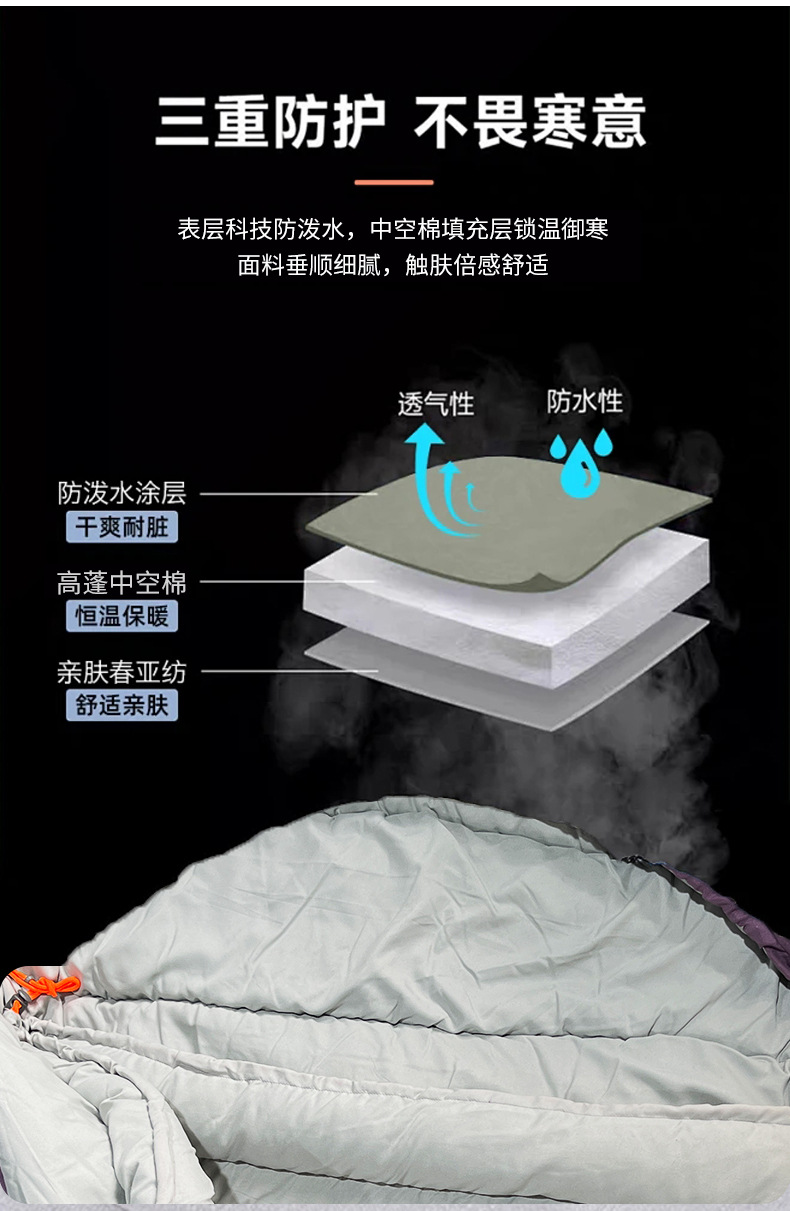 국경 간 미라 슬리핑 백 Chunya 스피닝 싱글 레이어 야외 따뜻한 휴대용 캠핑 미라 성인 겨울 슬리핑 백