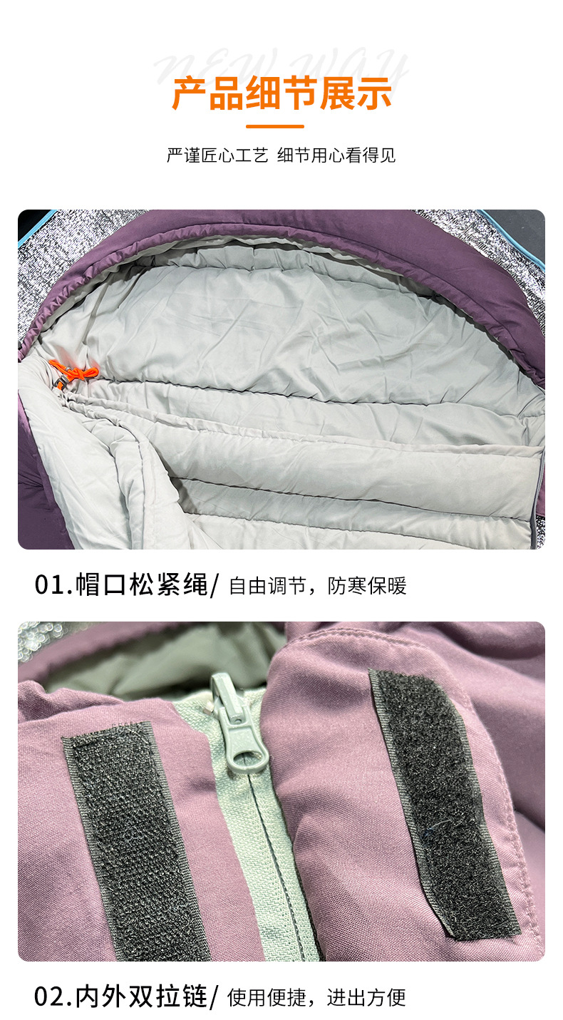 국경 간 미라 슬리핑 백 Chunya 스피닝 싱글 레이어 야외 따뜻한 휴대용 캠핑 미라 성인 겨울 슬리핑 백스토어 가기
