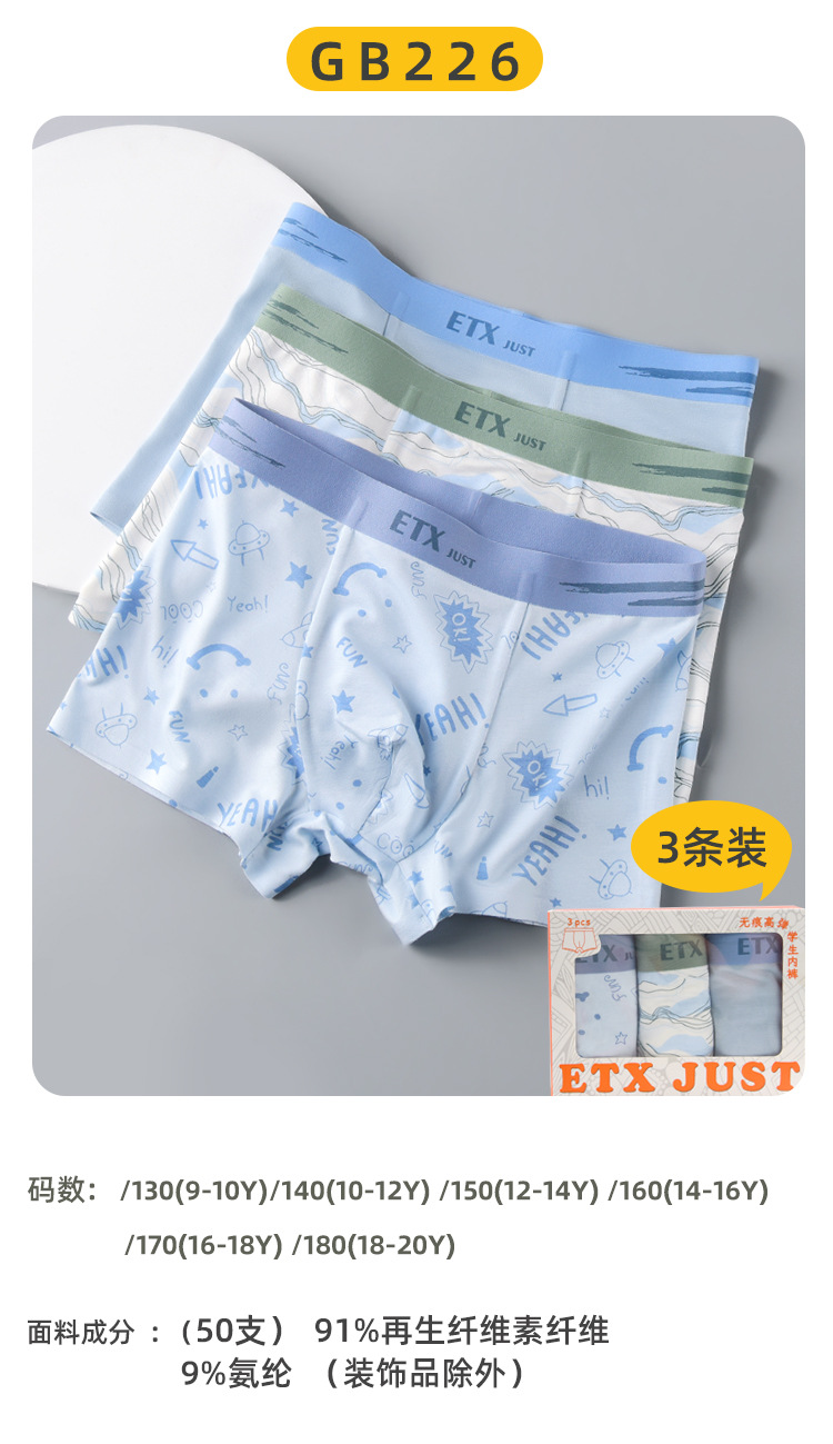ETX 어린이 속옷 클래스 A 남학생 복서 10 대, 대형 어린이 추적없는 중환자 복서 여름 얇은 반바지스토어 가기