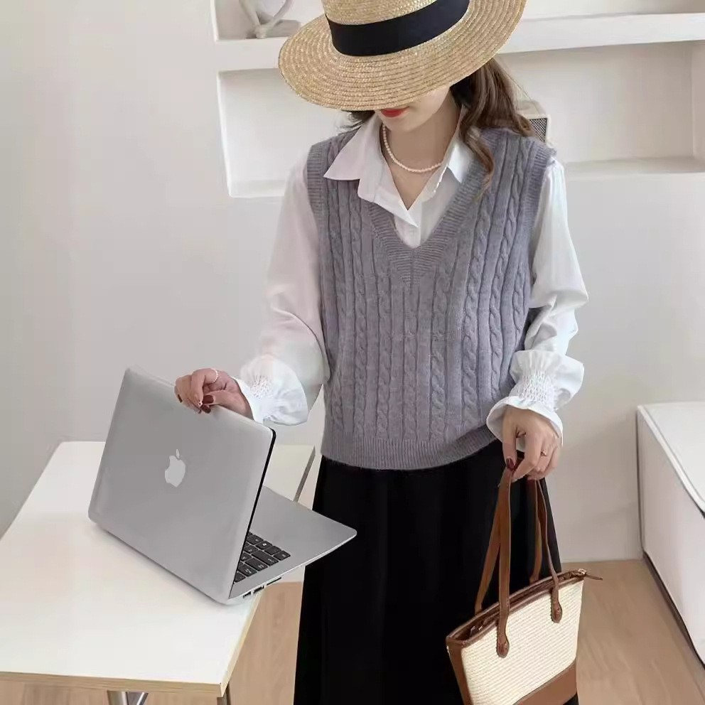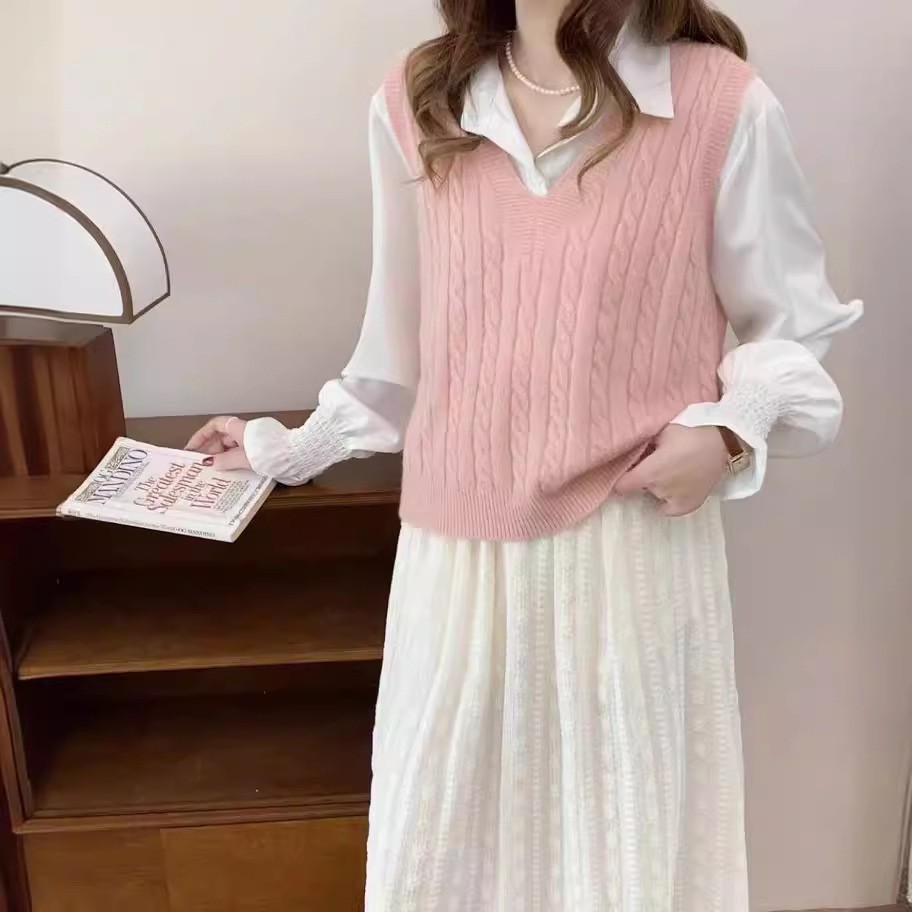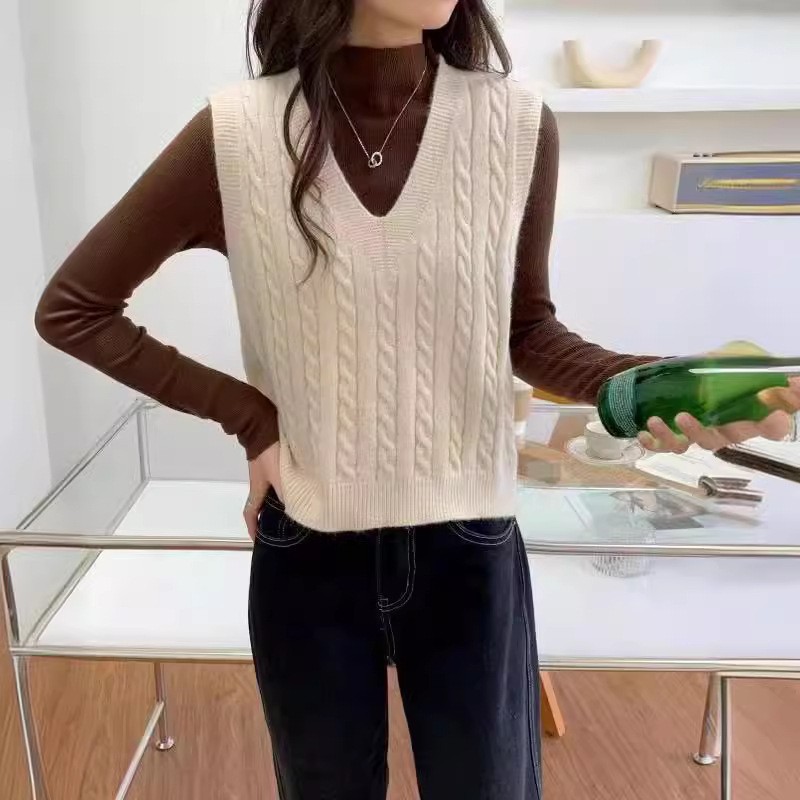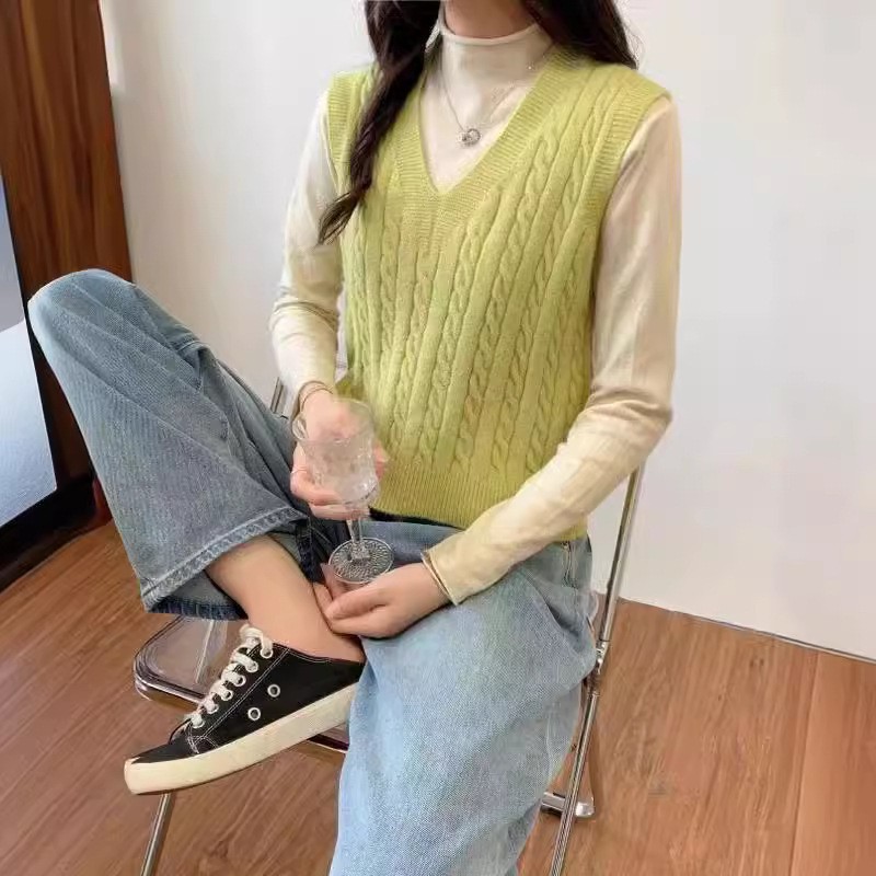 봄과 가을 새로운 v 넥 트위스트 솔리드 컬러 니트 조끼 여성 4 느슨한 스웨터 조끼 겉옷