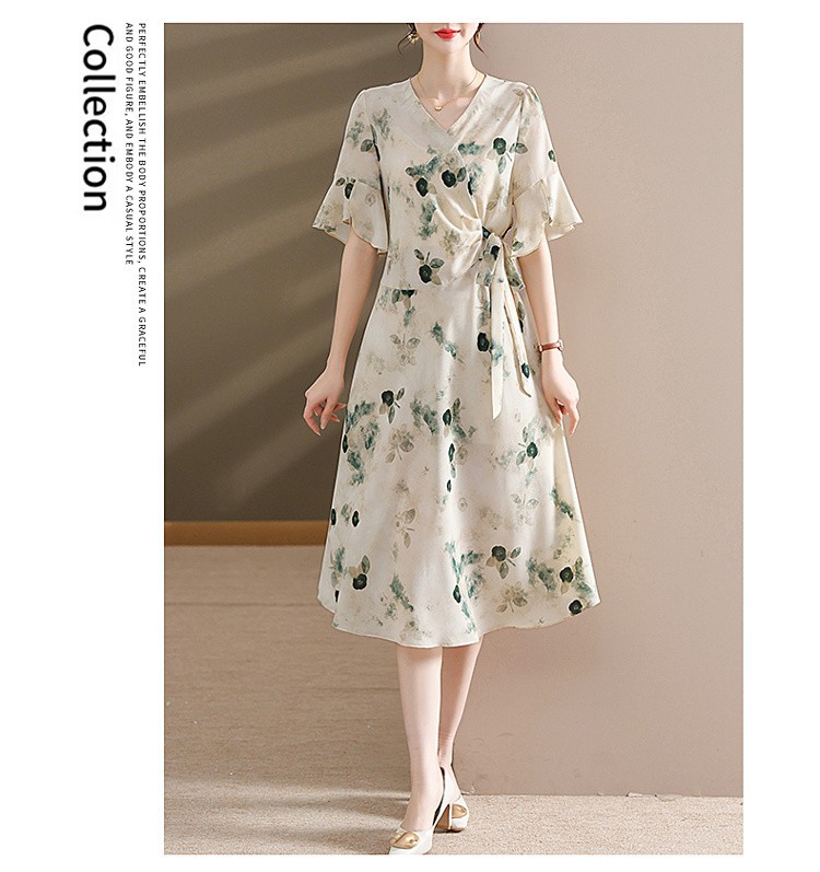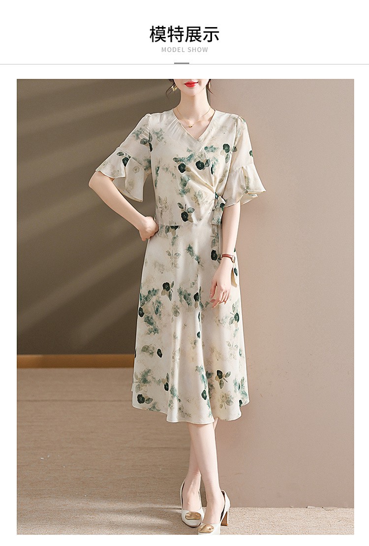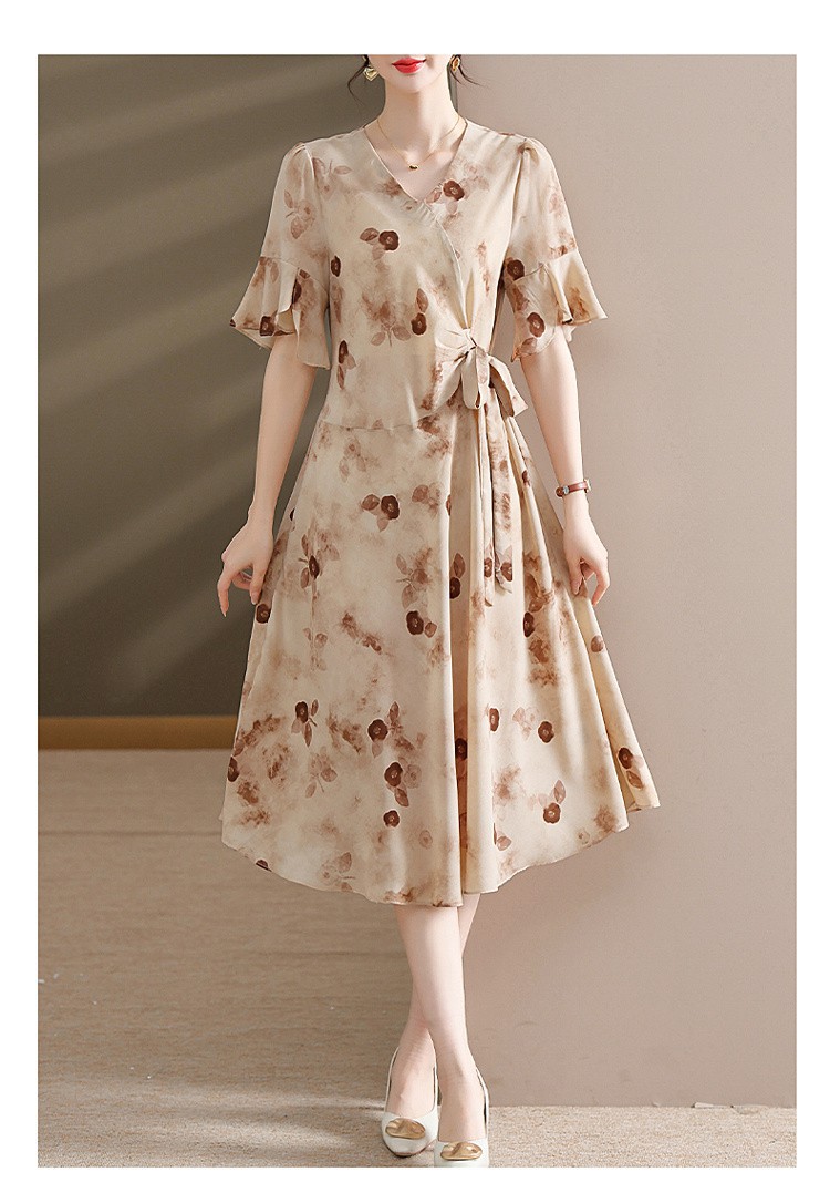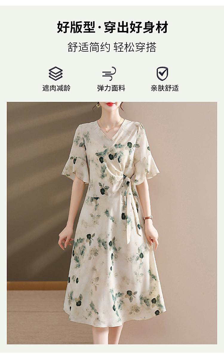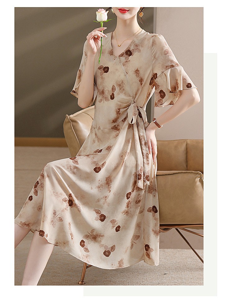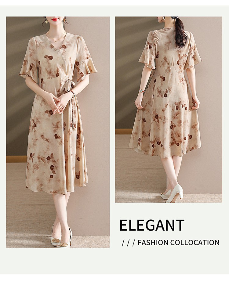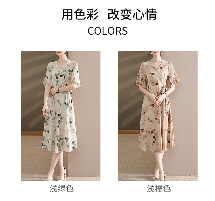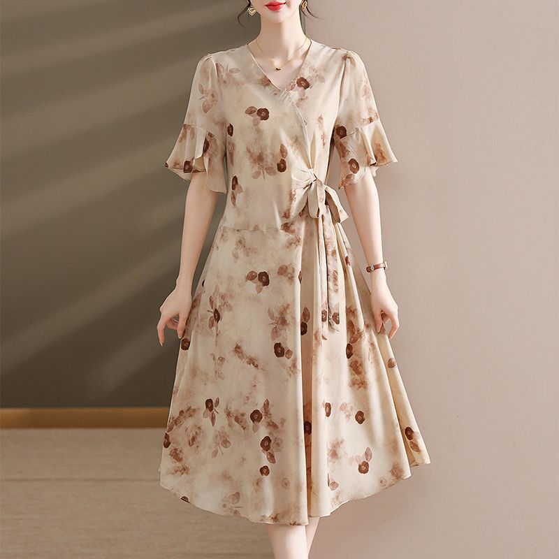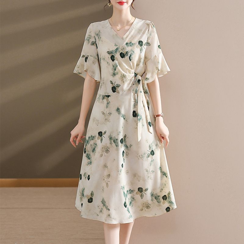 외국 기질 중년 및 노인 여성의 여름 옷 원피스 얇은 중년 어머니의 여름 허리 중간 길이 치마
