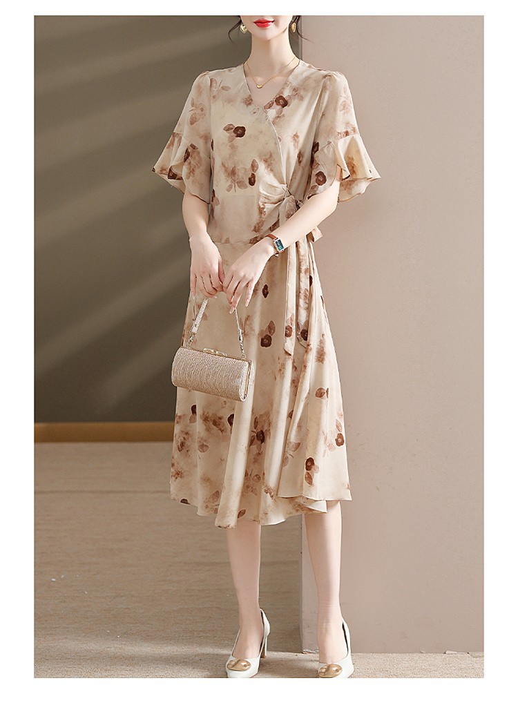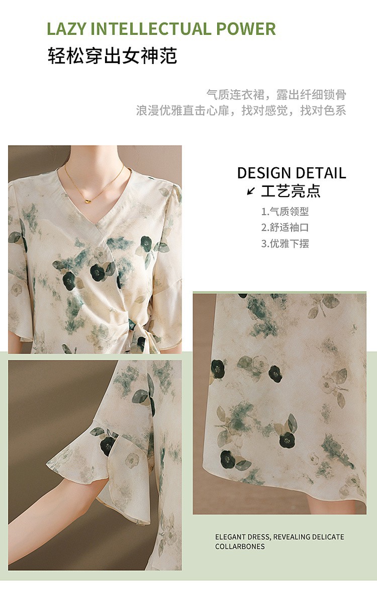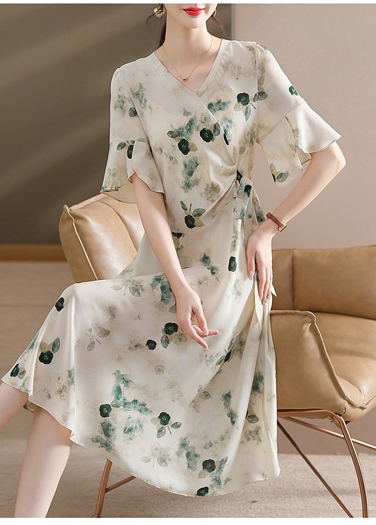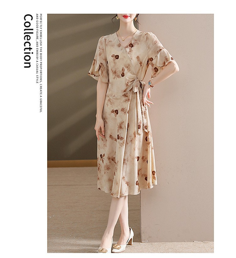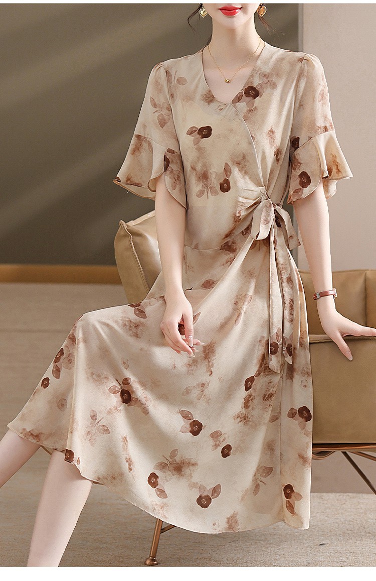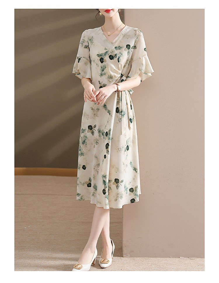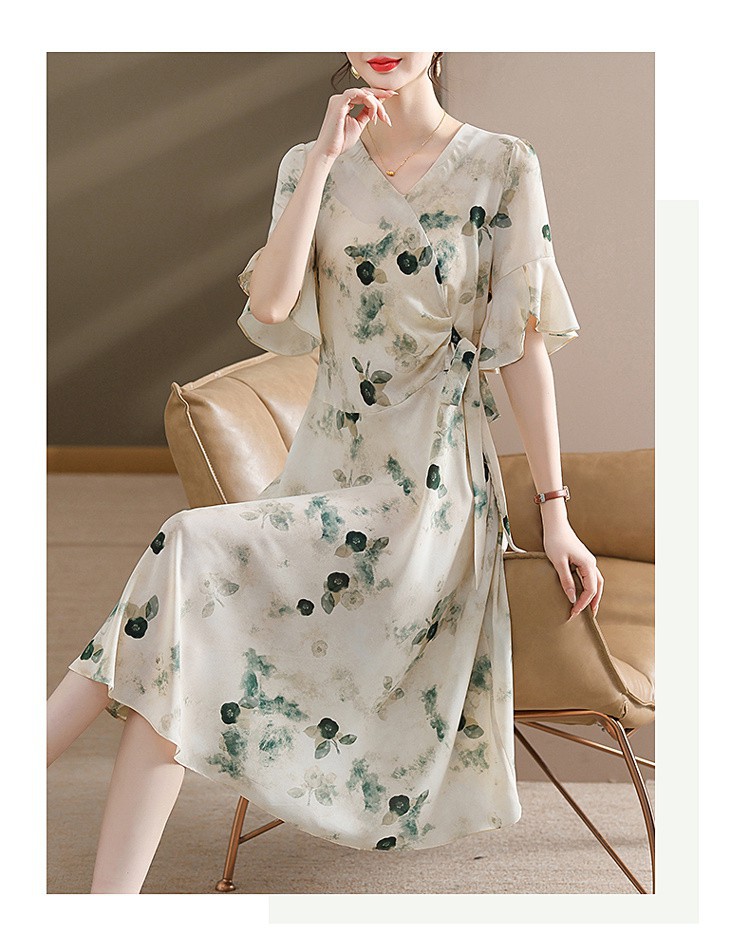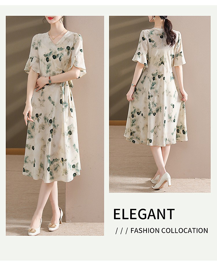 외국 기질 중년 및 노인 여성의 여름 옷 원피스 얇은 중년 어머니의 여름 허리 중간 길이 치마