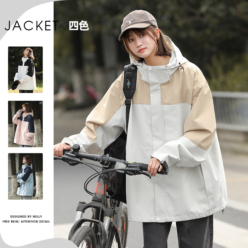2024 봄과 가을 컬러 매칭 충전 의류 맞춤형 남성 및 여성 유행 한국 스타일 캐주얼 느슨한 커플 방풍 재킷스토어 가기