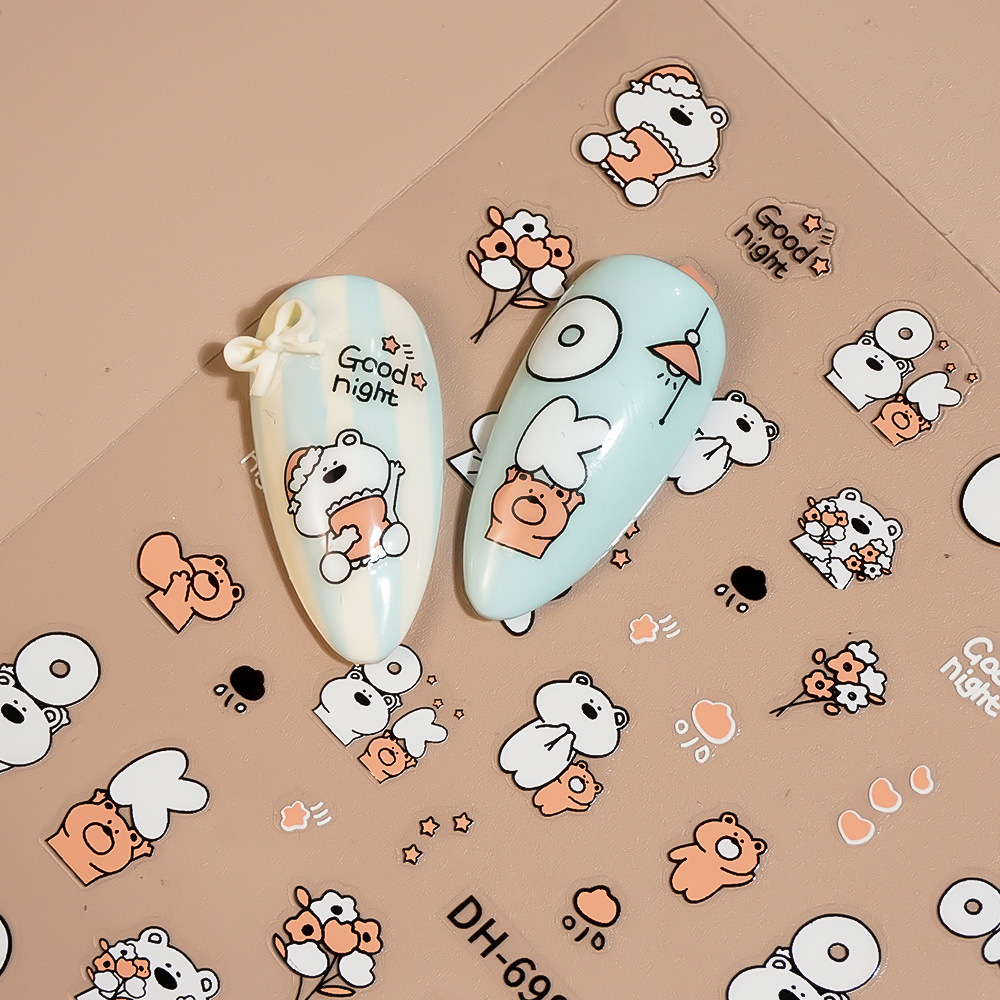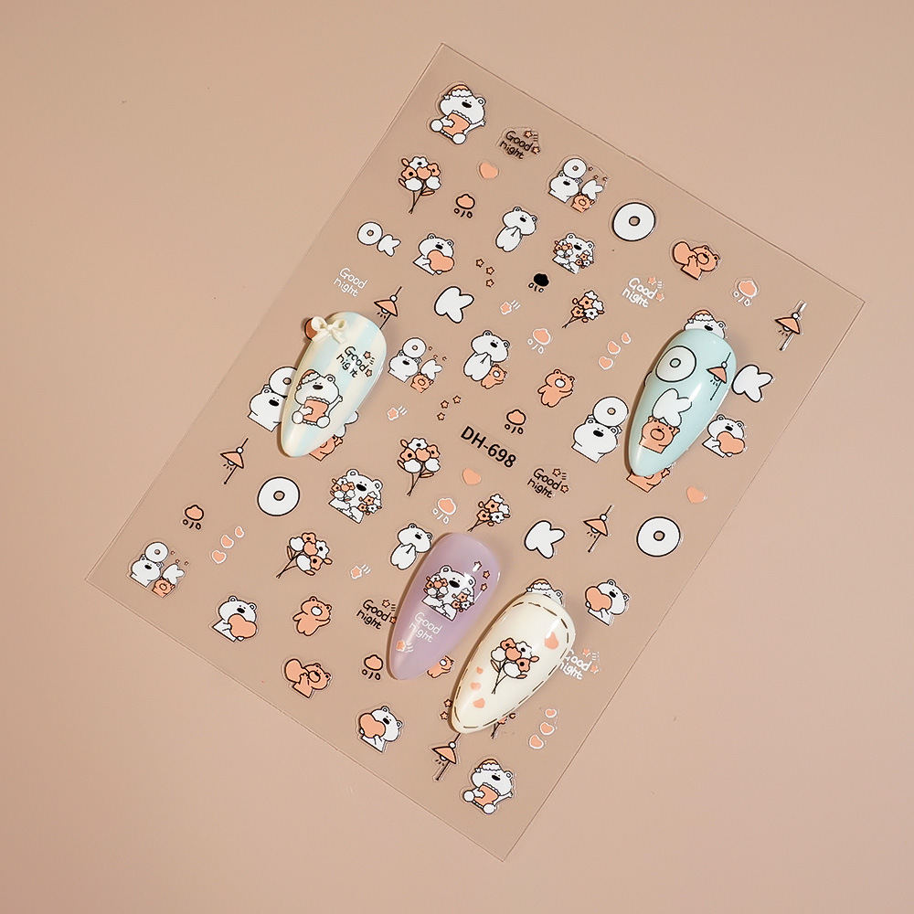 Redanco 새로운 3D 그물 붉은 폭발 만화 곰 네일 스티커 접착 네일 스티커 도매 DH-698스토어 가기