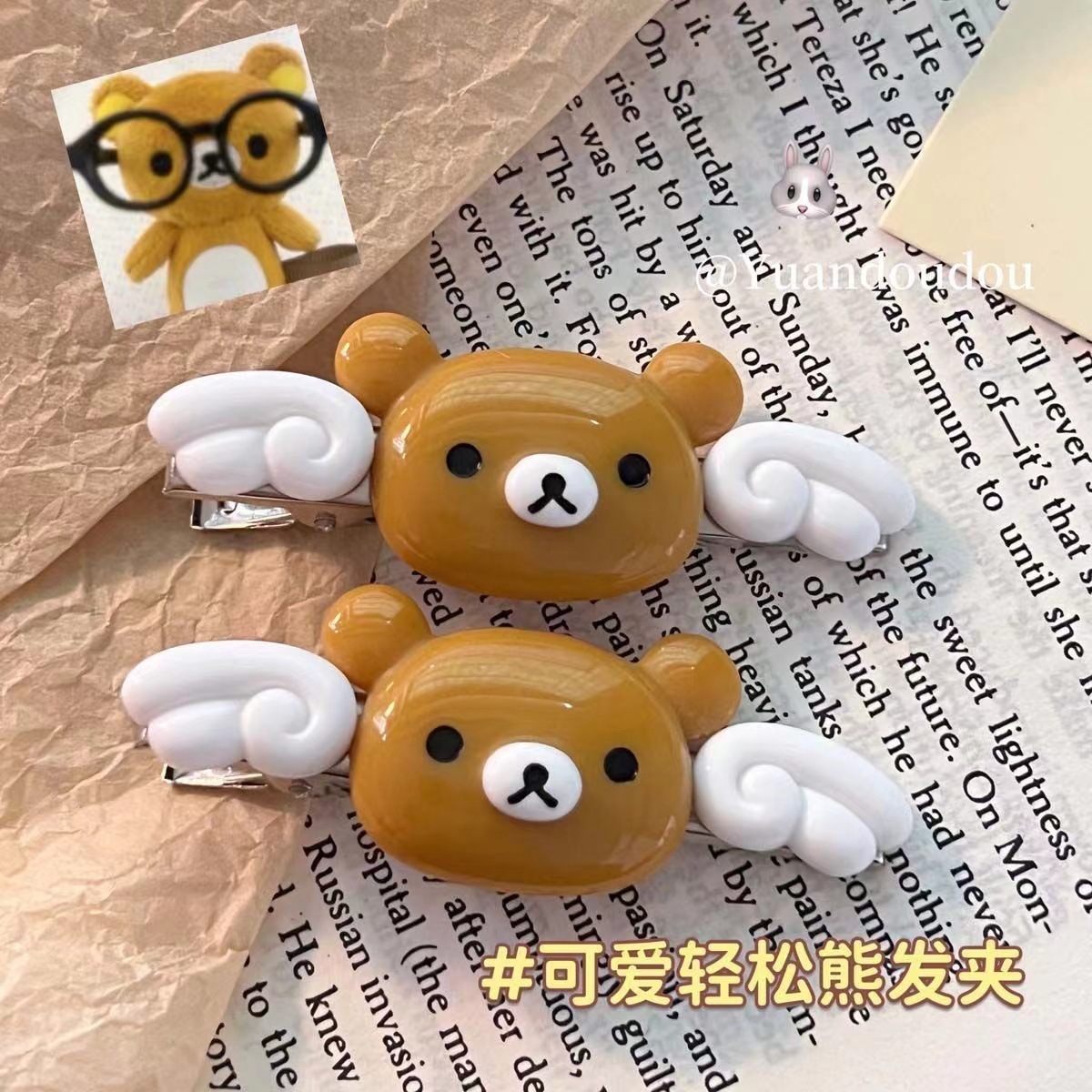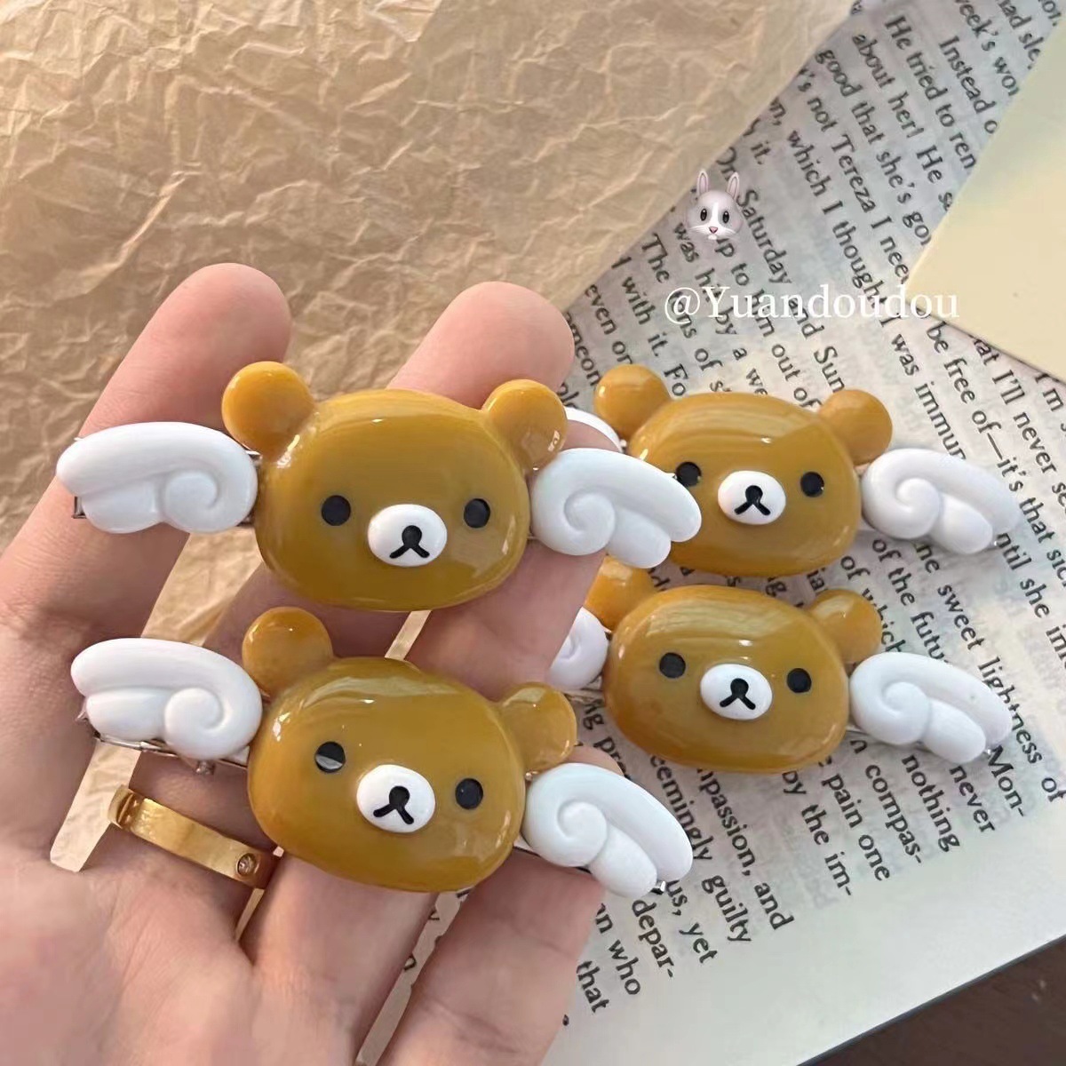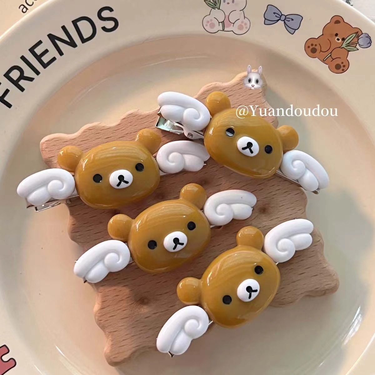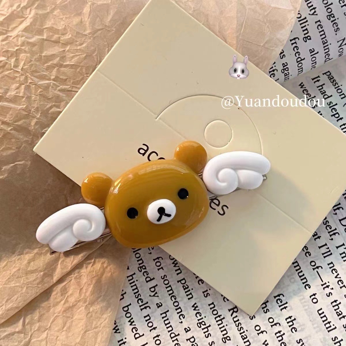 만화 귀여운 춤추는 편안한 곰 날개 머리핀 달콤한 학생 사이드 머리핀 이마 앞머리 클립 머리 장식스토어 가기