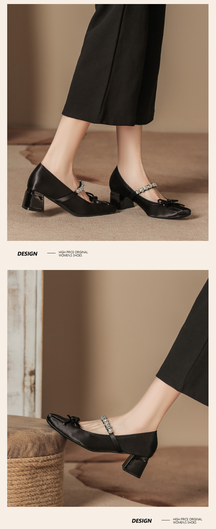 실크 새틴 스타일 하이힐, 가벼운 럭셔리, 고급스러운 여성 여름 통굽 슈즈, 스퀘어토, 리본 장식, 장시간 서 있어도 발이 피곤하지 않음스토어 가기