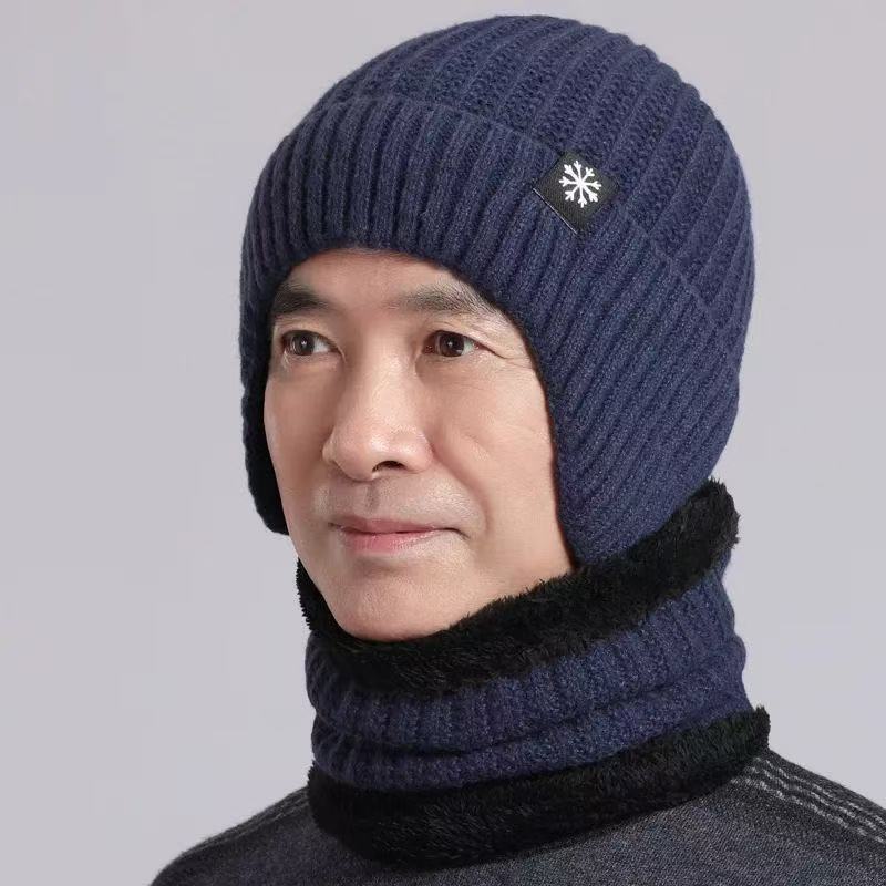 • 귀 따뜻한 후드 모자 - 네이비 블루