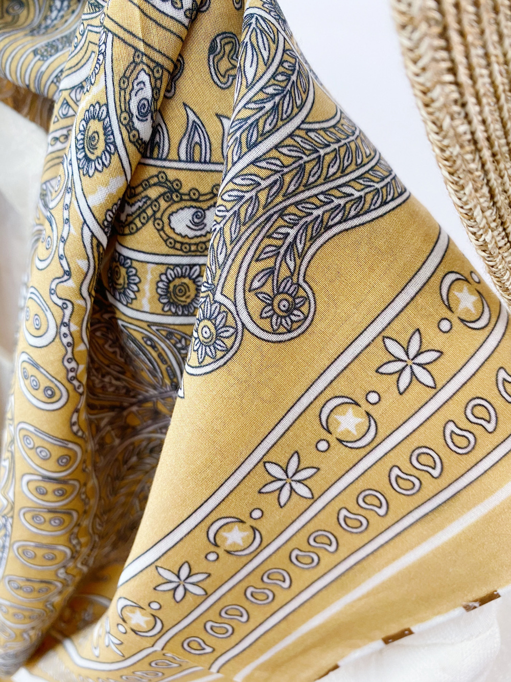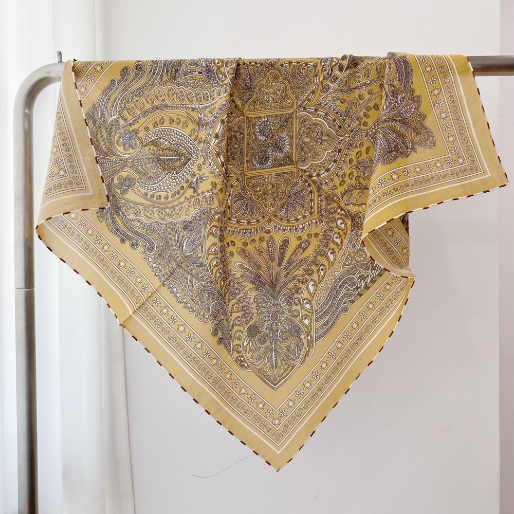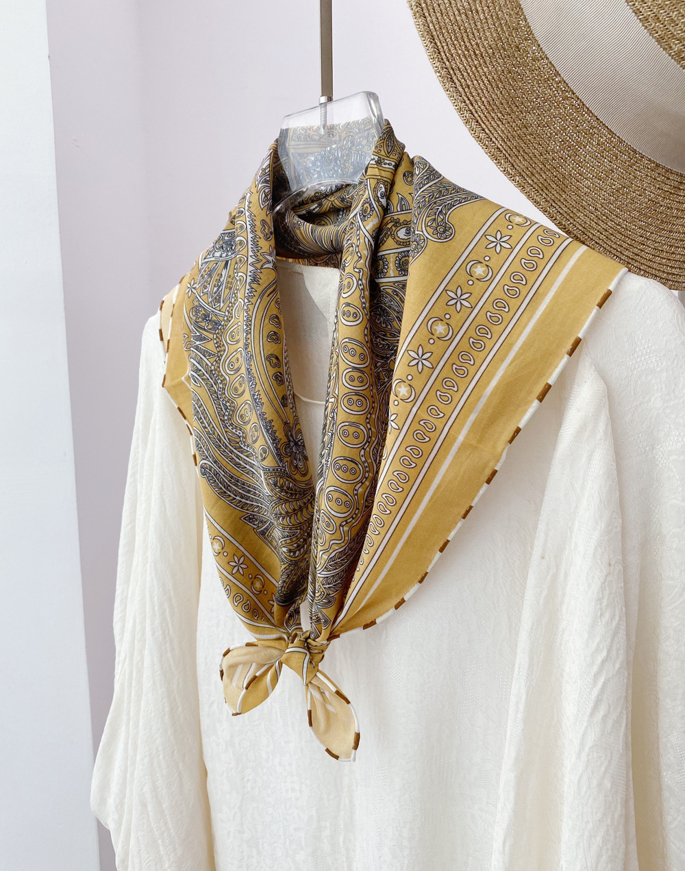 실크 코튼 혼합 실크 스카프 스퀘어 스카프 모든 경기 뽕나무 실크 스카프 목 보호 작은 스카프 목도리 동물 노란색