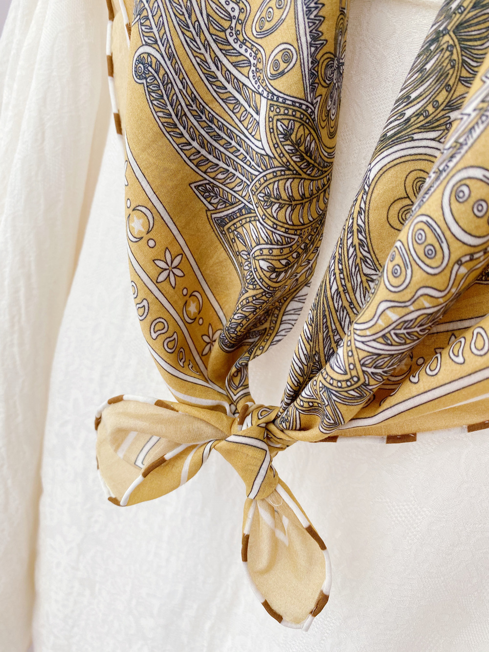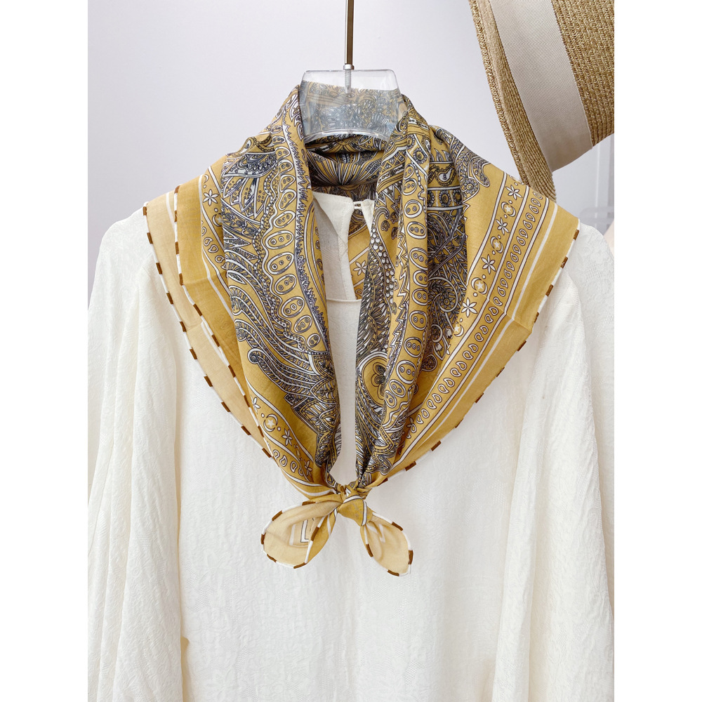 실크 코튼 혼합 실크 스카프 스퀘어 스카프 모든 경기 뽕나무 실크 스카프 목 보호 작은 스카프 목도리 동물 노란색스토어 가기
