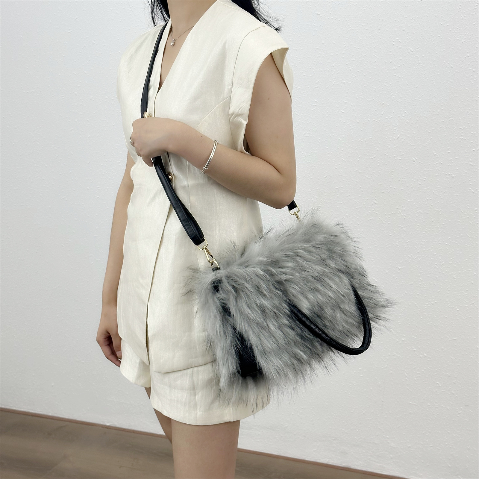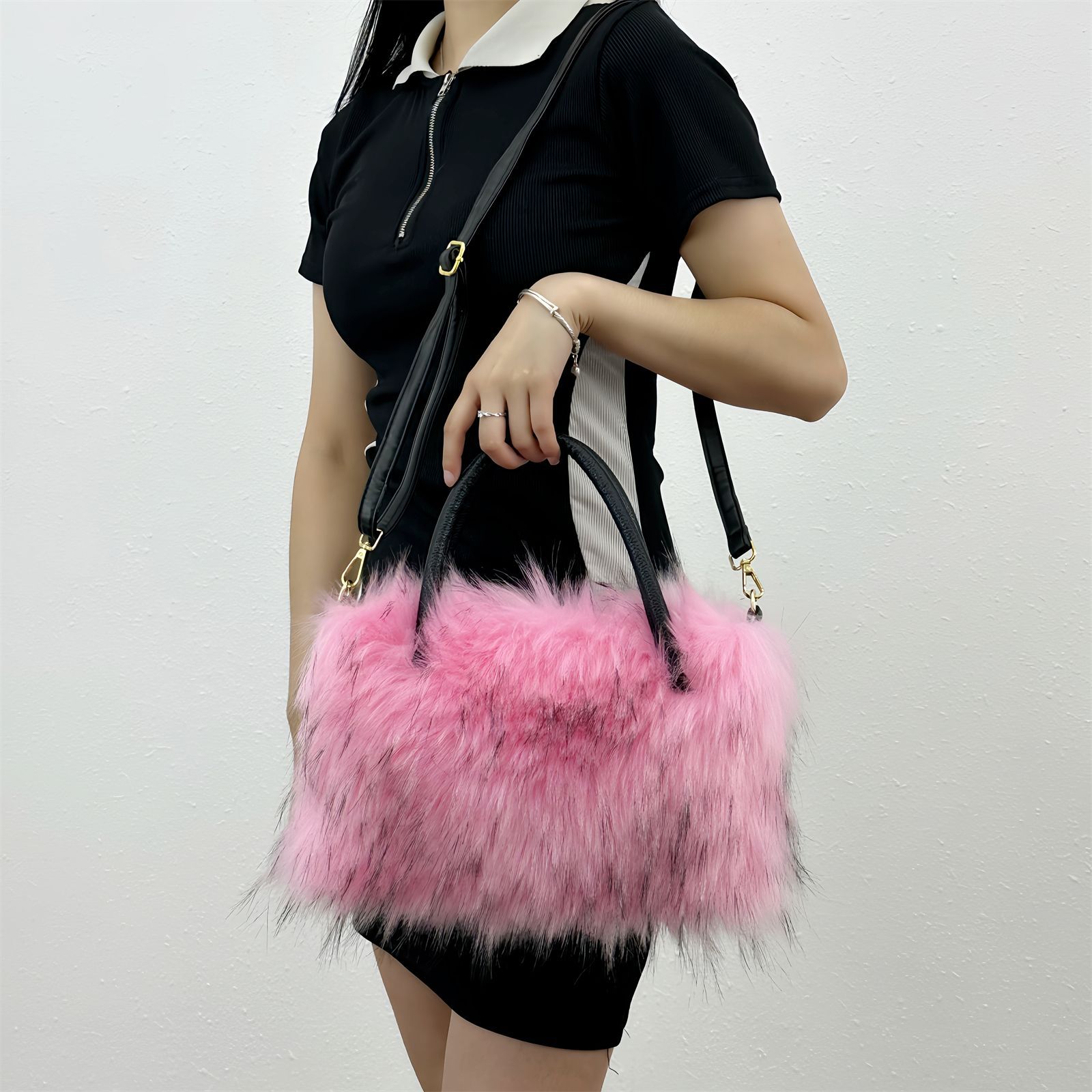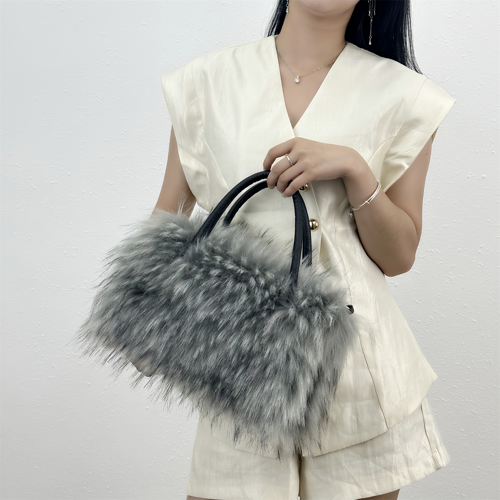 2025 새로운 유럽과 미국의 가방 여성 스퀘어 플러시 가방 모조 모피 너구리 모피 핸드백 대용량 토트 백스토어 가기
