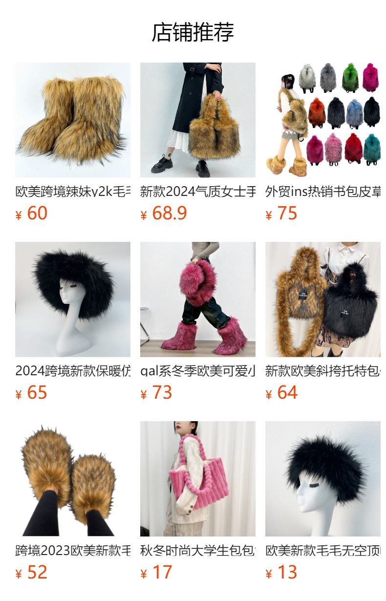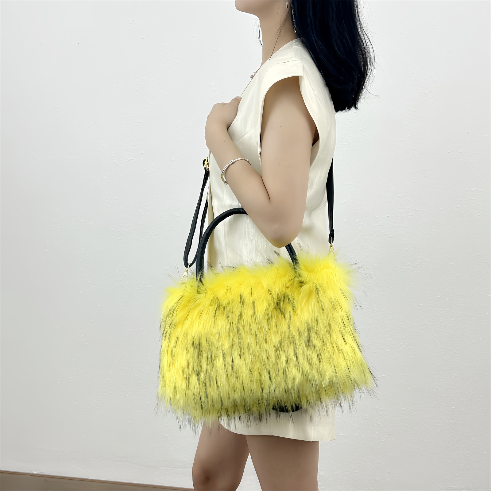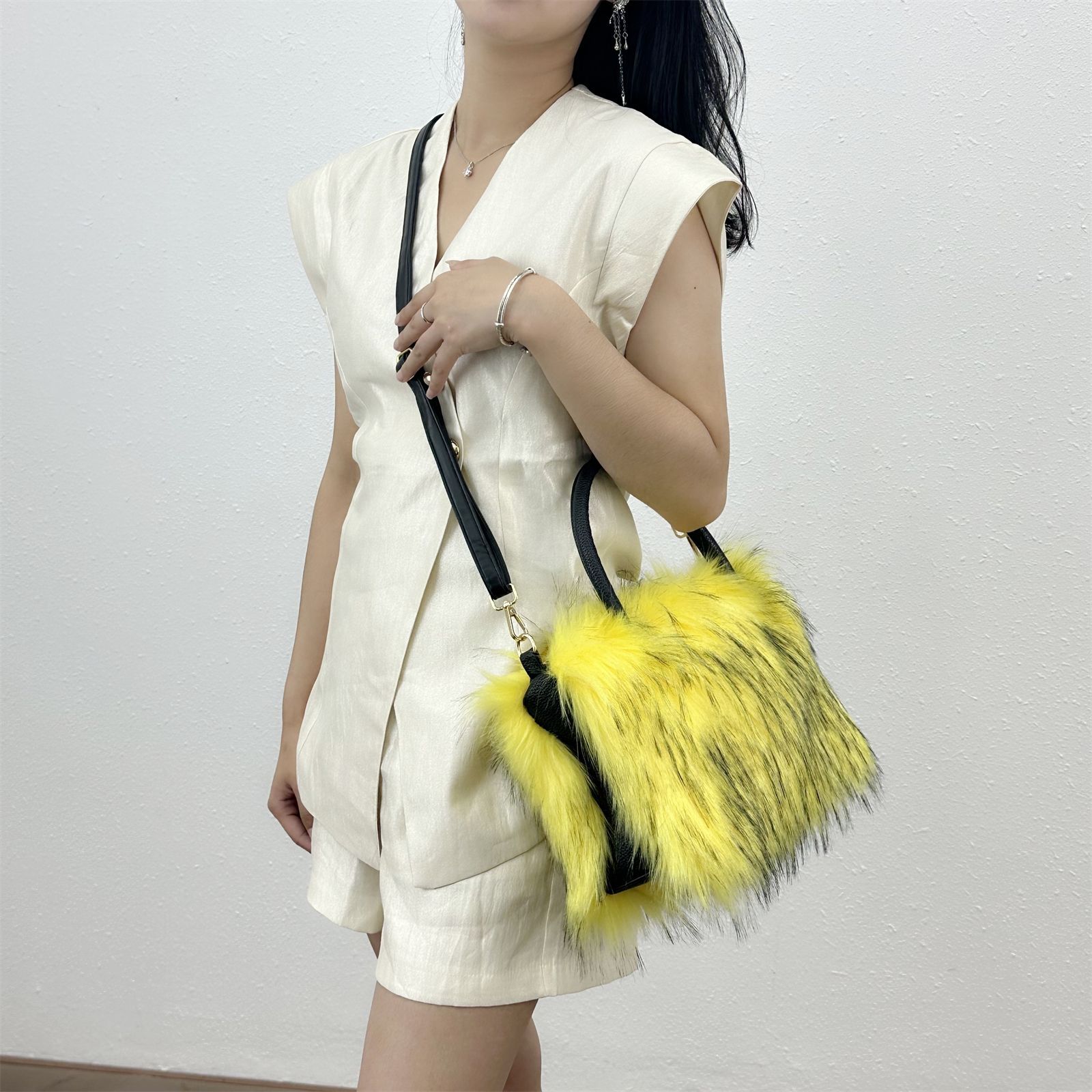 2025 새로운 유럽과 미국의 가방 여성 스퀘어 플러시 가방 모조 모피 너구리 모피 핸드백 대용량 토트 백스토어 가기