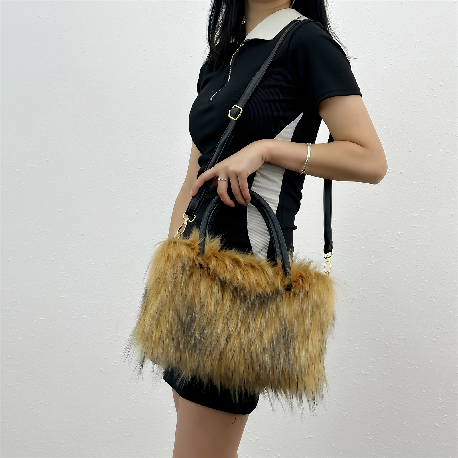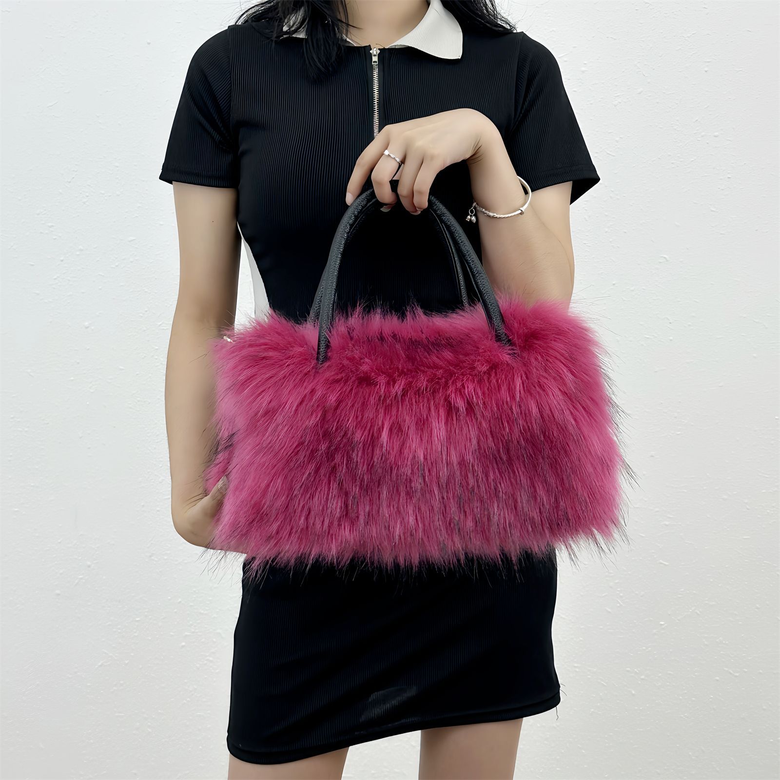 2025 새로운 유럽과 미국의 가방 여성 스퀘어 플러시 가방 모조 모피 너구리 모피 핸드백 대용량 토트 백
