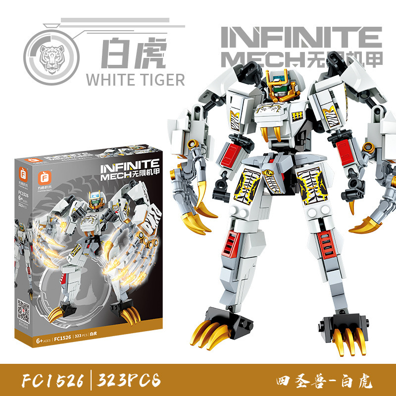 어린이 작은 입자 빌딩 블록 고 에너지 메카 로봇 용 흰색 호랑이 정신 짐승 메카 모델 소년 조립 및 삽입스토어 가기