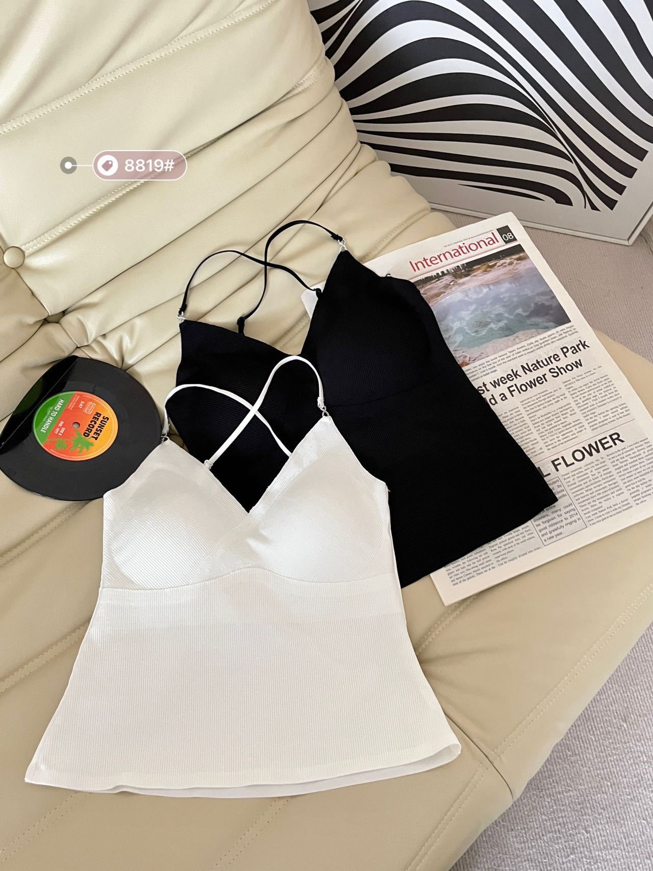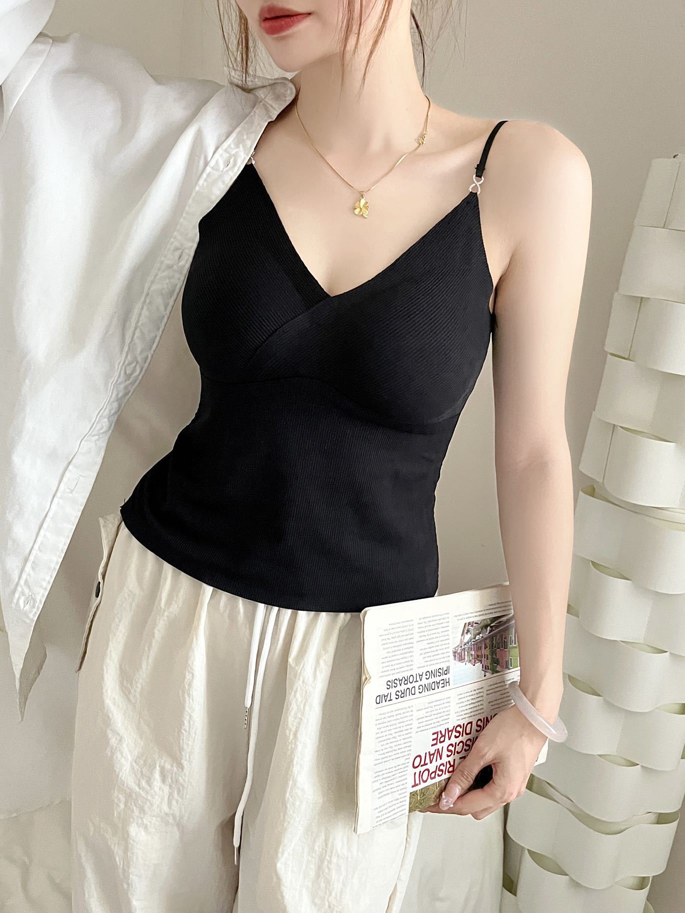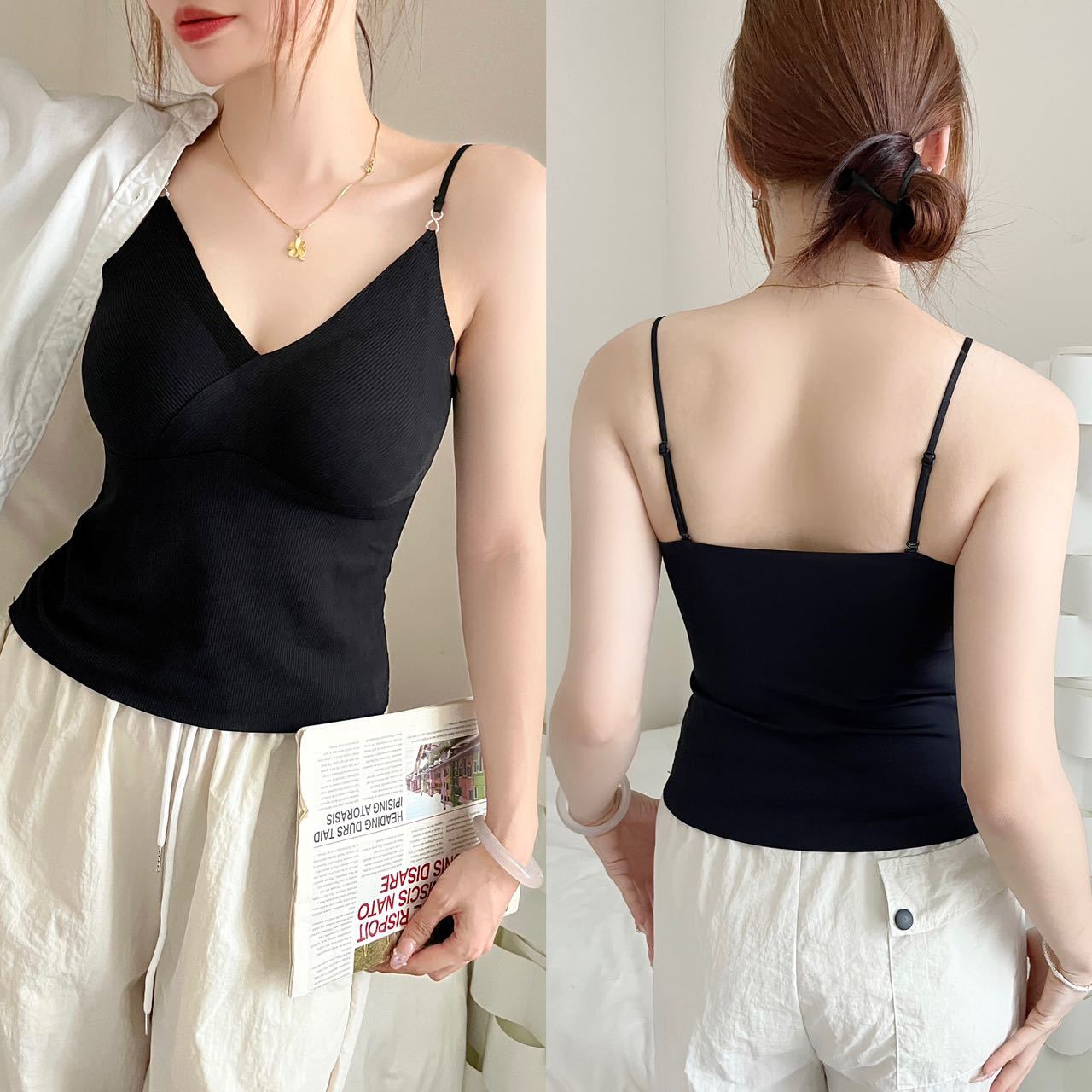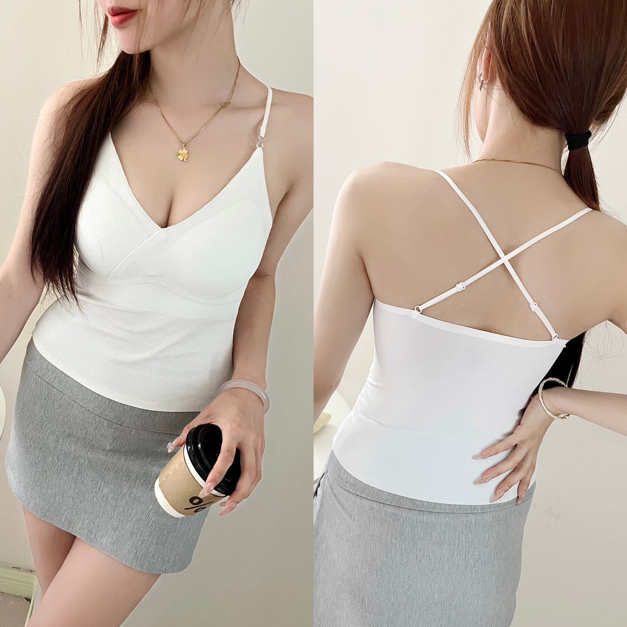 섹시한 크로스 원피스 원활한 작은 카미 솔 조끼 여성 여름 외부 착용 아름다운 등 슬림 핏 슬림 핏 올 매치 탑