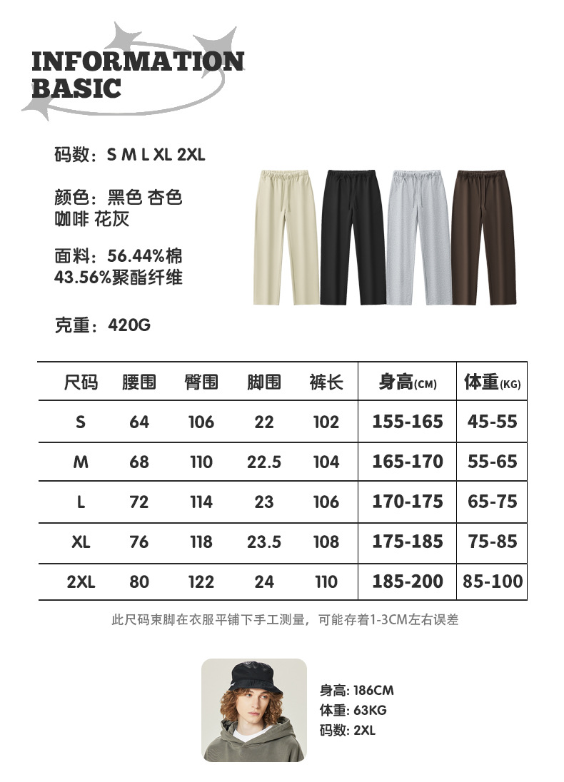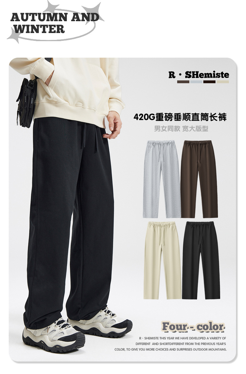 RS 남성복 | 2025 가을 겨울 420G 헤비웨이트 스트레이트 팬츠 캐주얼 바지 남성용 드레이프감 좋은 편안한 와이드 팬츠 남성용