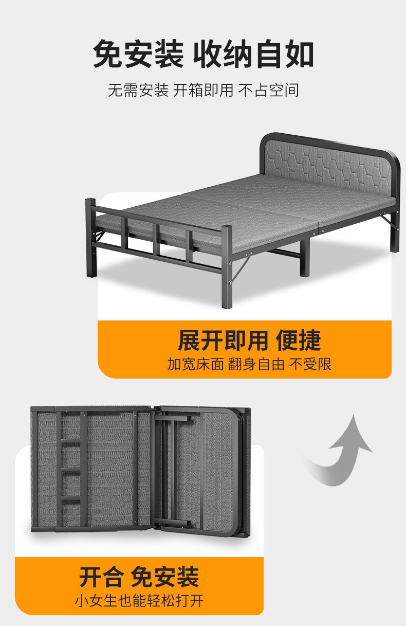 접이식 침대 싱글 가구 편리한 접이식 선반 침대 작은 아파트 두꺼운 편안한 철 침대 도매 야외 마칭 침대스토어 가기