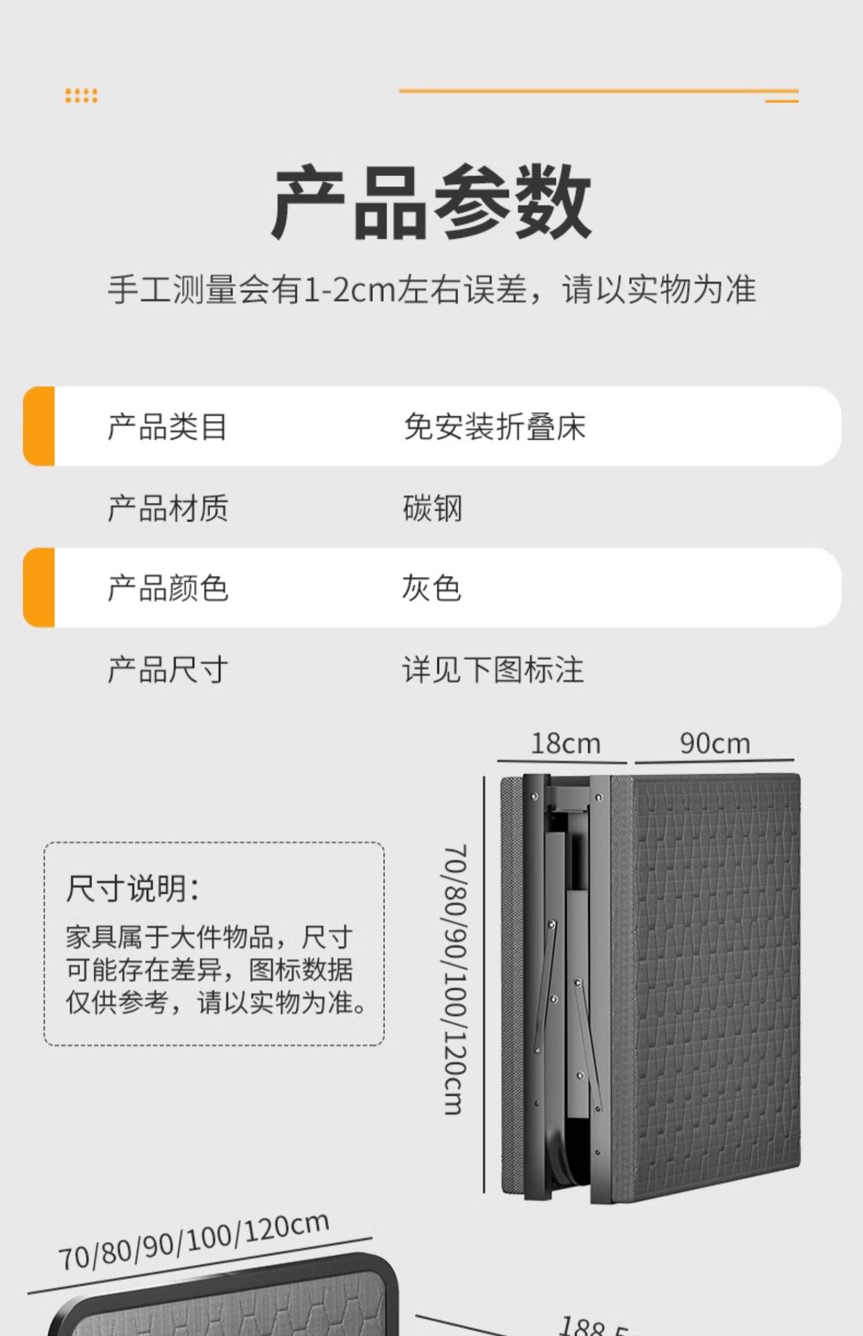 • [두꺼운 철골 소프트백 스타일] 폭 80cm, 길이 190CM