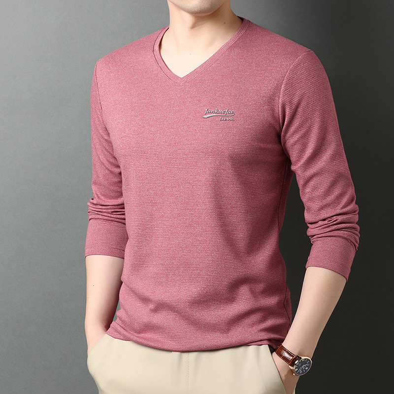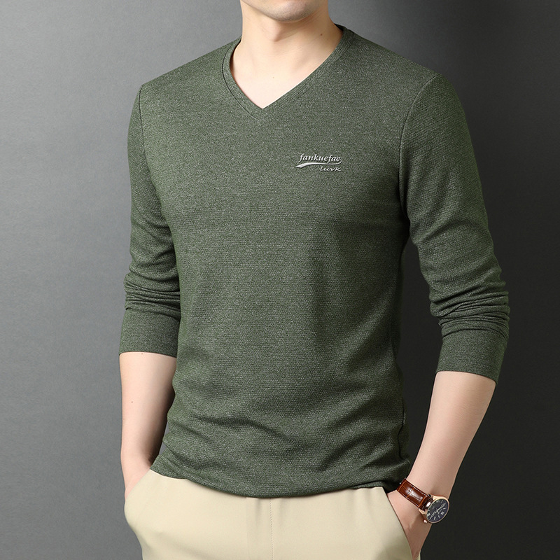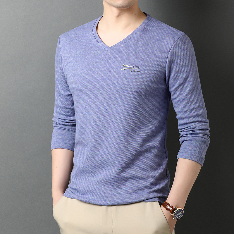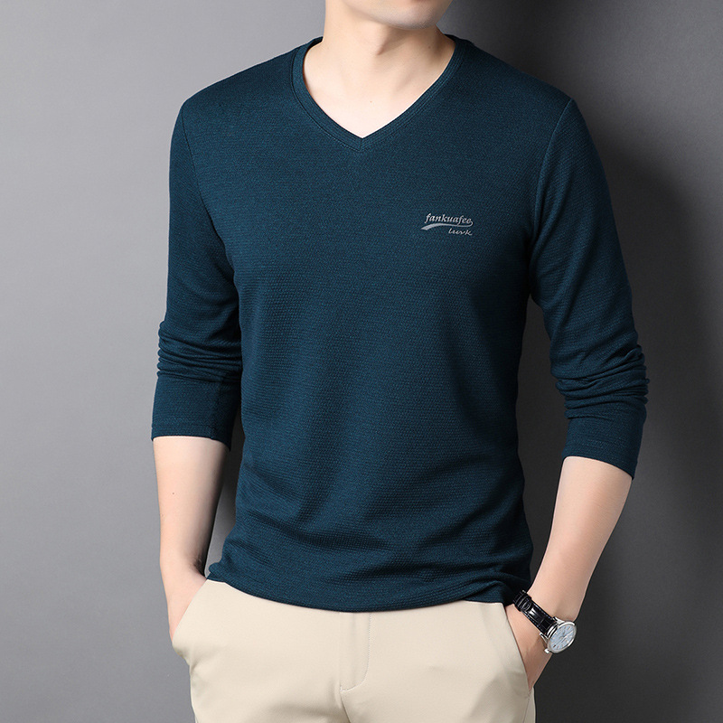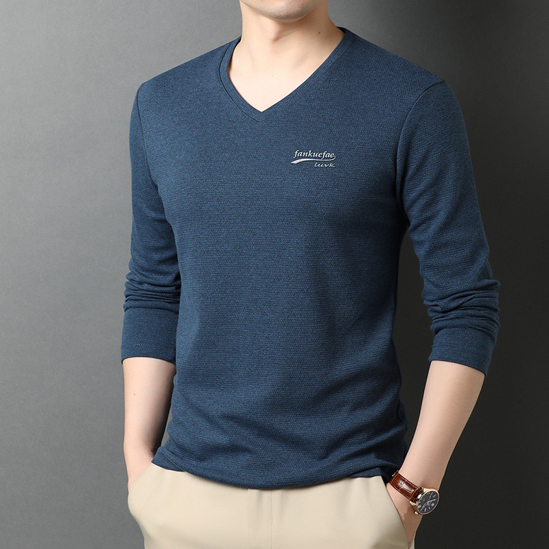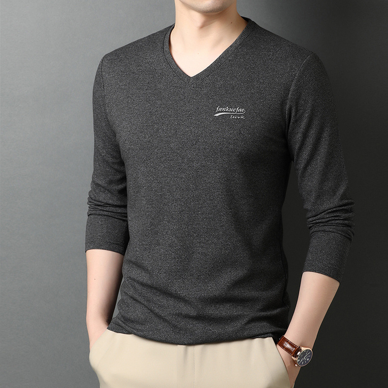 恒源祥 2025 봄 가을 중년 남성 긴팔 티셔츠 브이넥 면 혼방 이너웨어 얇은 캐주얼 상의스토어 가기