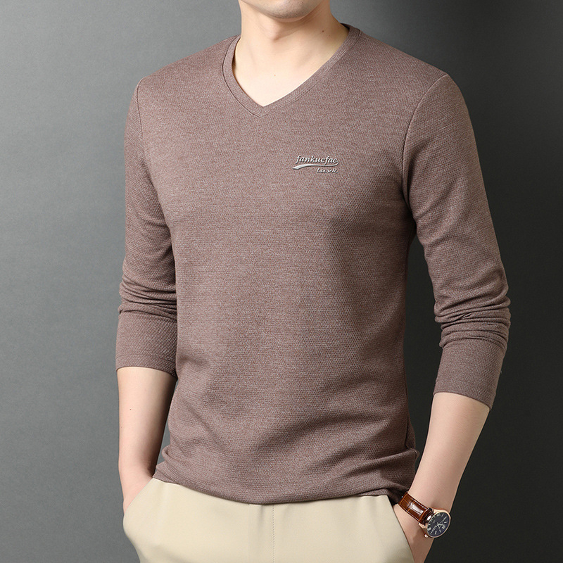 恒源祥 2025 봄 가을 중년 남성 긴팔 티셔츠 브이넥 면 혼방 이너웨어 얇은 캐주얼 상의
