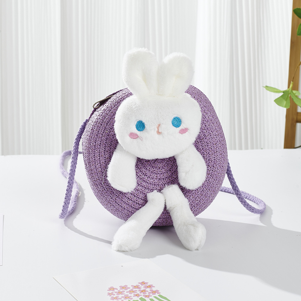 2024 여름 어린이 작은 가방 여행 만화 토끼 작은 둥근 가방 여성의 귀여운 소녀 크로스 바디 밀짚 휴대 전화 가방스토어 가기