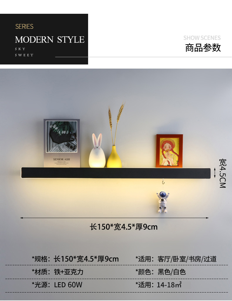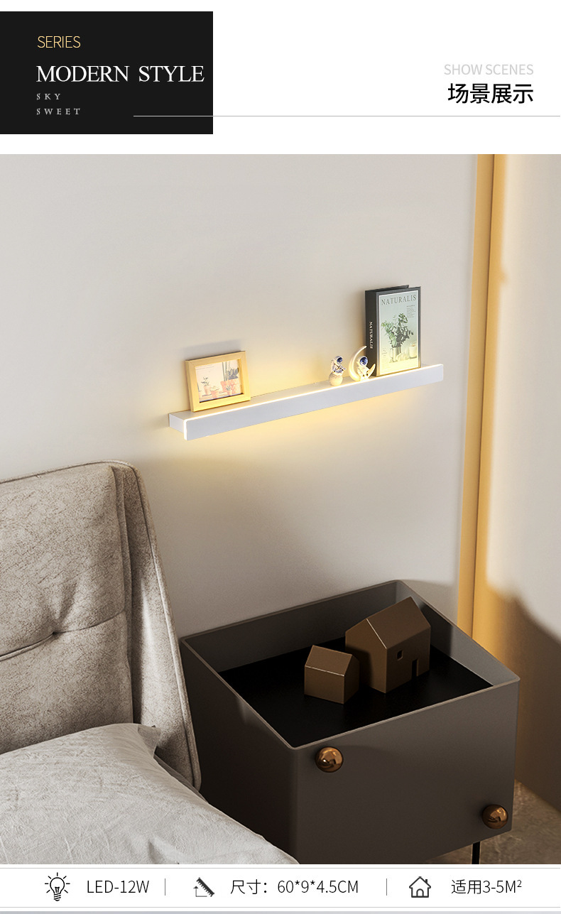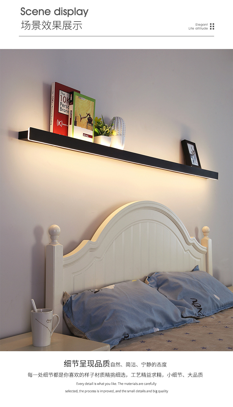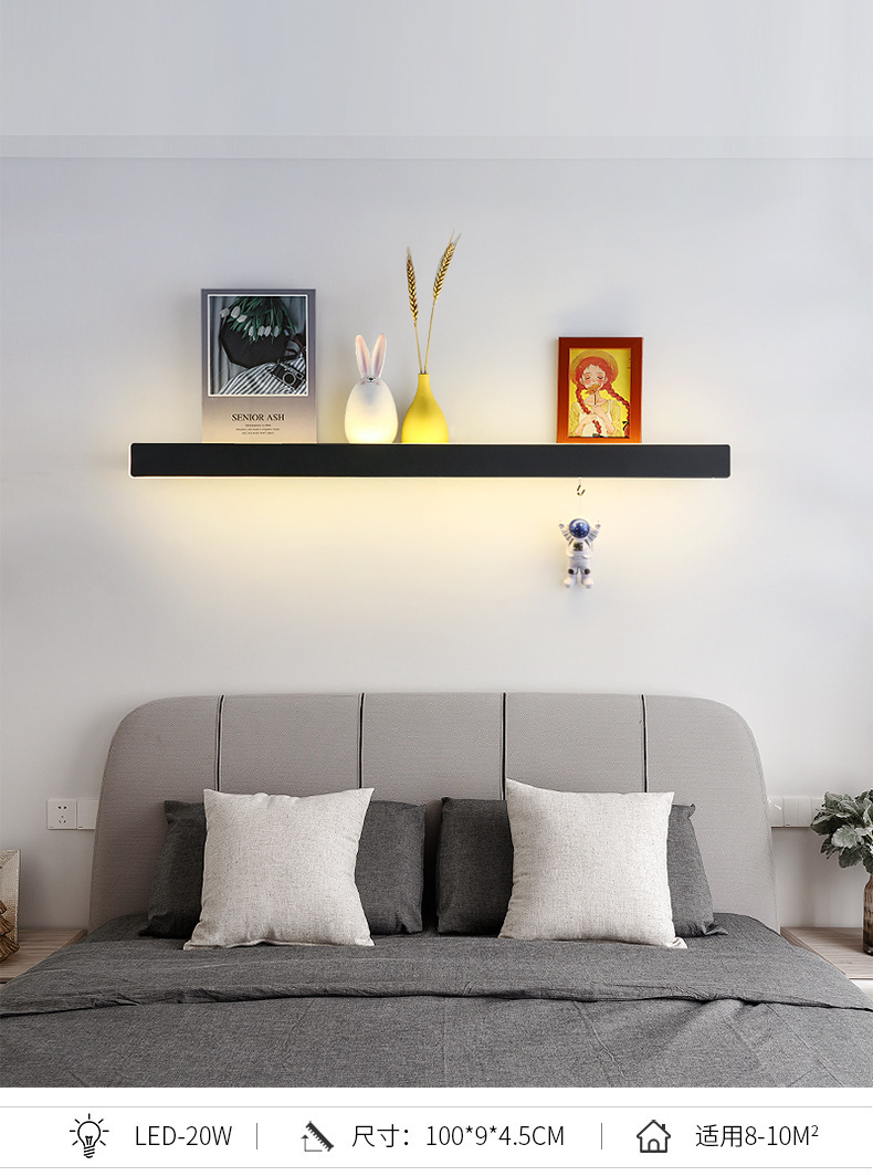 저장 선반 벽 램프 긴 램프 거실 소파 배경 벽 램프 침실 침대 옆 램프 미니멀리스트 장식품 라인 램프스토어 가기