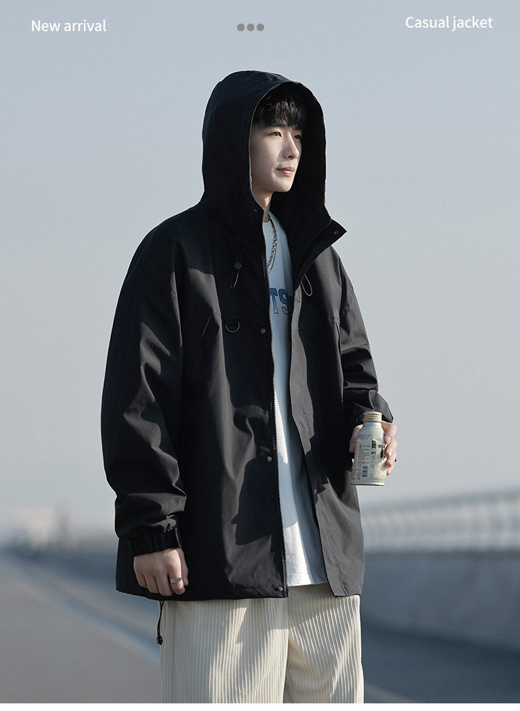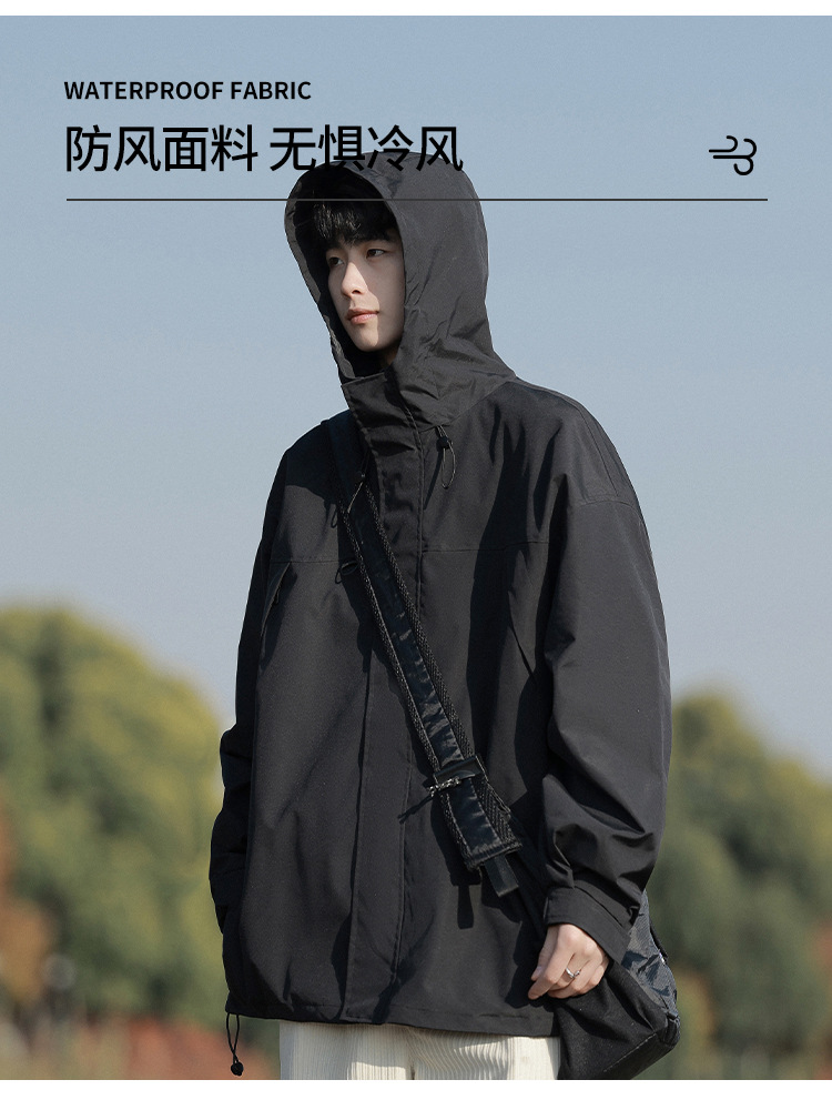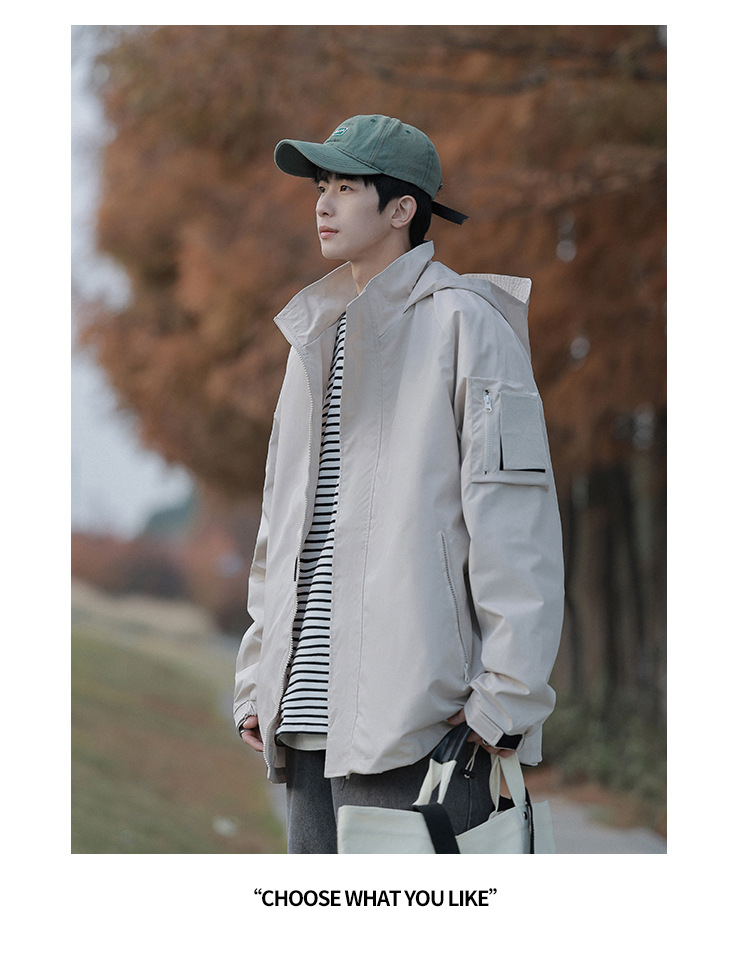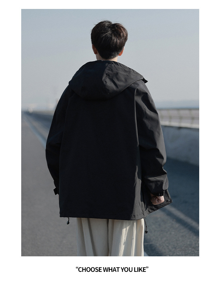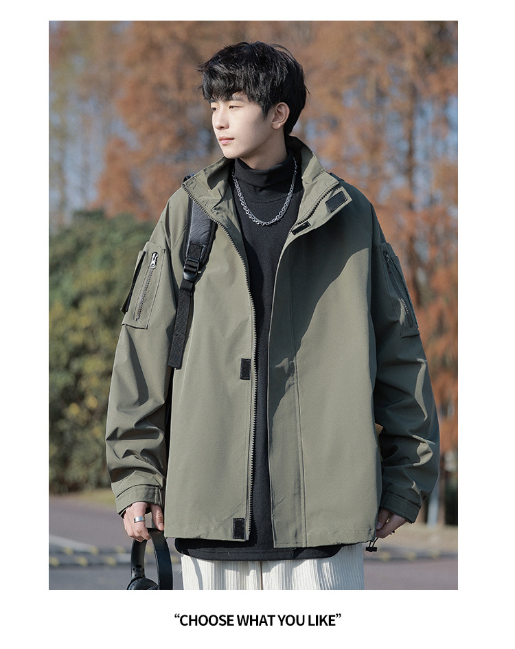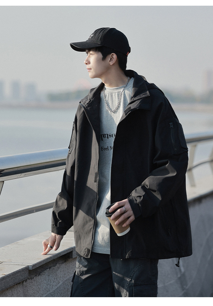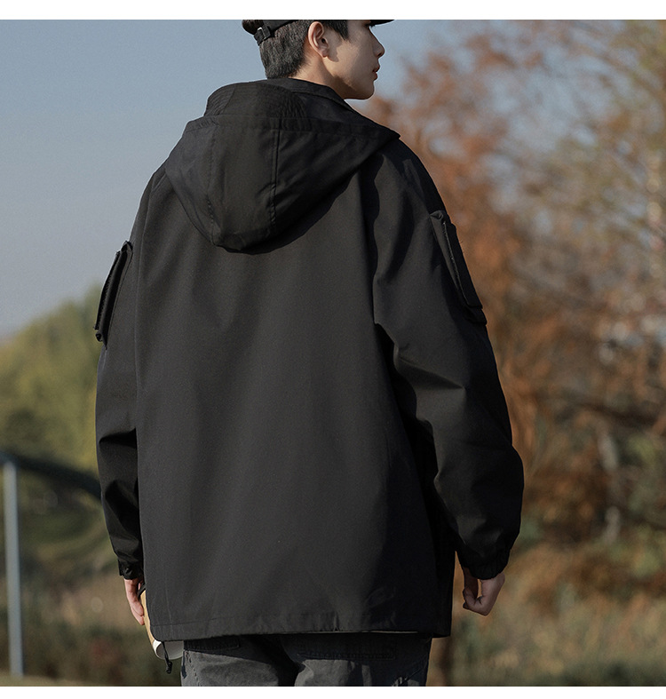 봄과 가을 새로운 일본 스타일 트렌디 한 브랜드 작업 자켓 남성용 트렌디 한 느슨한 캐주얼 야외 충전 자켓 후드 자켓