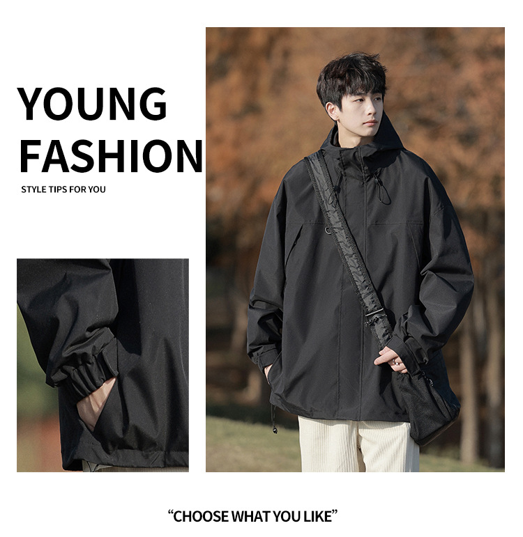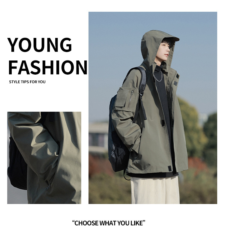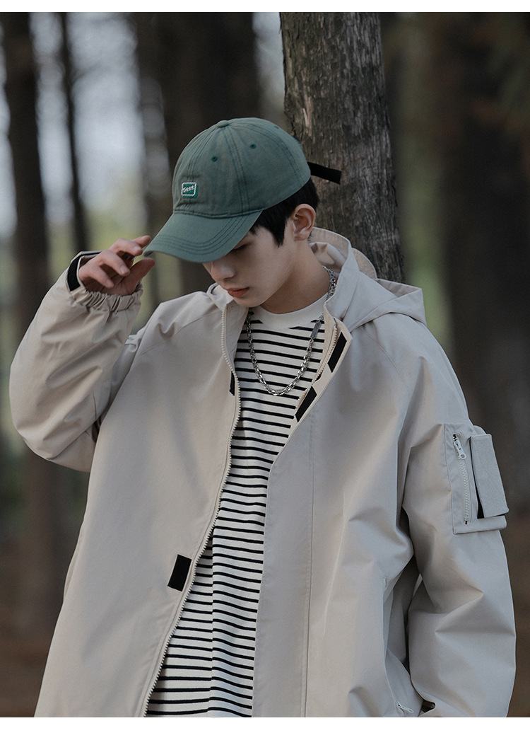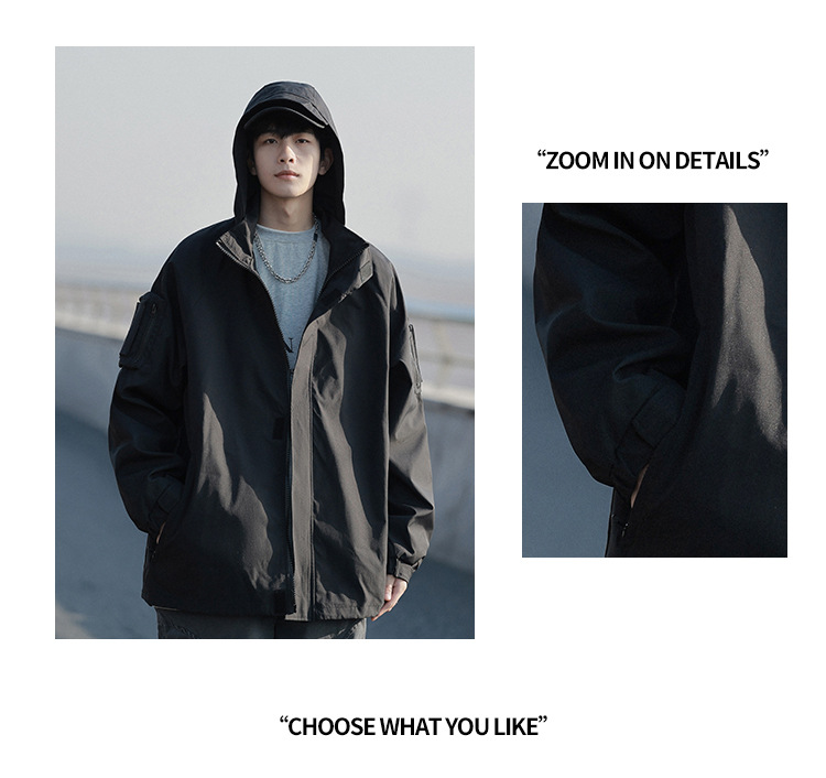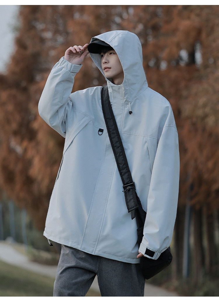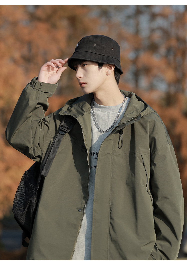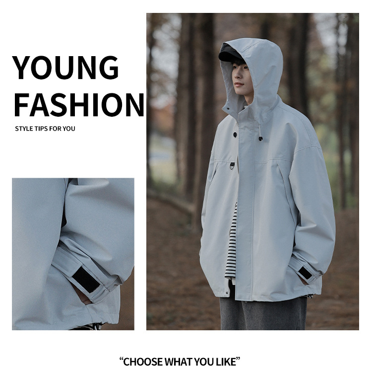 봄과 가을 새로운 일본 스타일 트렌디 한 브랜드 작업 자켓 남성용 트렌디 한 느슨한 캐주얼 야외 충전 자켓 후드 자켓