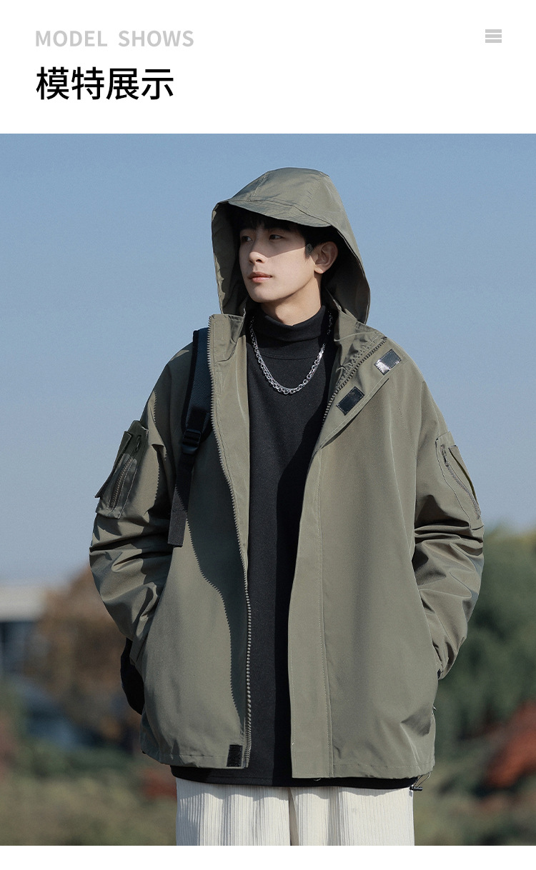 봄과 가을 새로운 일본 스타일 트렌디 한 브랜드 작업 자켓 남성용 트렌디 한 느슨한 캐주얼 야외 충전 자켓 후드 자켓스토어 가기