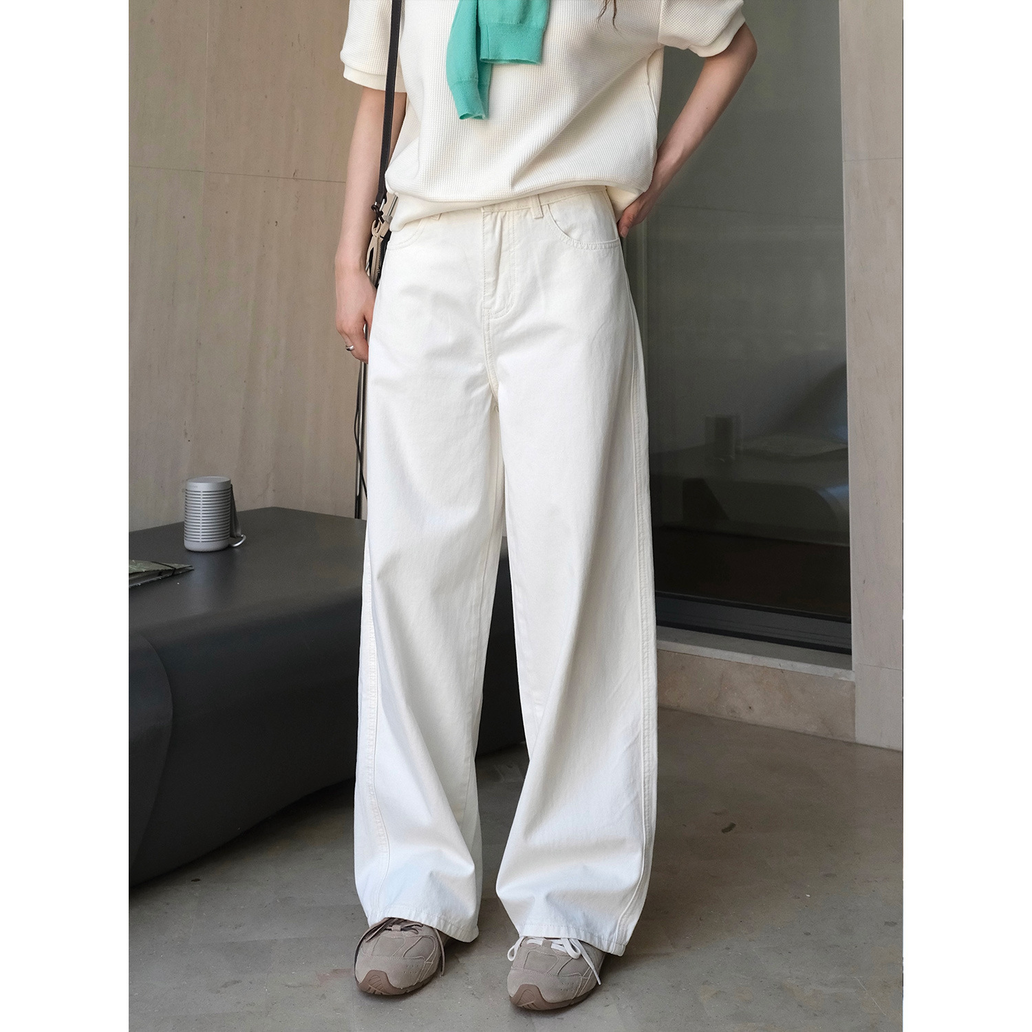 루푸 가을 새로운 한국 스타일 간단한 편안한 화이트 스트레이트 청바지 유연한 피부 친화적 인 캐주얼 바지스토어 가기