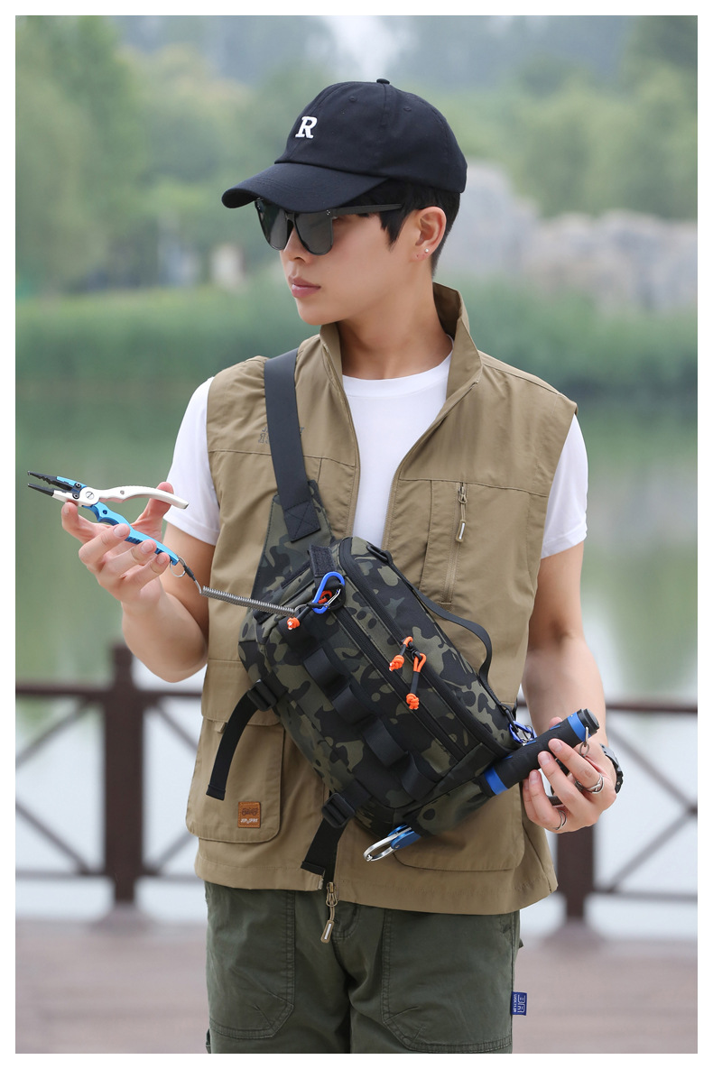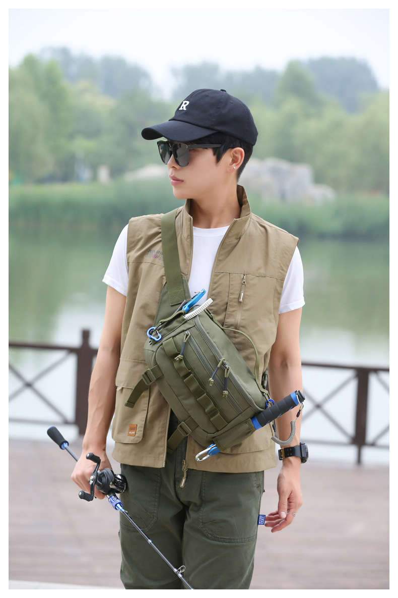 국경 간 야외 루야 가방 다기능 허리 가방 가슴 가방 물고기 장대 가방 대용량 낚시 배낭 전술 위장 사첼스토어 가기