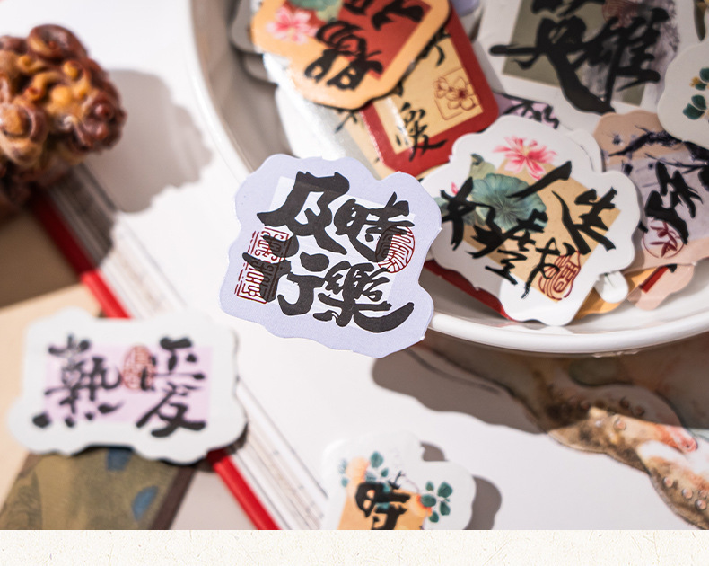 잉크 및 세척 세계 브론즈 박스 텍스트 스티커 중국 스타일 클래식 서예 손 계정 DIY 장식 재료