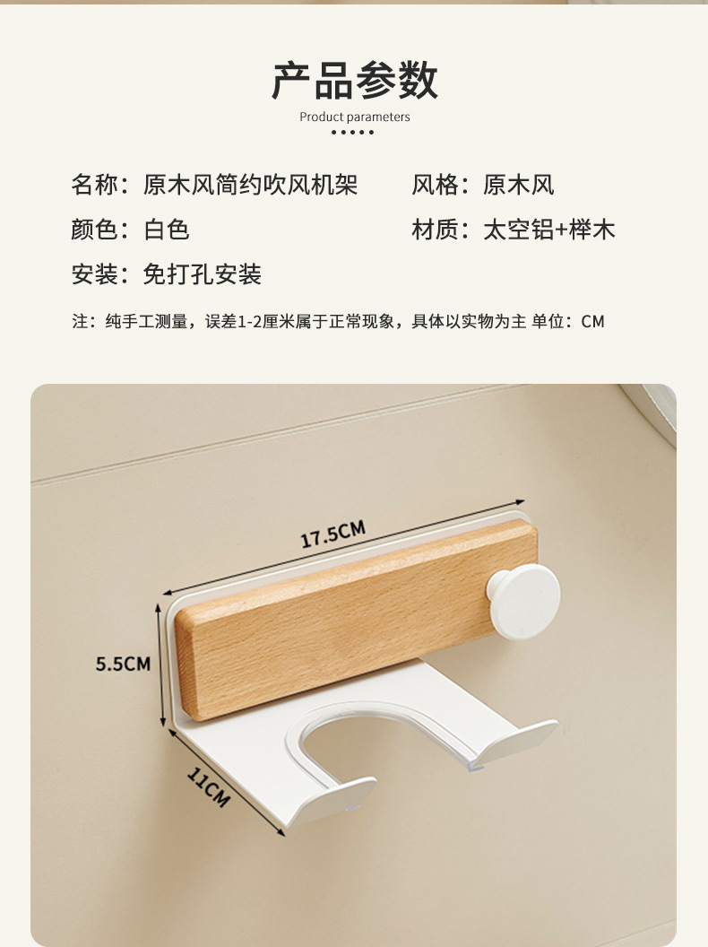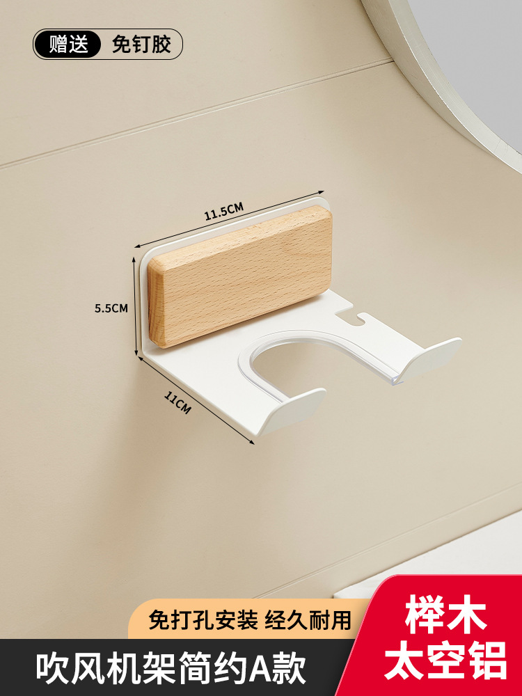 너도밤 나무 헤어 드라이어 랙 화장실 욕실 세탁기 구멍이없는 교수형 보관 랙 헤어 드라이어 브래킷