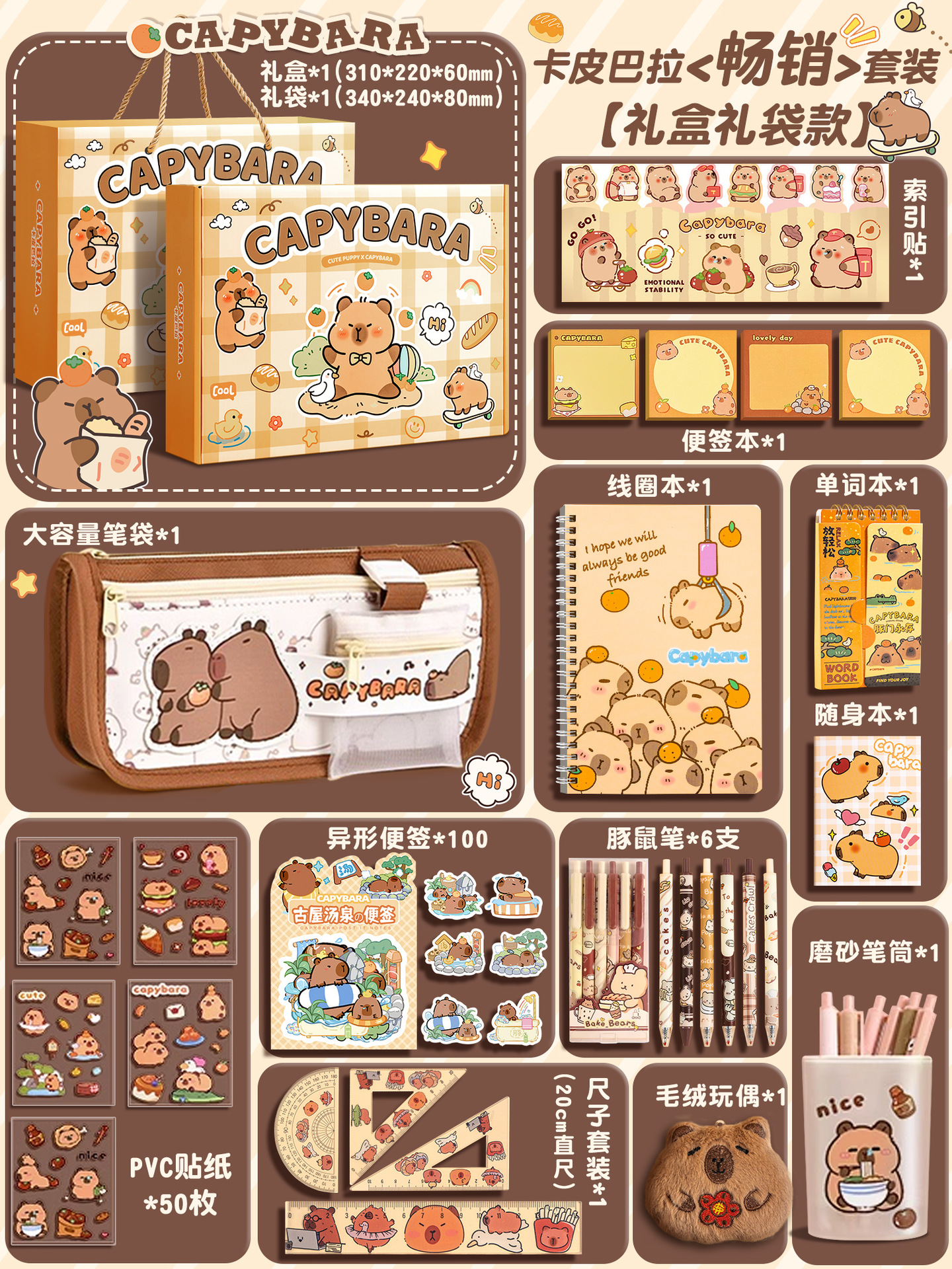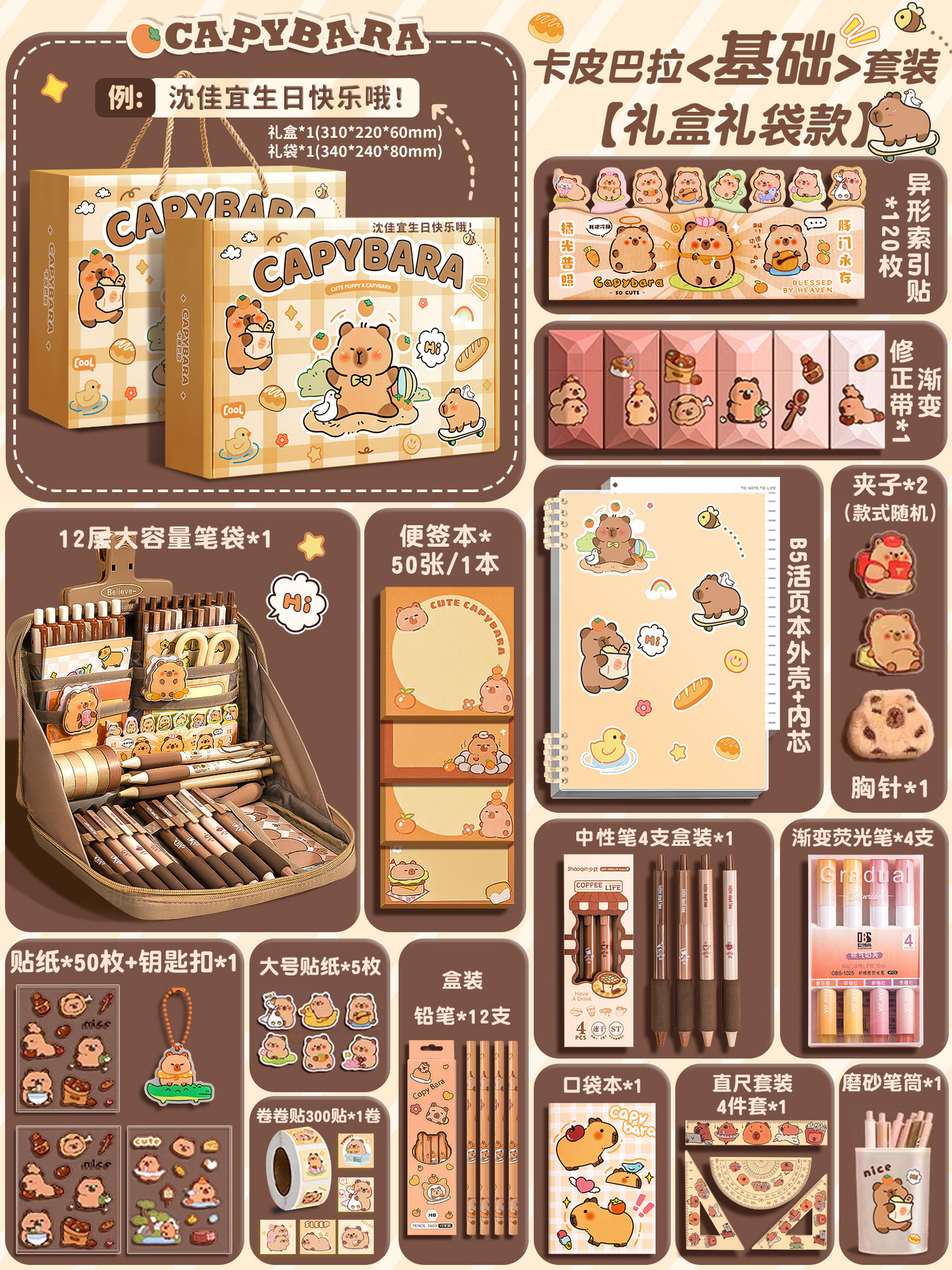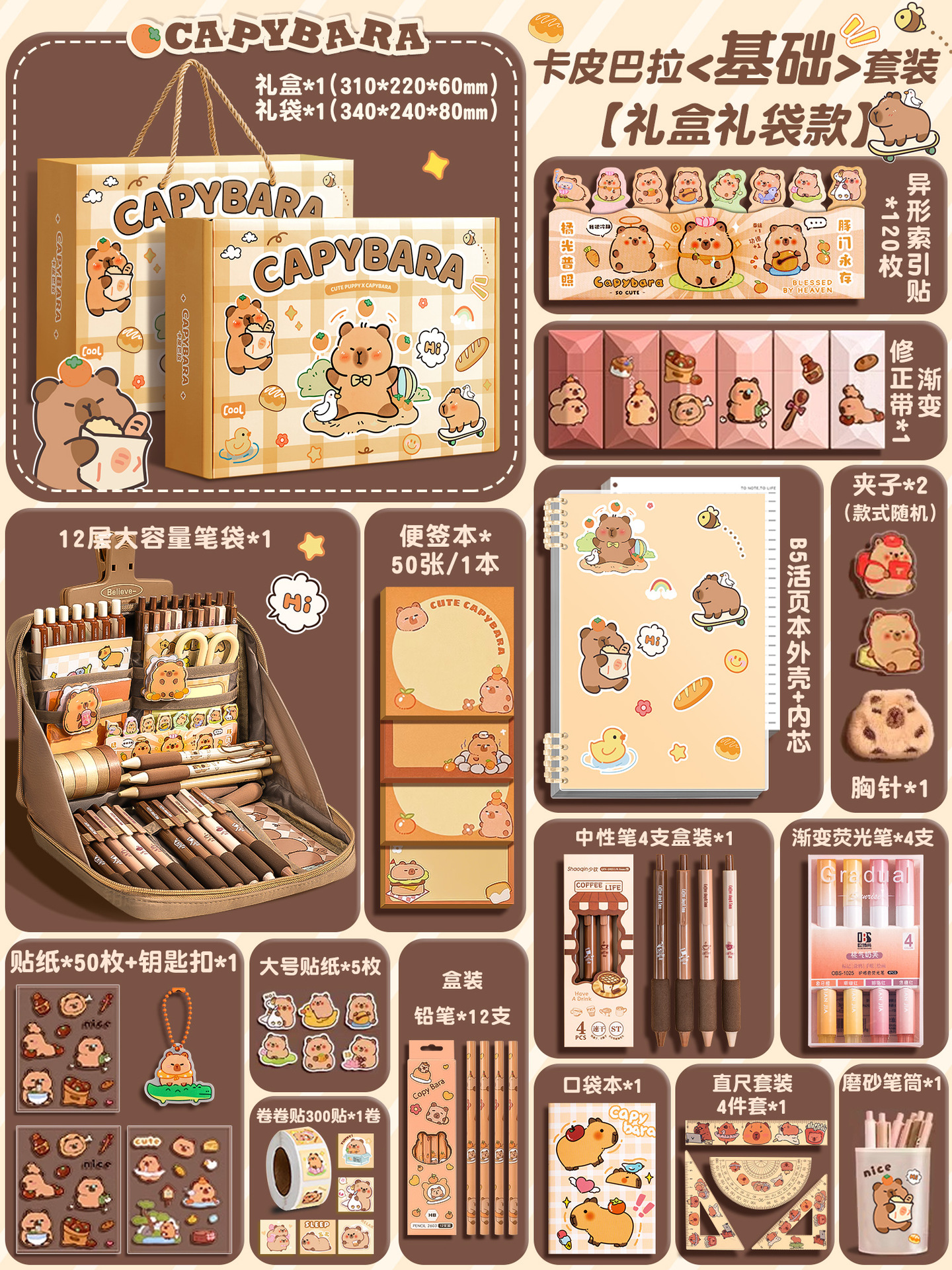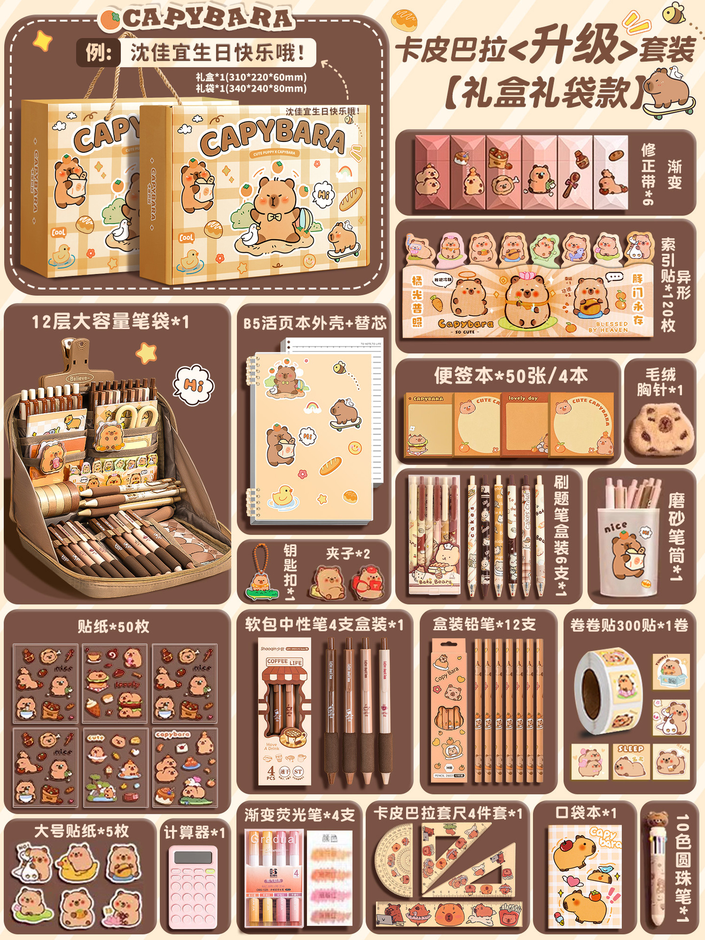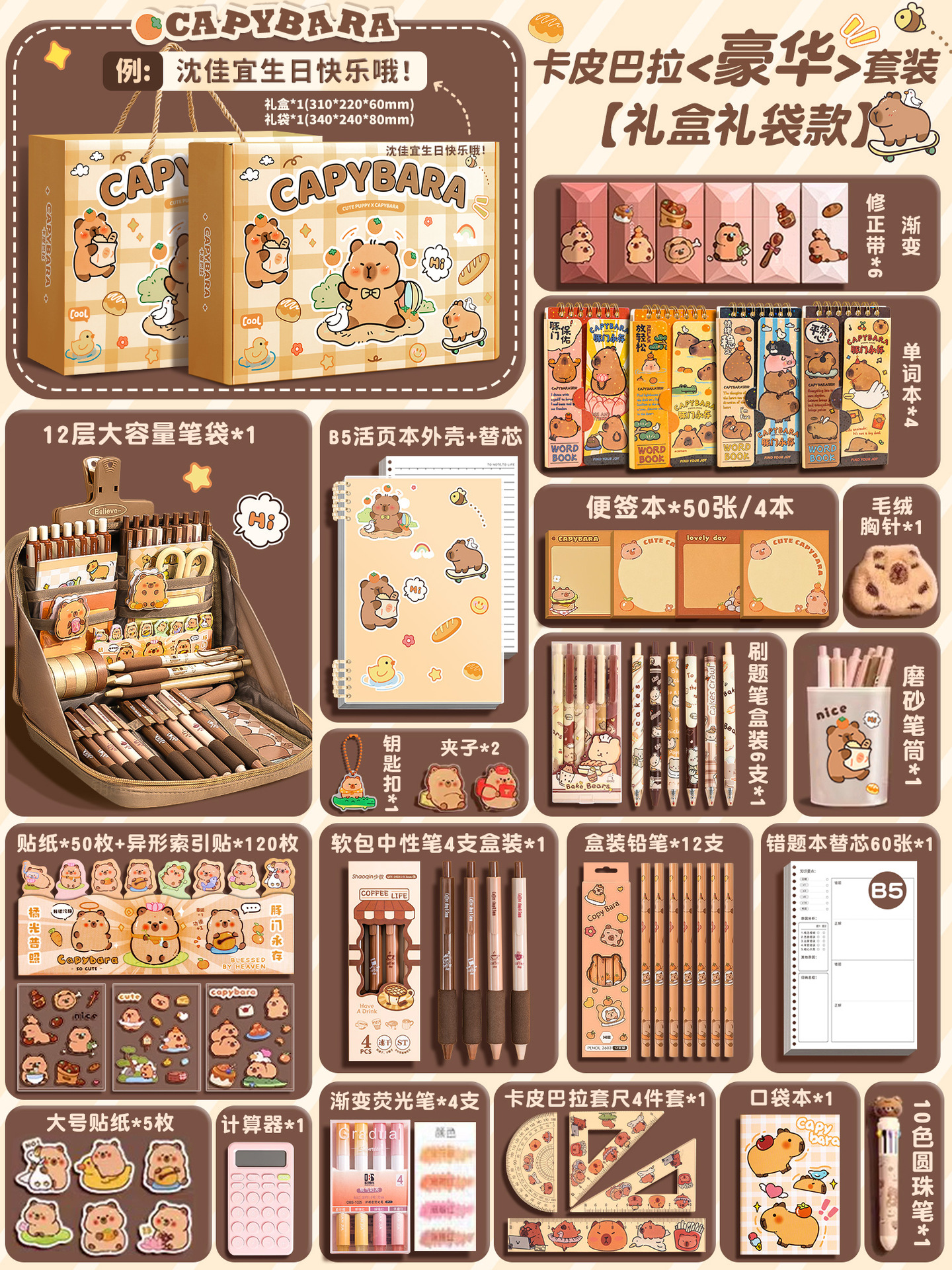 카피 발라 문구 세트 선물 상자 졸업 시즌 선물 가방 카피 바라 블라인드 박스 소녀를위한 높은 색 가치 생일 선물스토어 가기