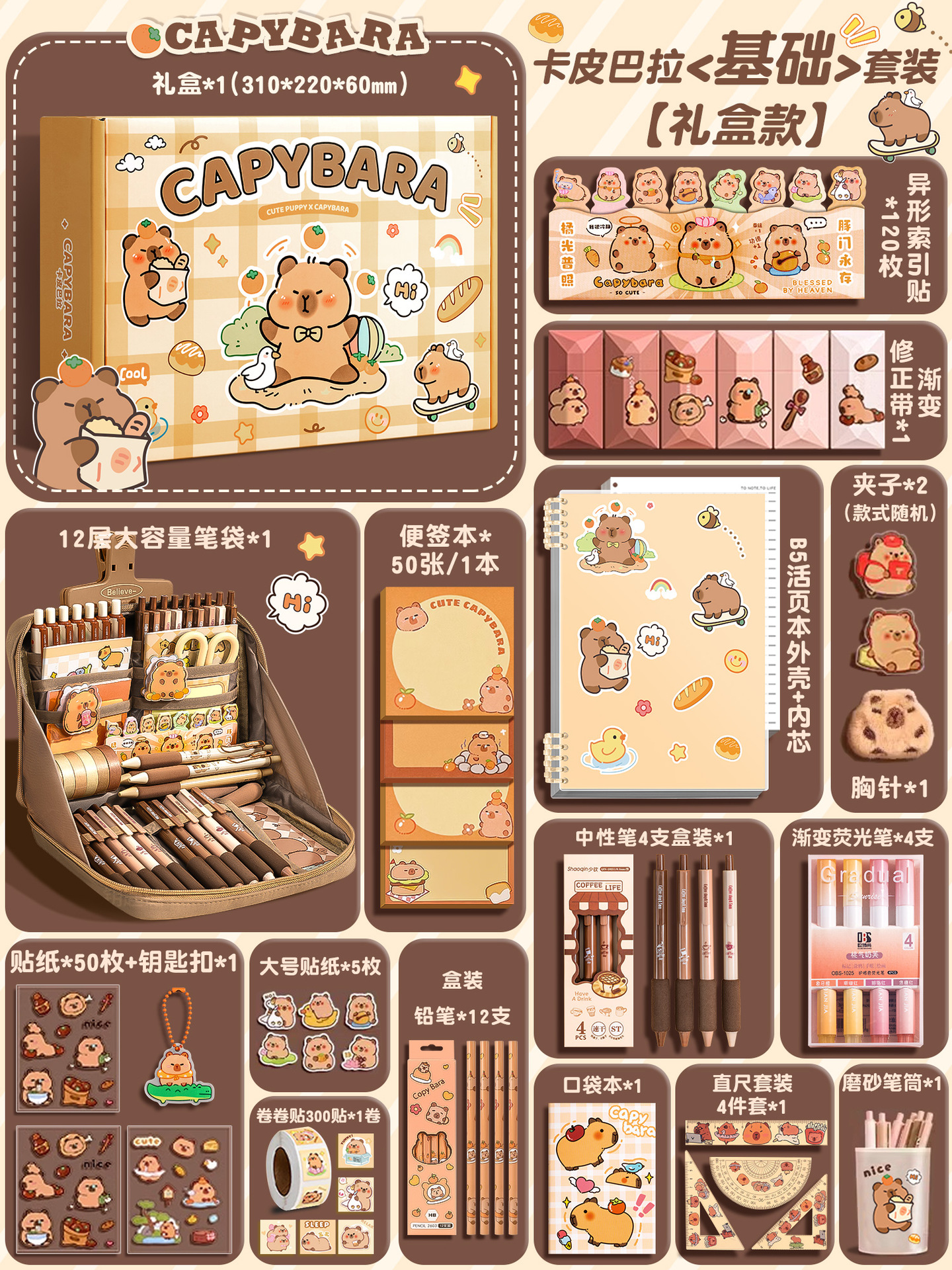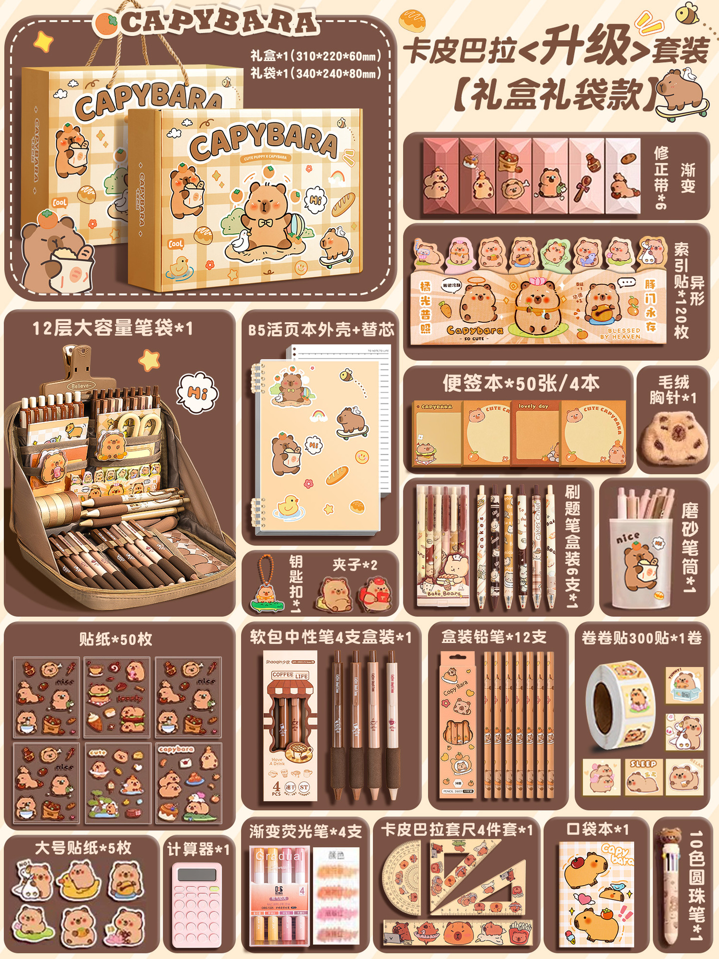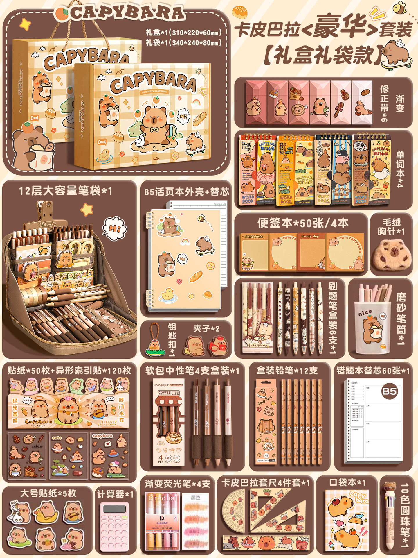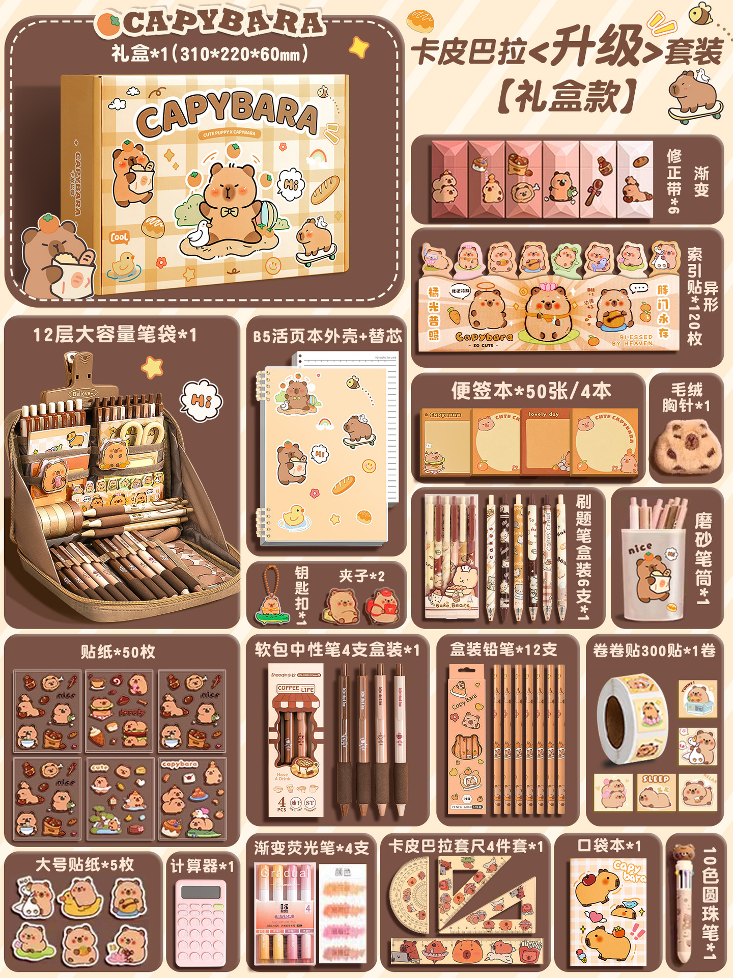 카피 발라 문구 세트 선물 상자 졸업 시즌 선물 가방 카피 바라 블라인드 박스 소녀를위한 높은 색 가치 생일 선물스토어 가기