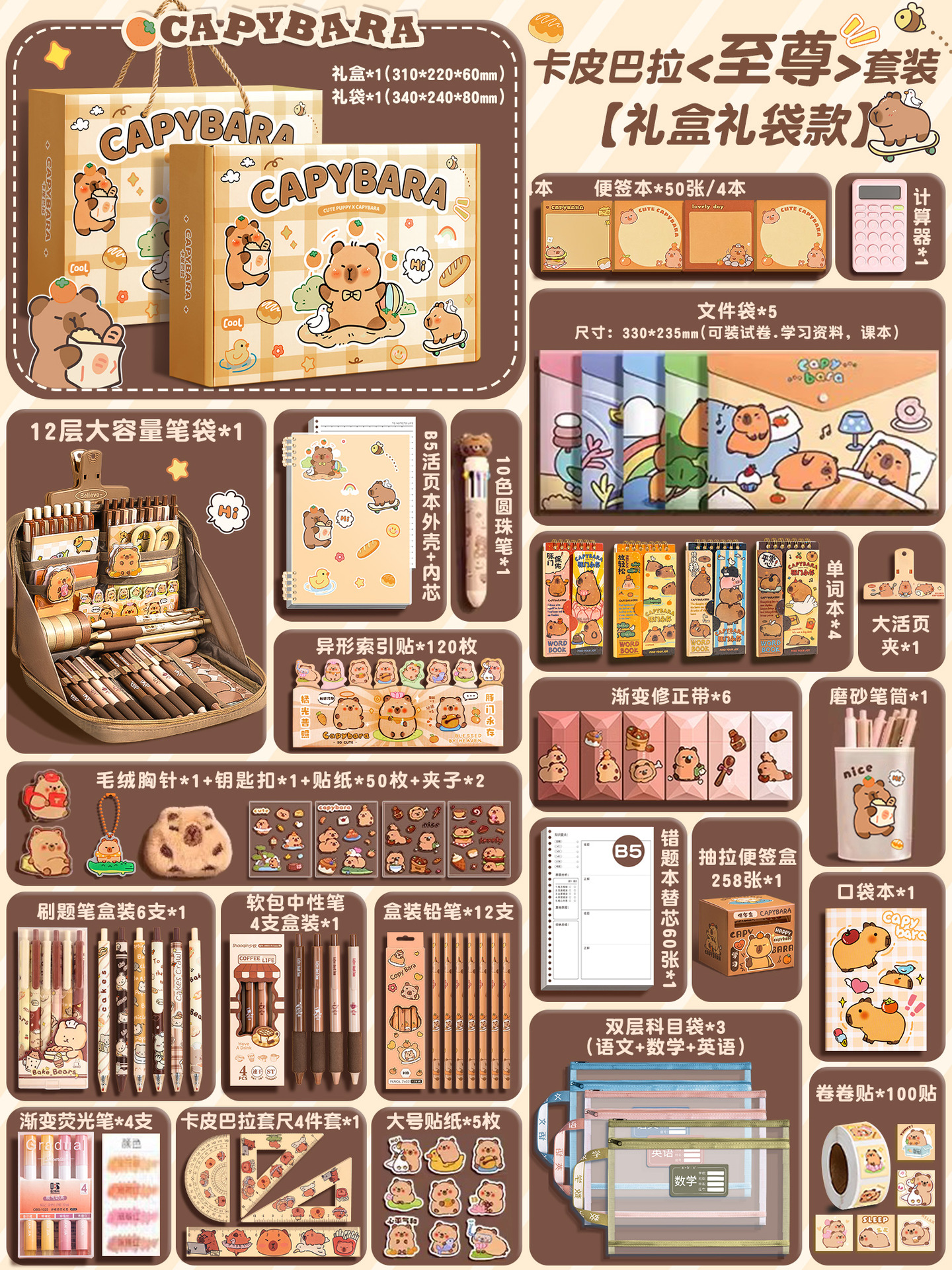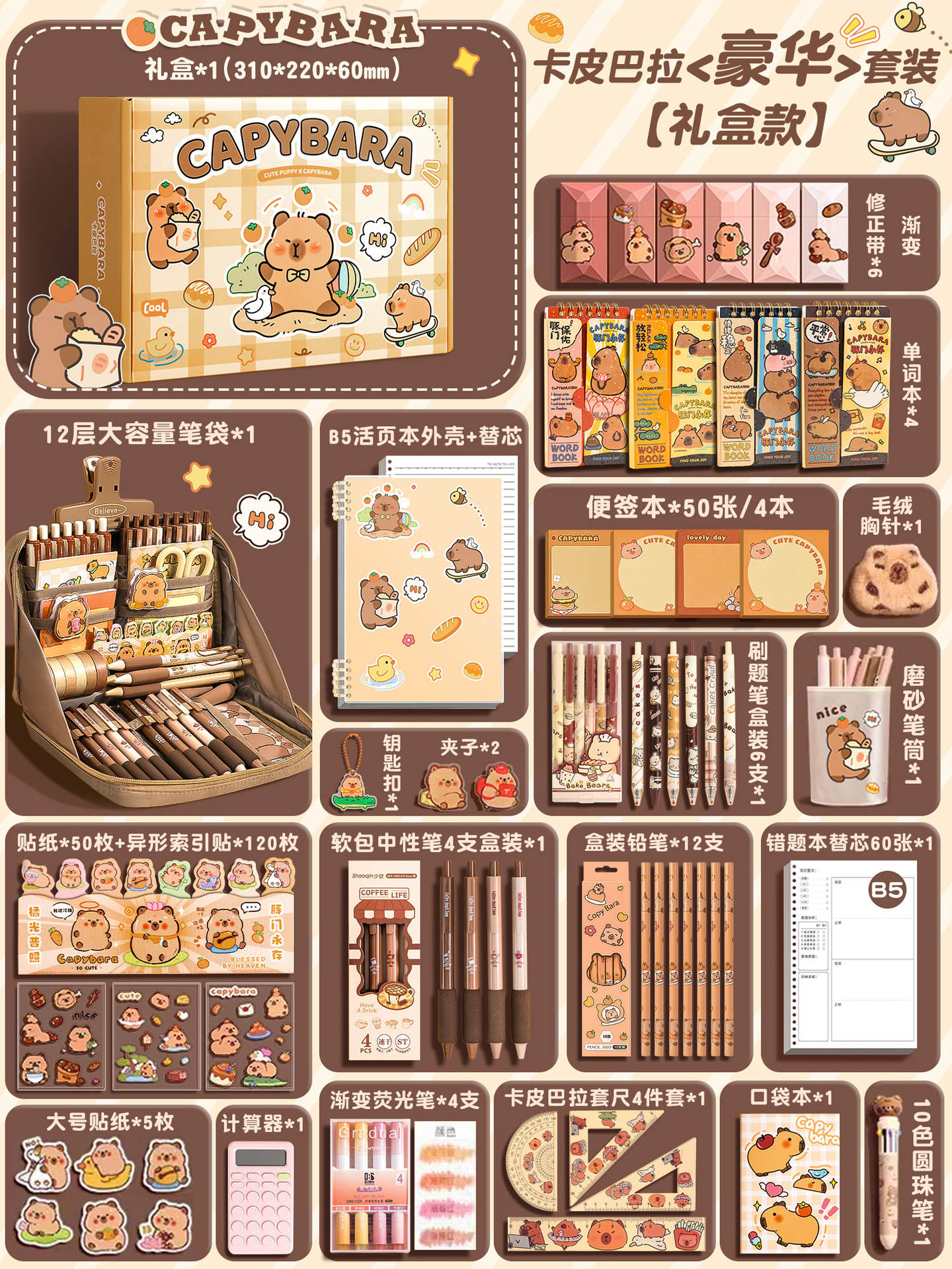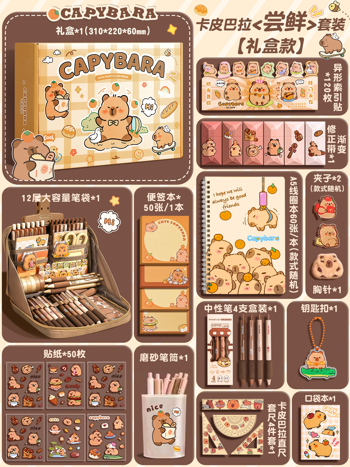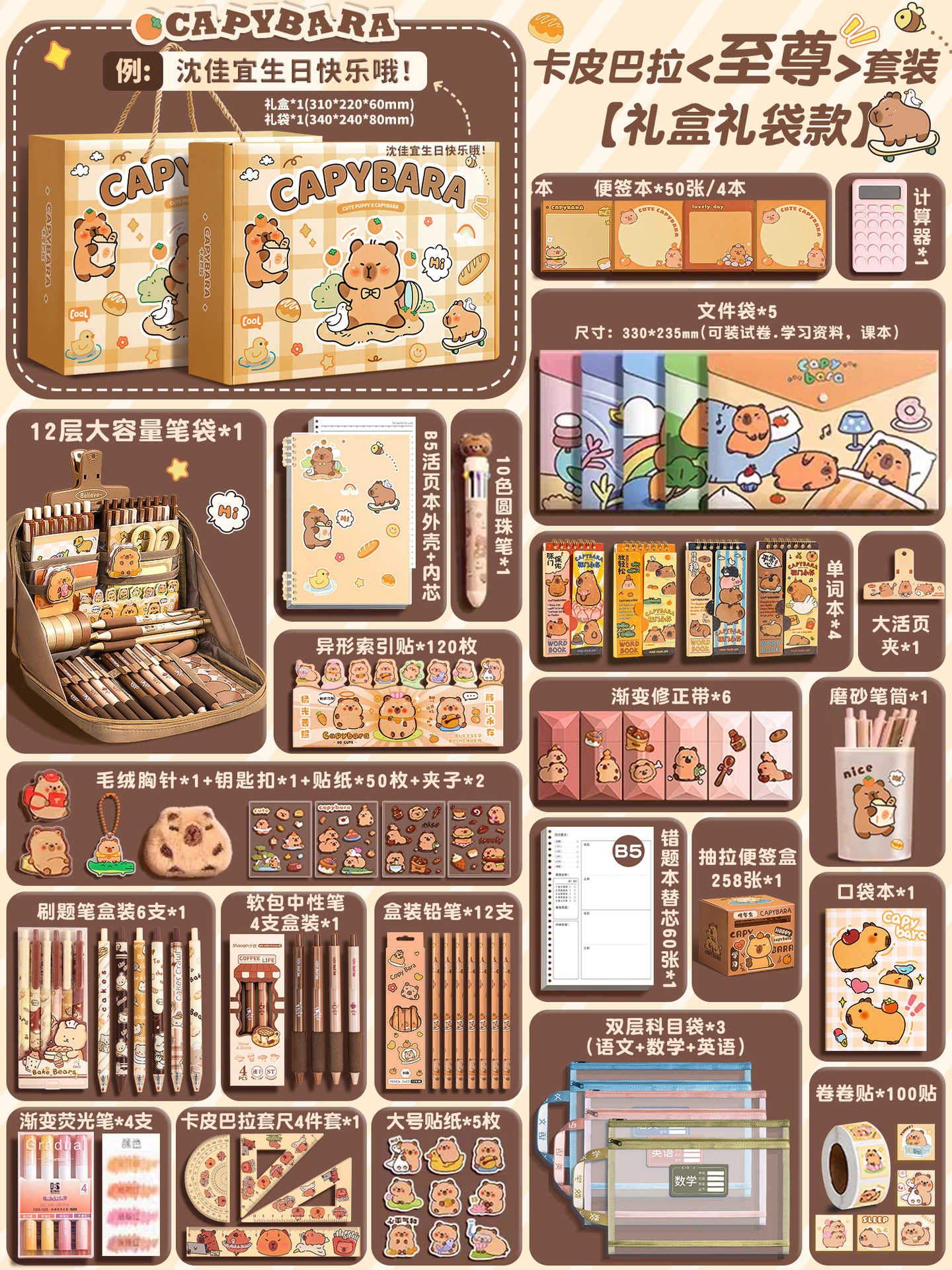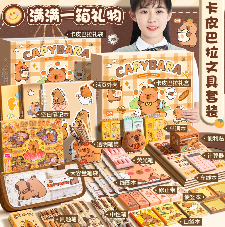 카피 발라 문구 세트 선물 상자 졸업 시즌 선물 가방 카피 바라 블라인드 박스 소녀를위한 높은 색 가치 생일 선물스토어 가기