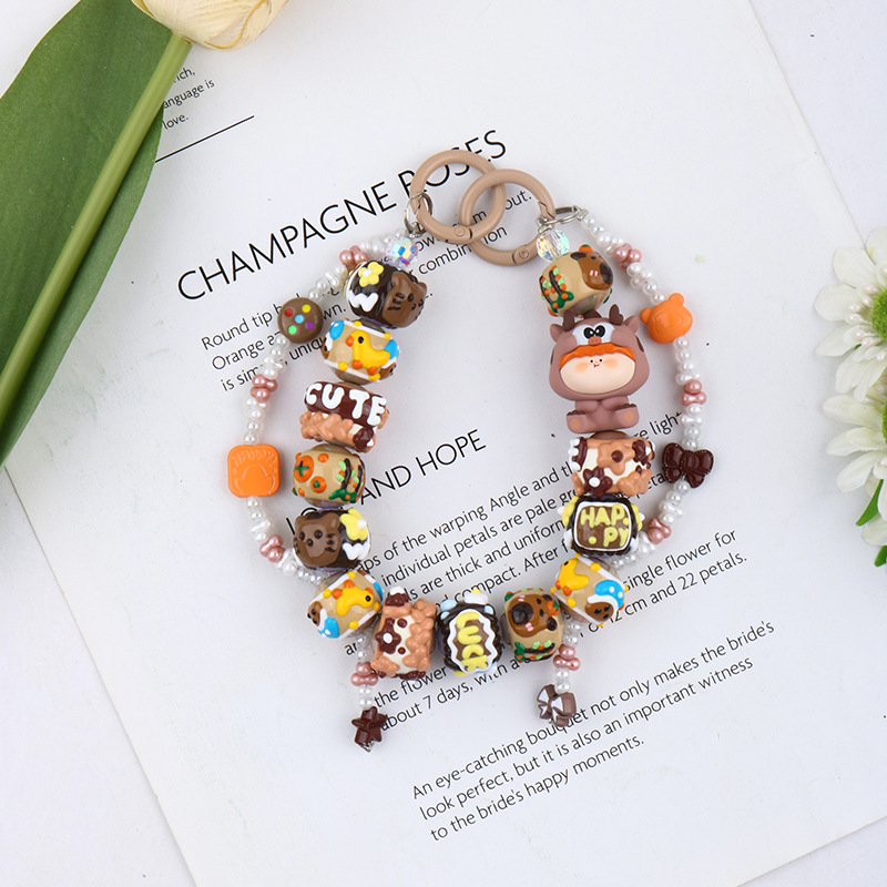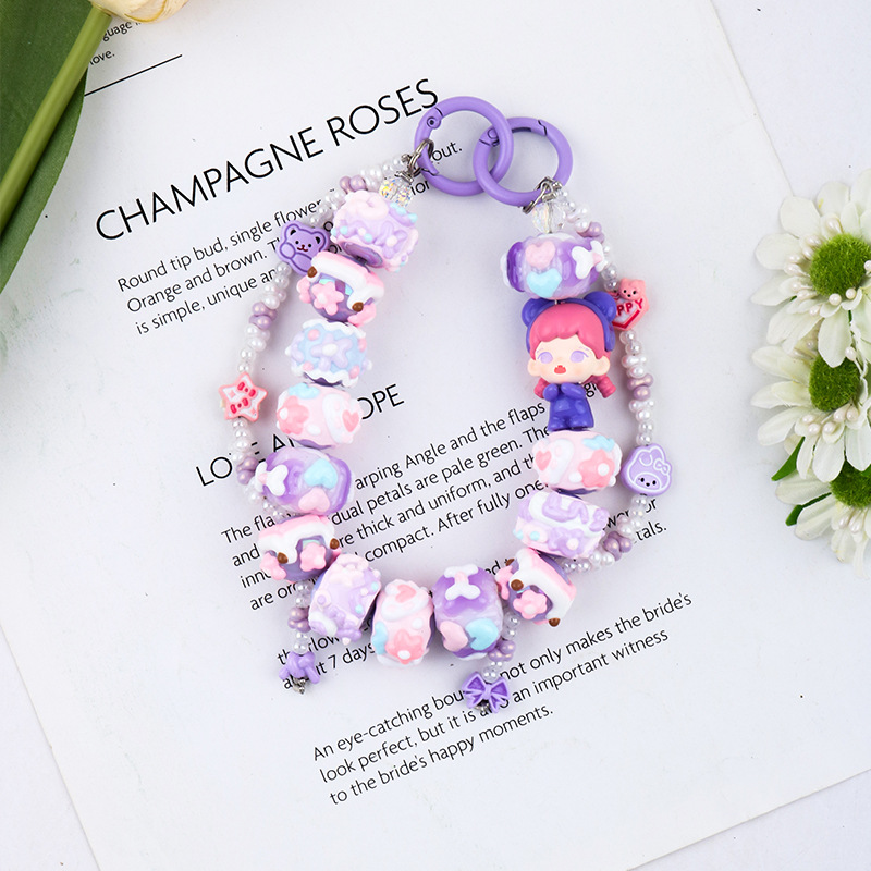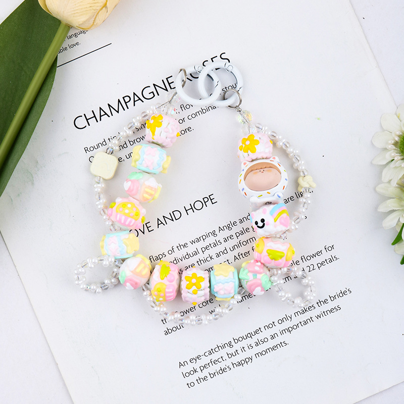 크리에이티브 수지 귀여운 인형 컬러 손으로 그린 비즈 모든 매치 키 체인 장식 펜던트 휴대 전화 케이스 가방 교수형 올매치
