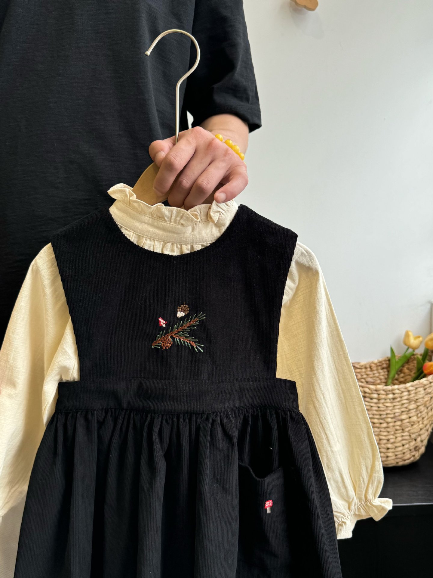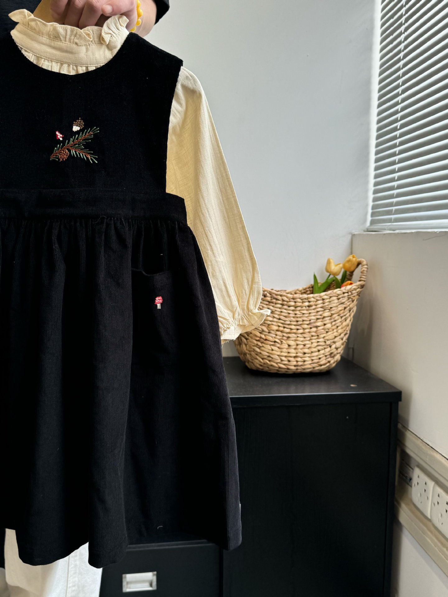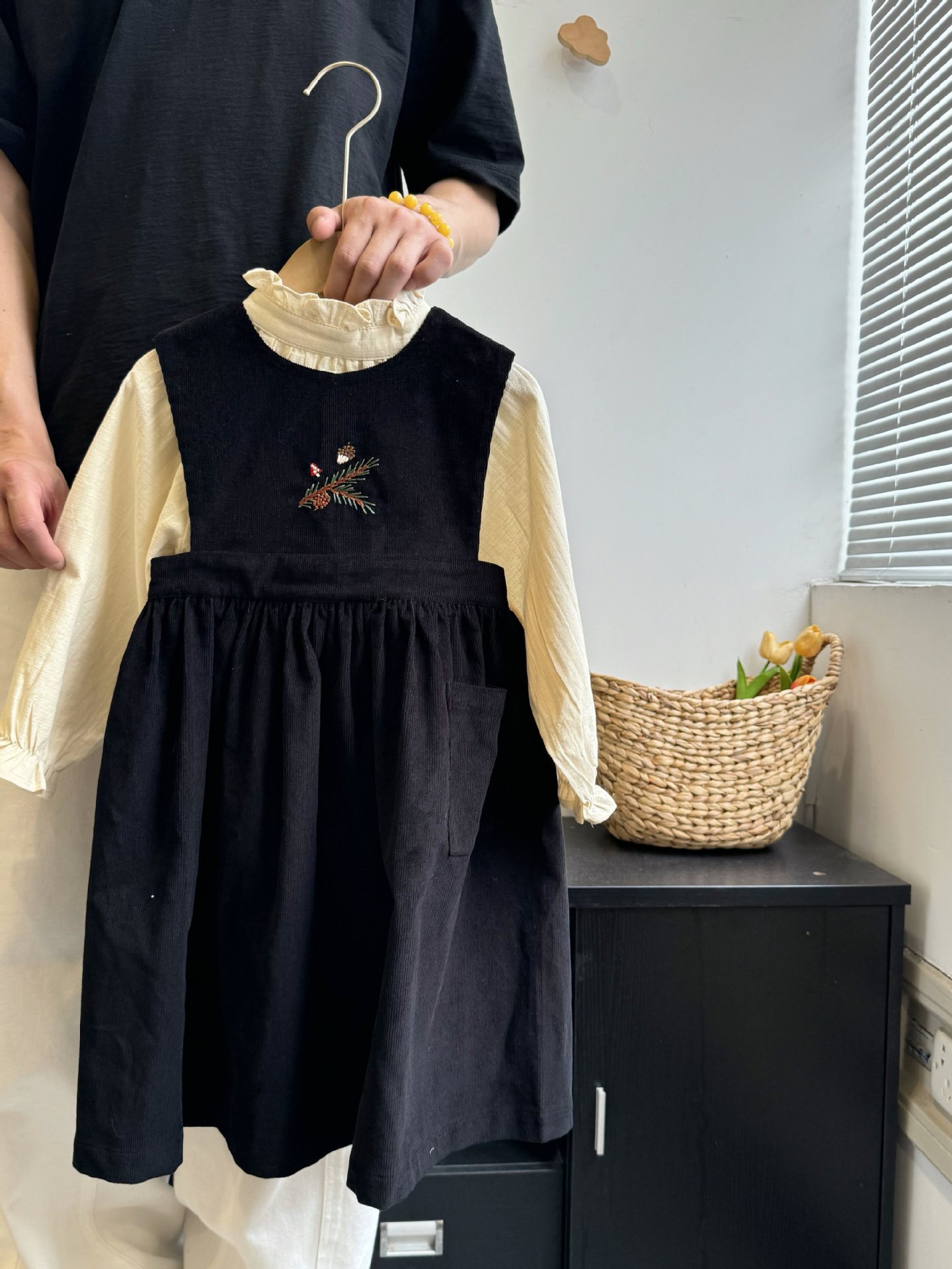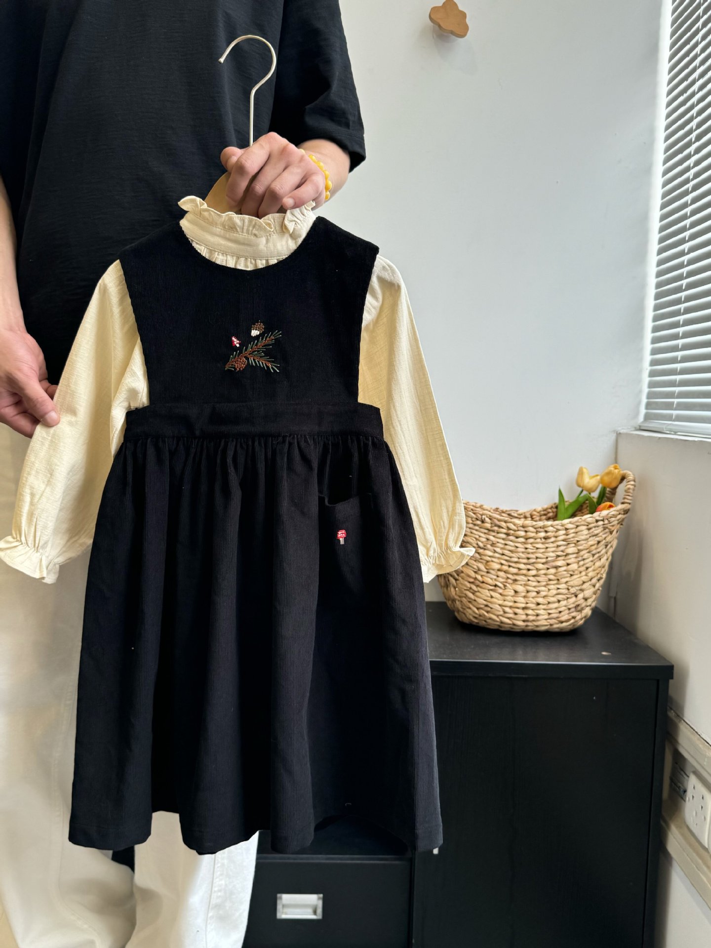 소녀 모리 스타일 조끼 스커트 2024 가을 새 아기 셔츠 빈티지 자수 스트랩 드레스 투피스 세트스토어 가기
