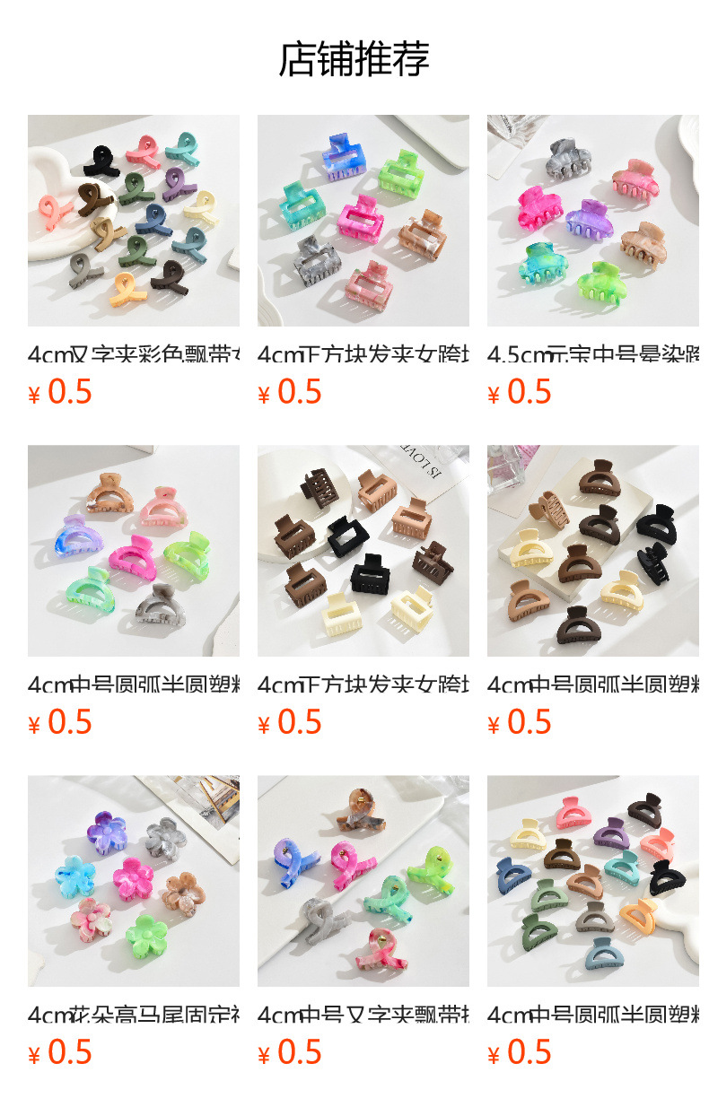4cm 스퀘어 헤어핀 여성용 크로스 보더 핫 세일 솔리드 컬러 미디엄 잡아 클립 머리 반 묶인 높은 말 꼬리 상어 클립스토어 가기