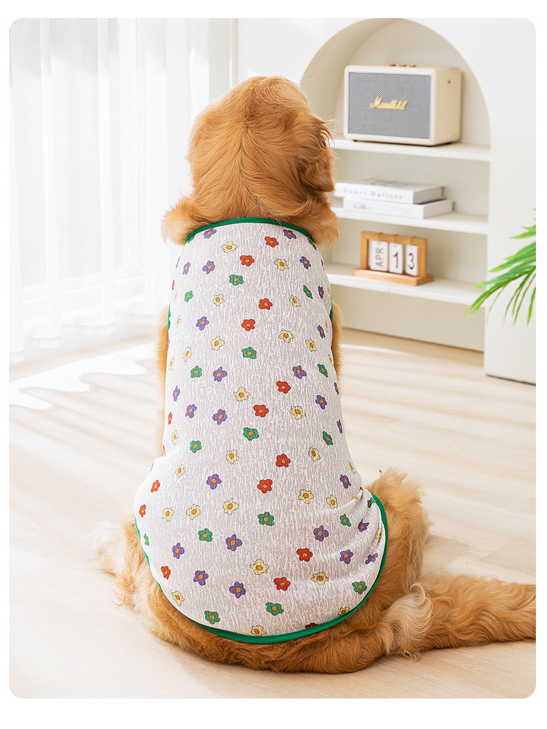 봄과 여름 큰 개 옷 귀여운 풀 프린트 메쉬 조끼 골든 리트리버 래브라도 통기성 얇은 슬링 애완 동물 옷