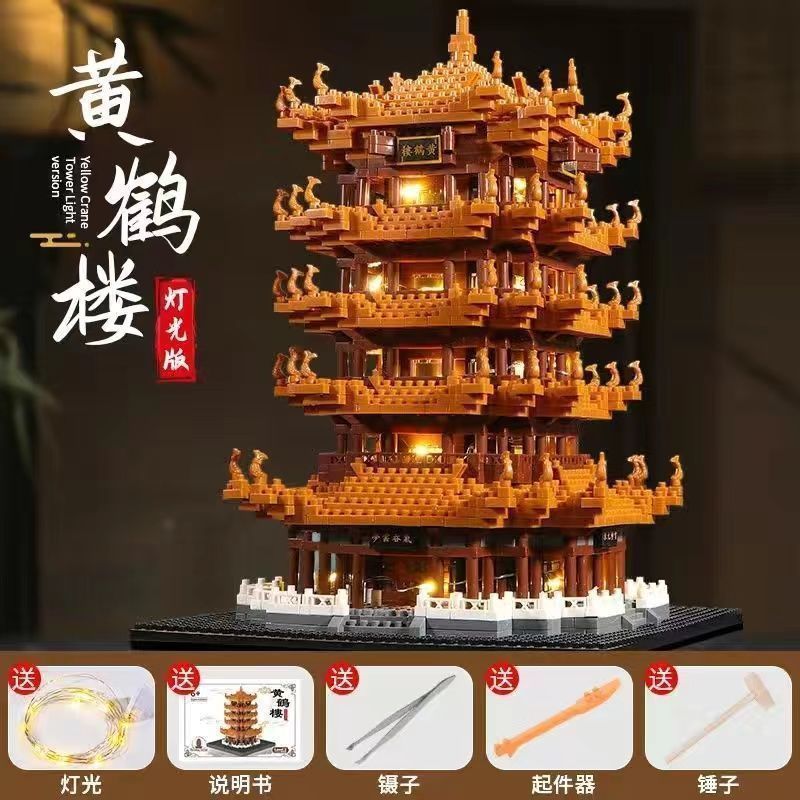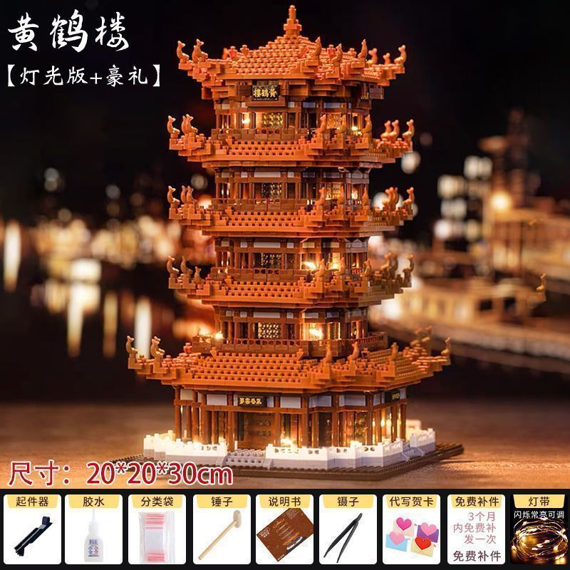 • 20cm Yueyang Tower 8322pcs + 따뜻한 램프 도구
