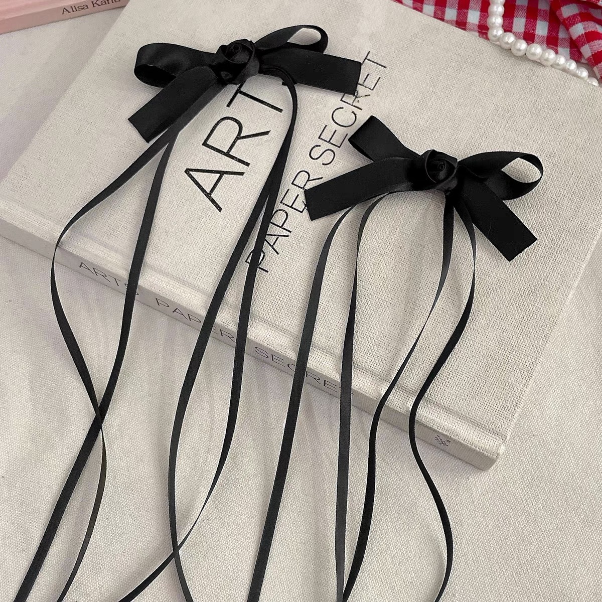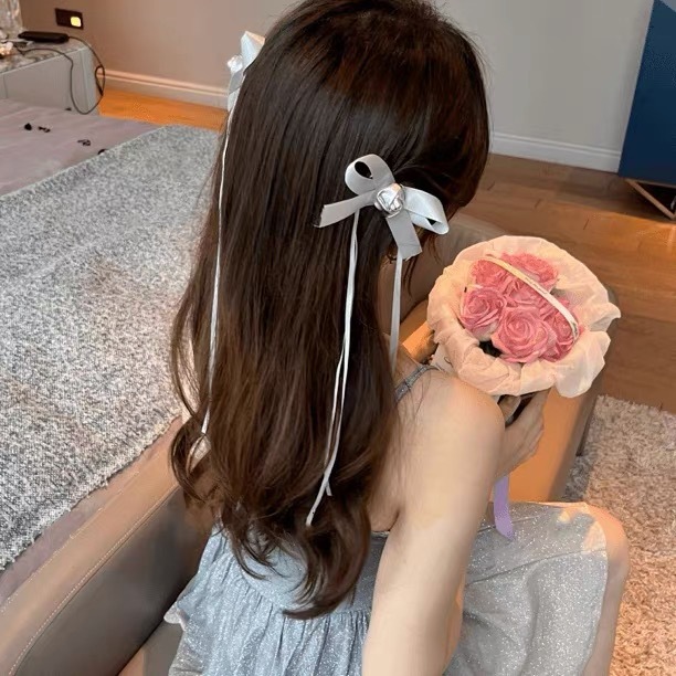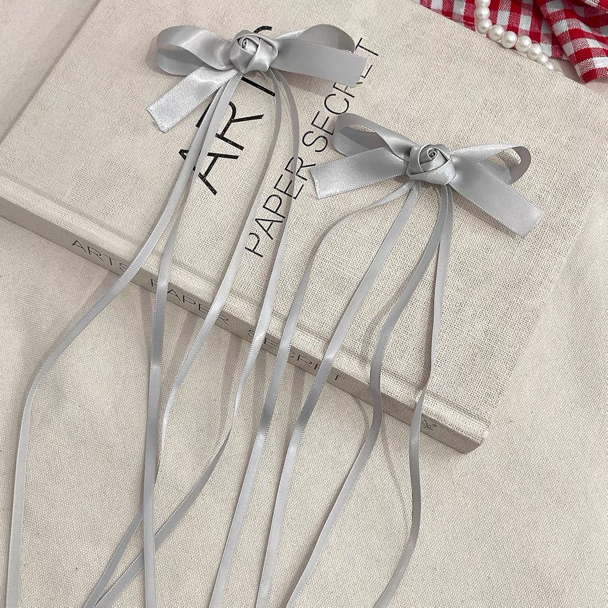 발레 스타일 실버 꽃 활 리본 머리핀 여성의 머리 뒤 더블 포니 테일 꼰 헤어 헤드웨어 작은 클립 헤어 액세서리